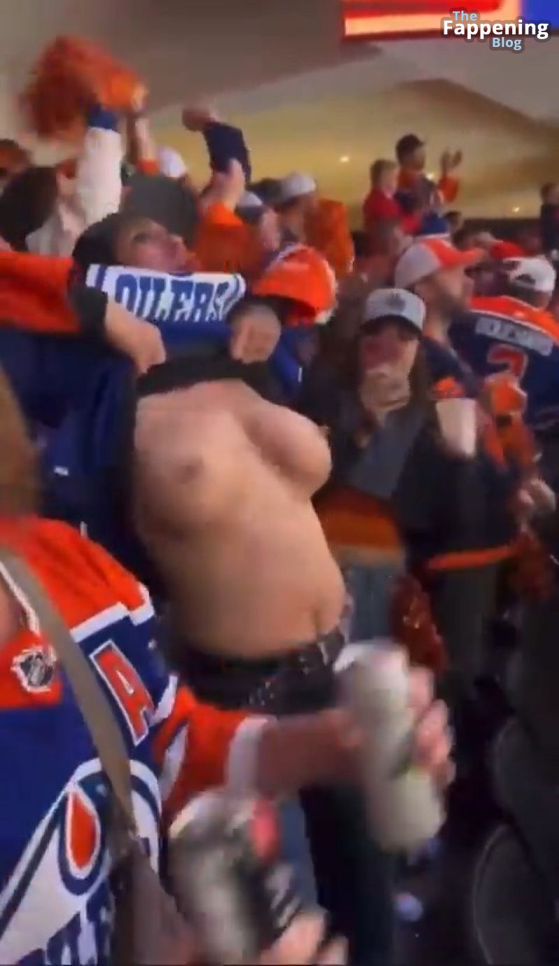 Fille fan des Edmonton Oilers exhibe sa nudité (1 photo + vidéo)