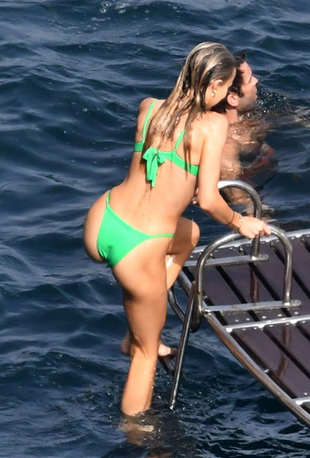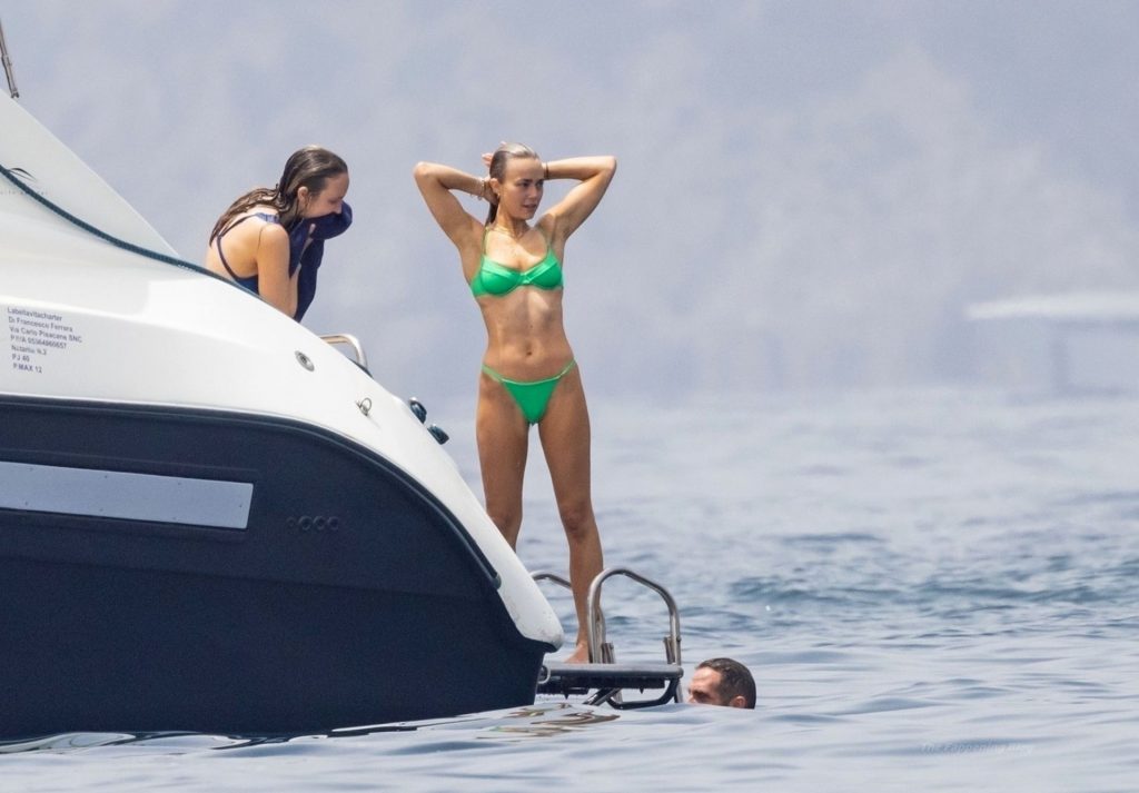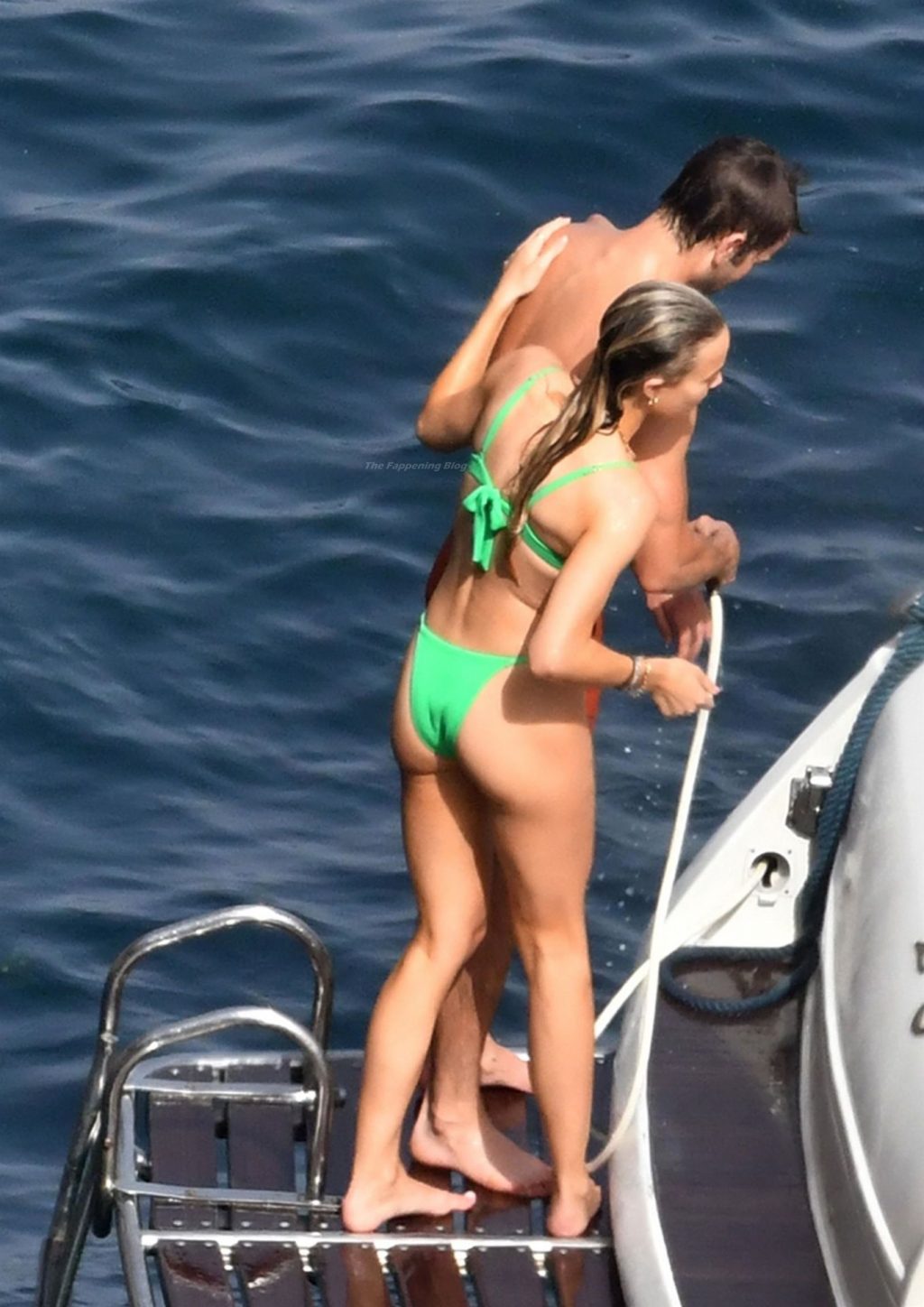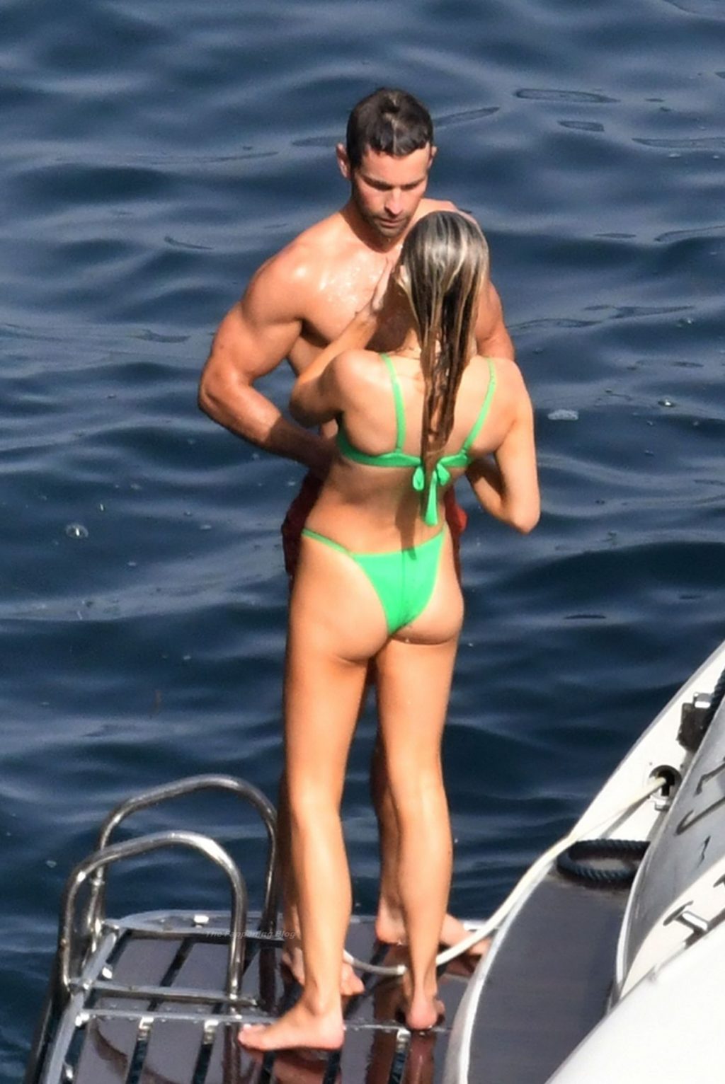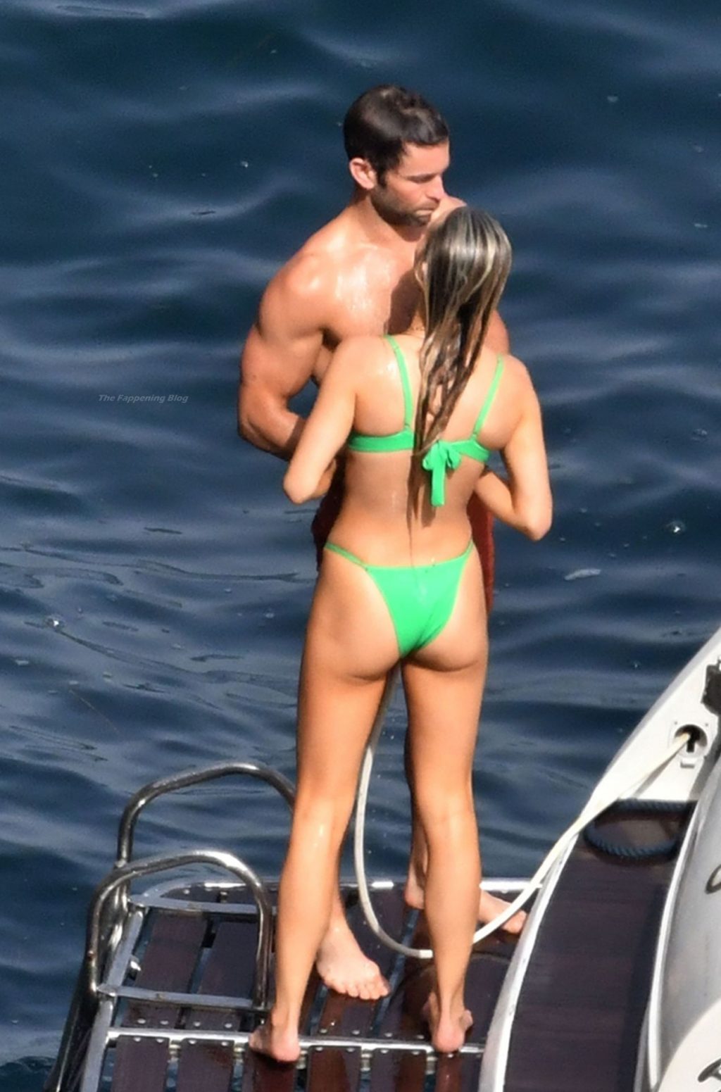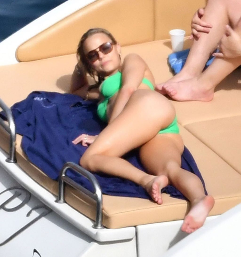 Avec quelques amis, le couple se détendait sur leur bateau et a fait un plongeon dans la mer italienne chaude, profitant du soleil brûlant tout en s’appliquant de la crème solaire pendant leurs vacances.