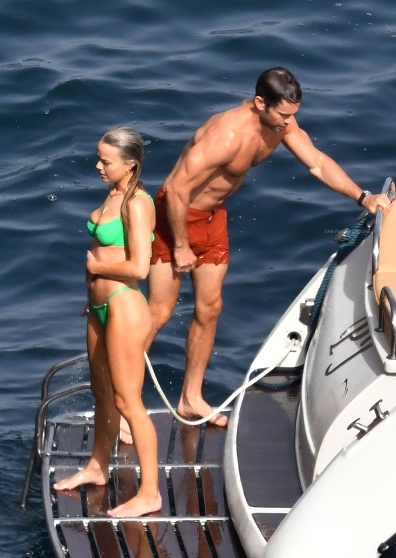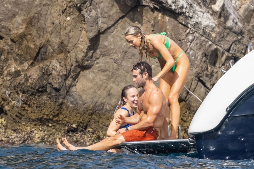 Chace était accompagné lors du voyage de sa petite amie, l’actrice américaine de 32 ans Rebecca Rittenhouse. Le couple a offert un spectacle sensuel alors que Chace était torse nu dans son short orange bronzé, et Rebecca mettait en valeur sa silhouette élancée dans un bikini vert plutôt séduisant.