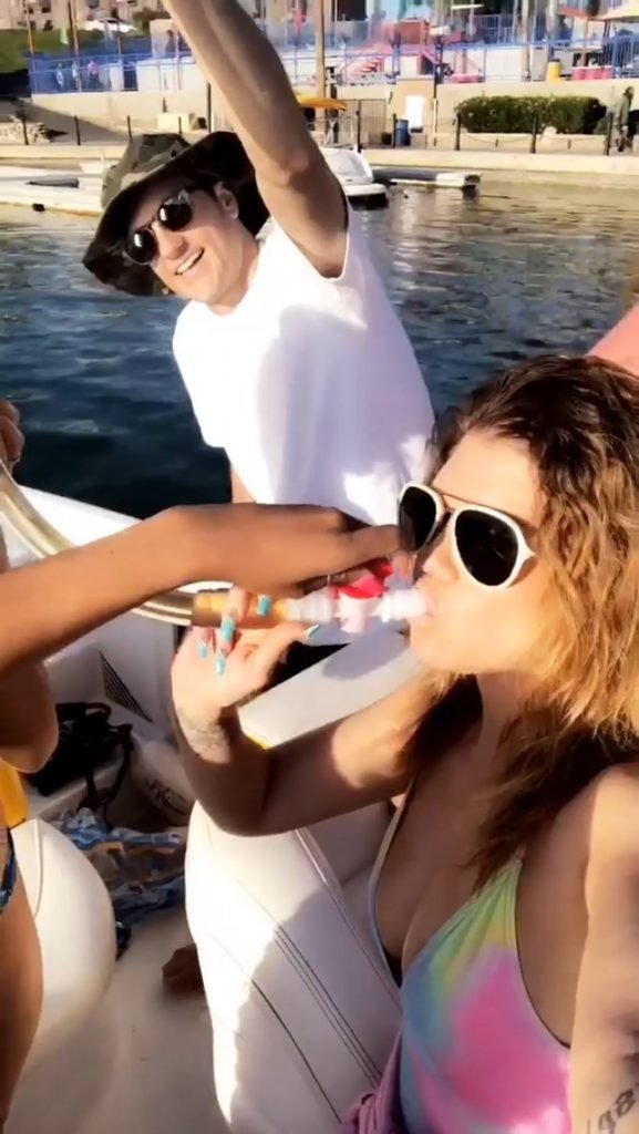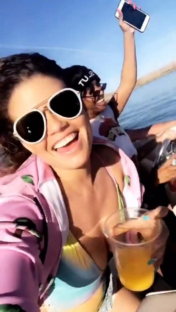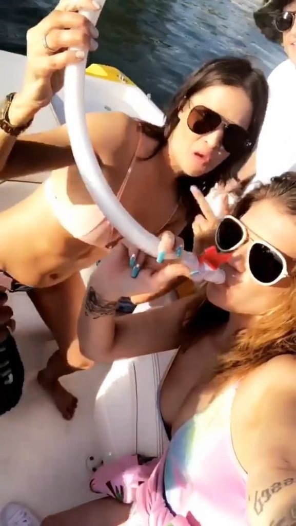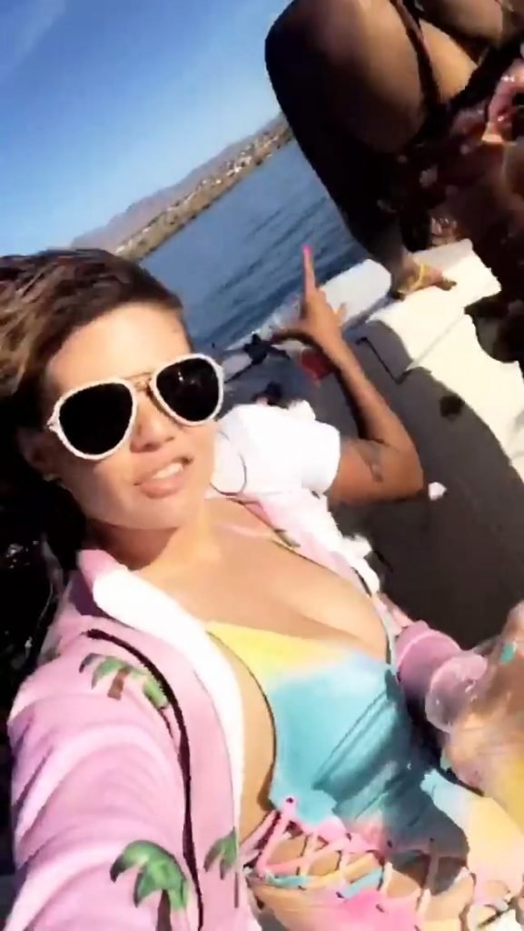 Busty Chanel West Coast profite d’une journée en bateau avec ses amis – Instagram, Snapchat, 24/03/2018. La rappeuse de 29 ans Chelsea Chanel Dudley exhibait son corps dans un maillot de bain coloré avec un décolleté plongeant. C’est une super fête ! Beaucoup d’alcool, de filles et de sexe.