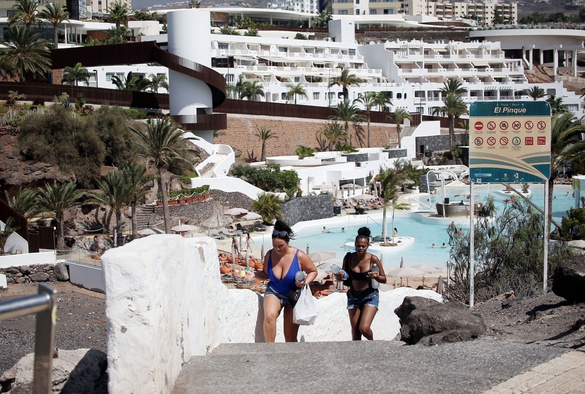 La star de la télé-réalité Chanelle Hayes fait équipe avec sa sœur Melissa alors qu’elles font des courses et visitent l’île de Tenerife, le 14/10/2019.
