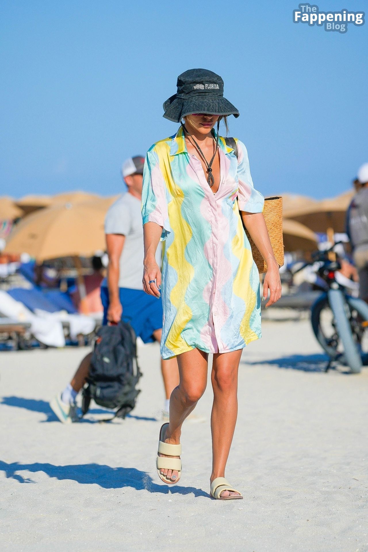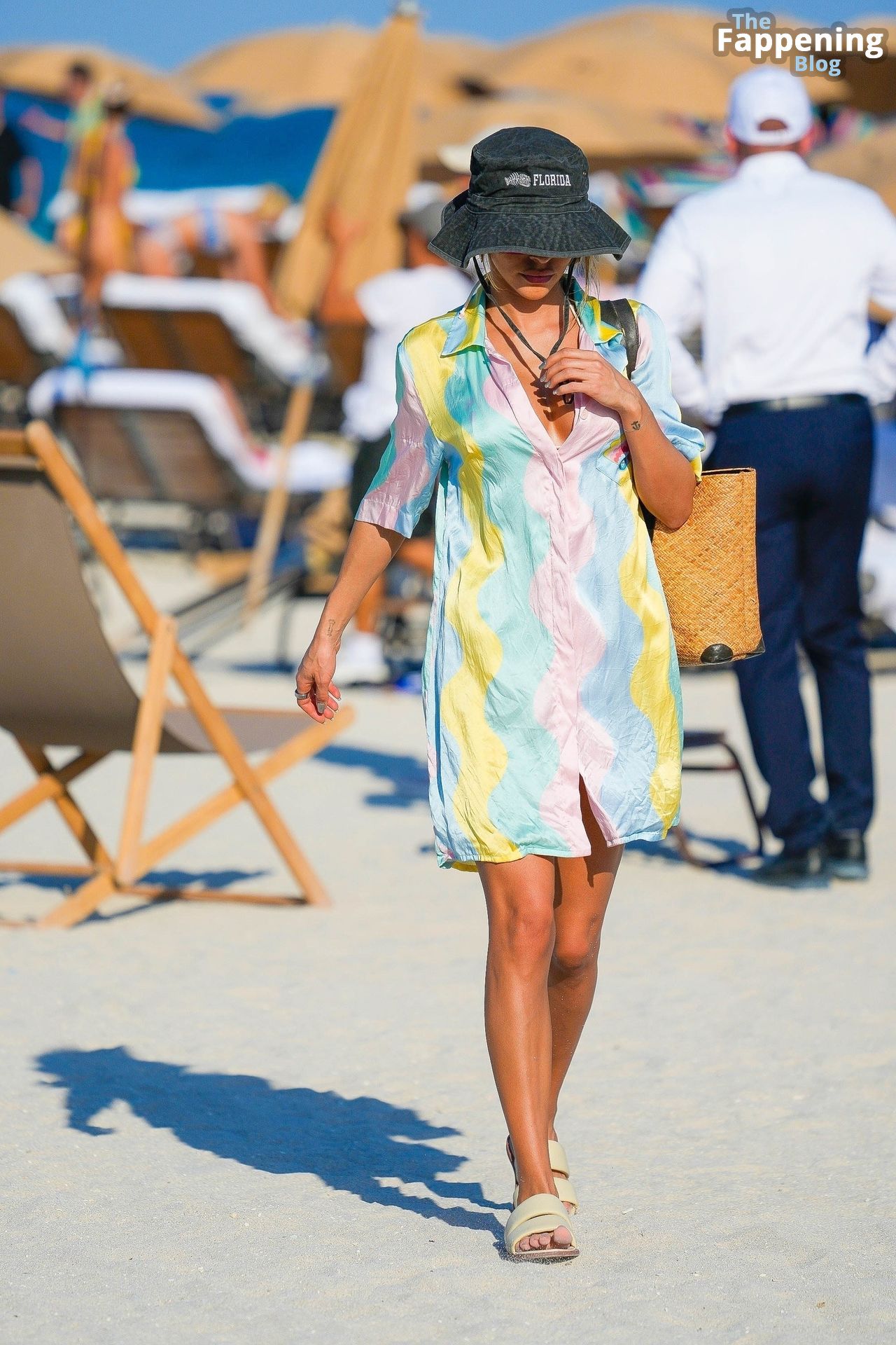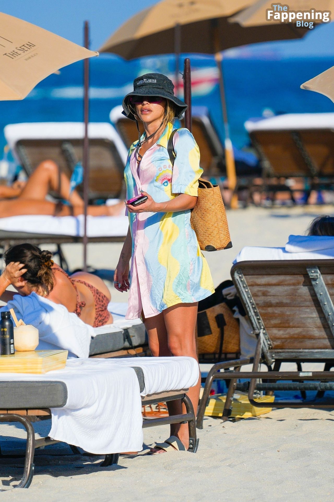 DJ Chantel Jeffries prend son déjeuner lors d’une journée ensoleillée sur la plage de Miami Beach, 05/03/2023.