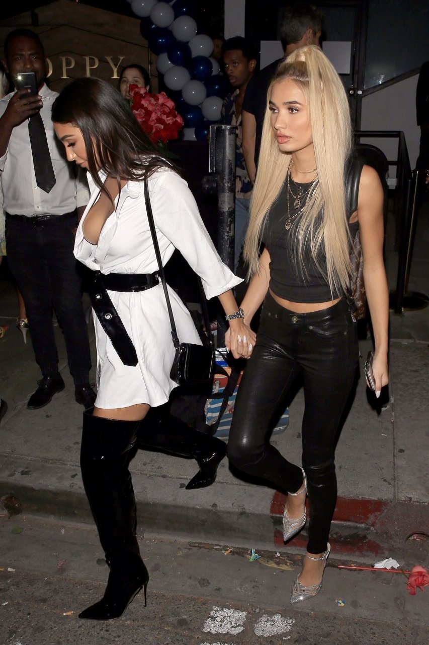 L’actrice Chantel Jeffries (24 ans) et la chanteuse Pia Mia (21 ans) ont été aperçues quittant la fête d’anniversaire de Drake au Poppy Nightclub à West Hollywood, le 23/10/2017.