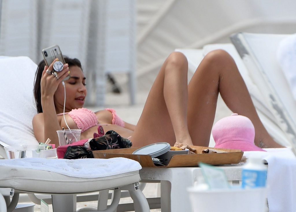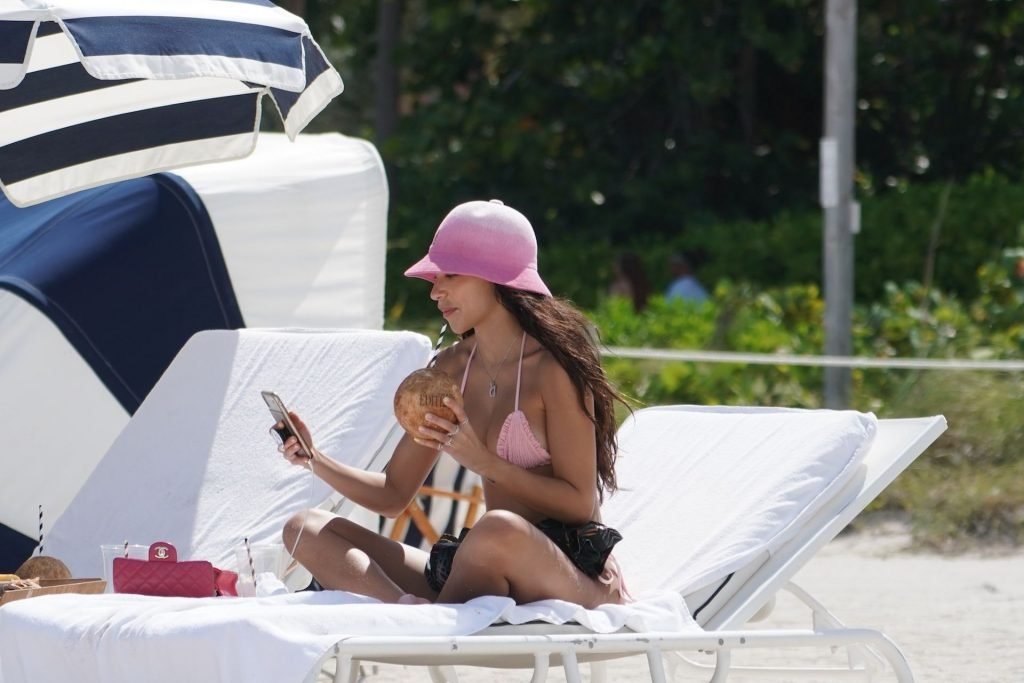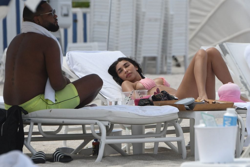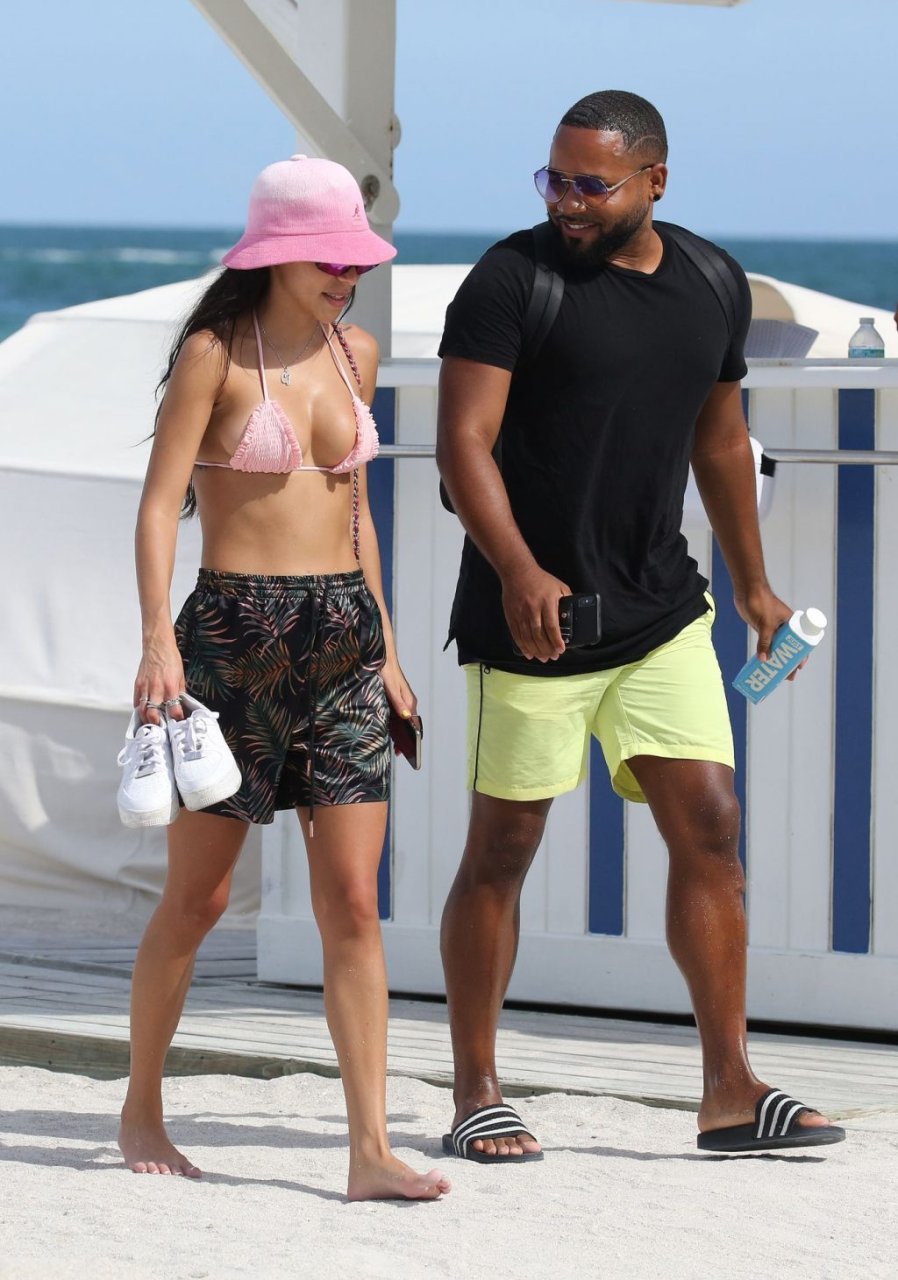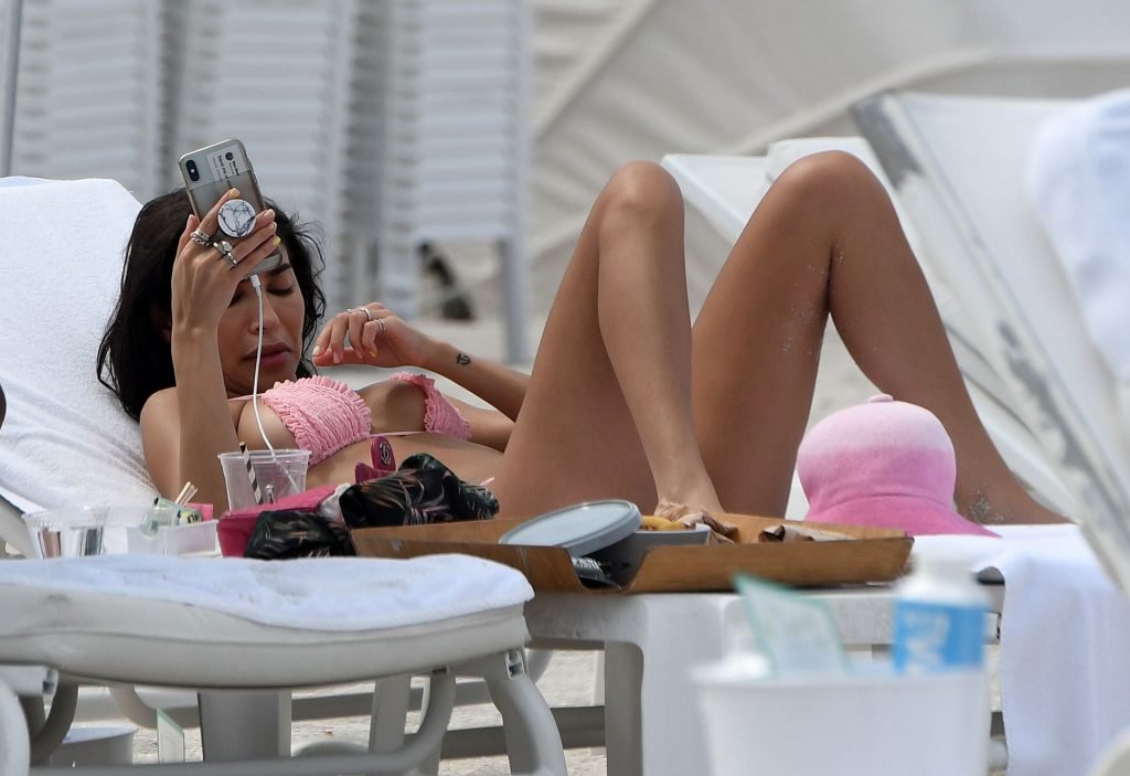 L’ex de Justin Bieber, Chantel Jeffries (26 ans), porte un bikini rose alors qu’elle se détend sur la plage avec un homme mystérieux à Miami, le 11/07/2019.