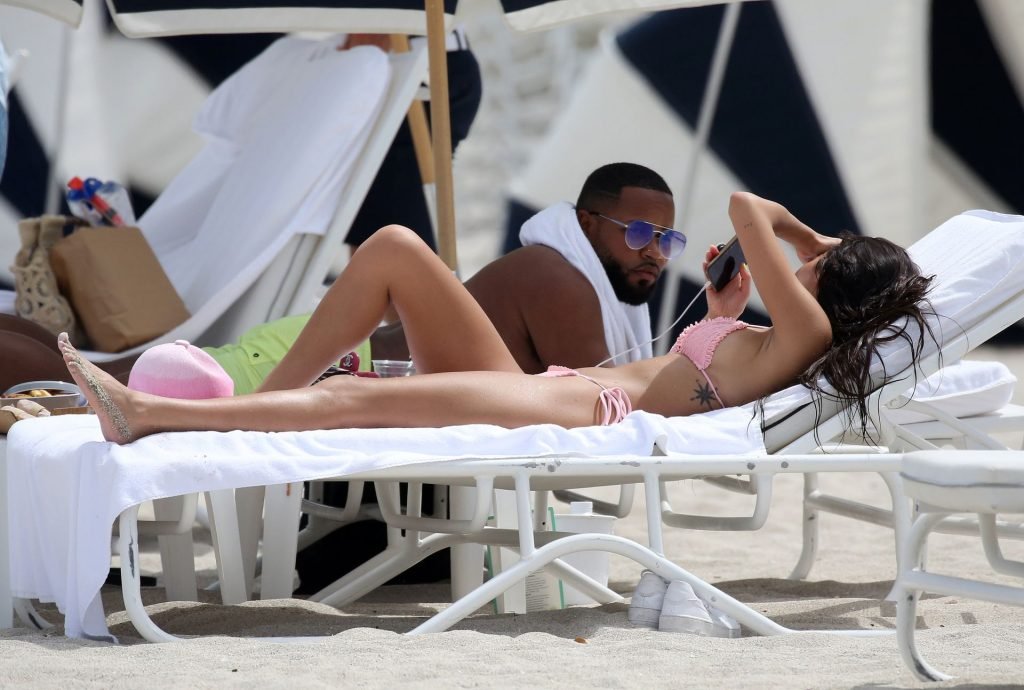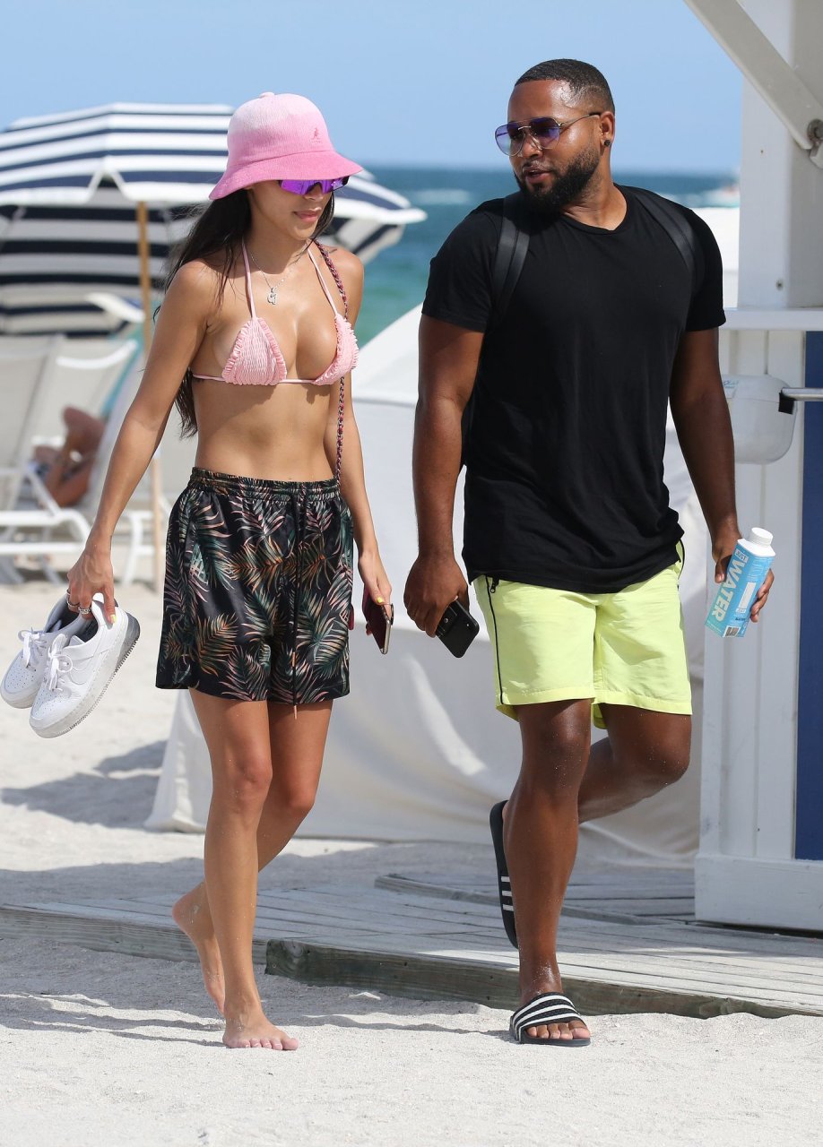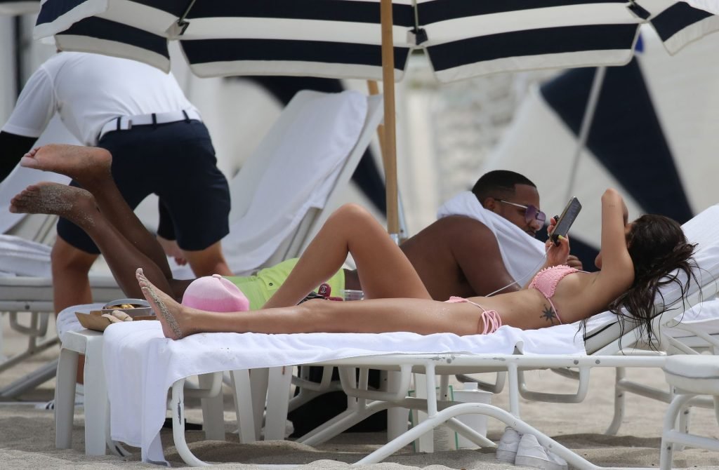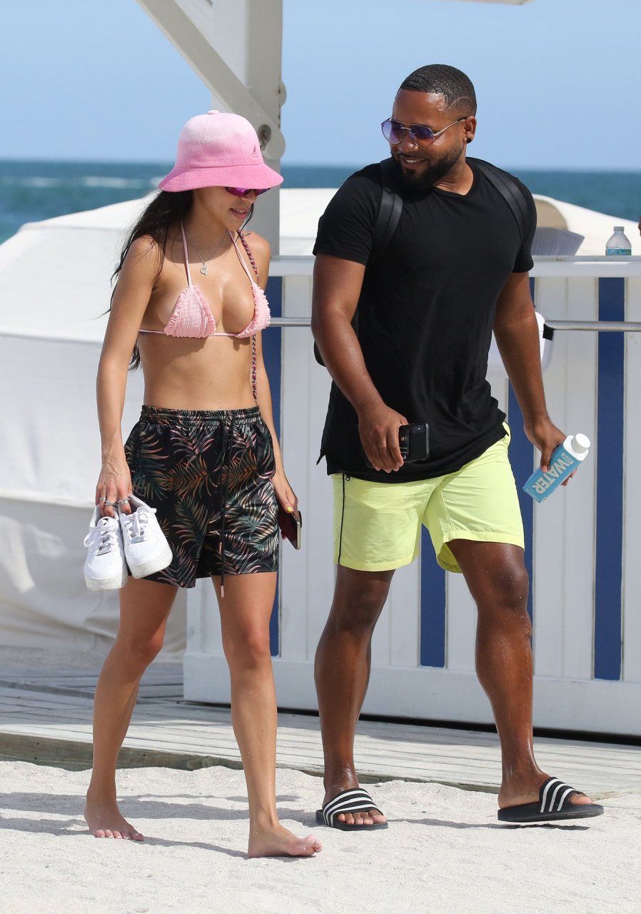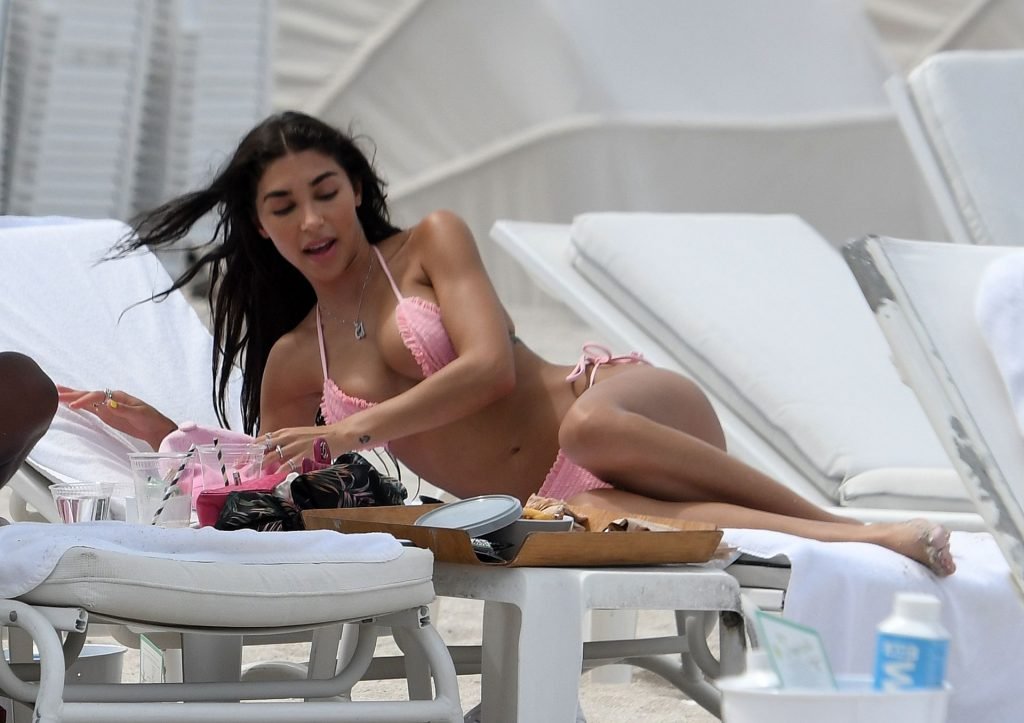 L’ex de Justin Bieber, Chantel Jeffries (26 ans), porte un bikini rose alors qu’elle se détend sur la plage avec un homme mystérieux à Miami, le 11/07/2019.