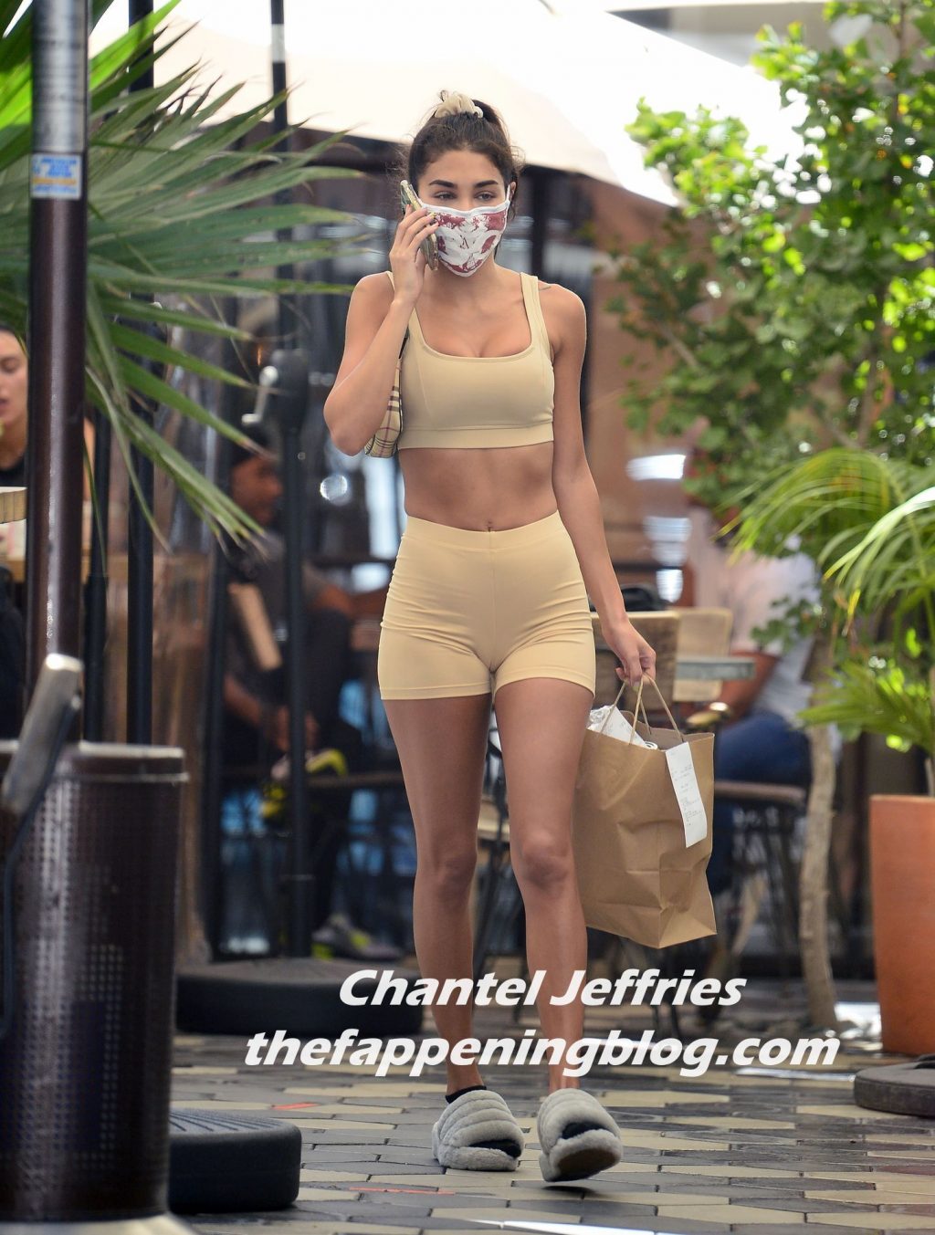 La star du Fappening Chantel Jeffries révèle ses abdominaux toniques alors qu’elle est aperçue quittant le restaurant Zinque, vêtue d’une tenue de sport couleur nude avec des sandales en fourrure assorties, 28/08/2020.