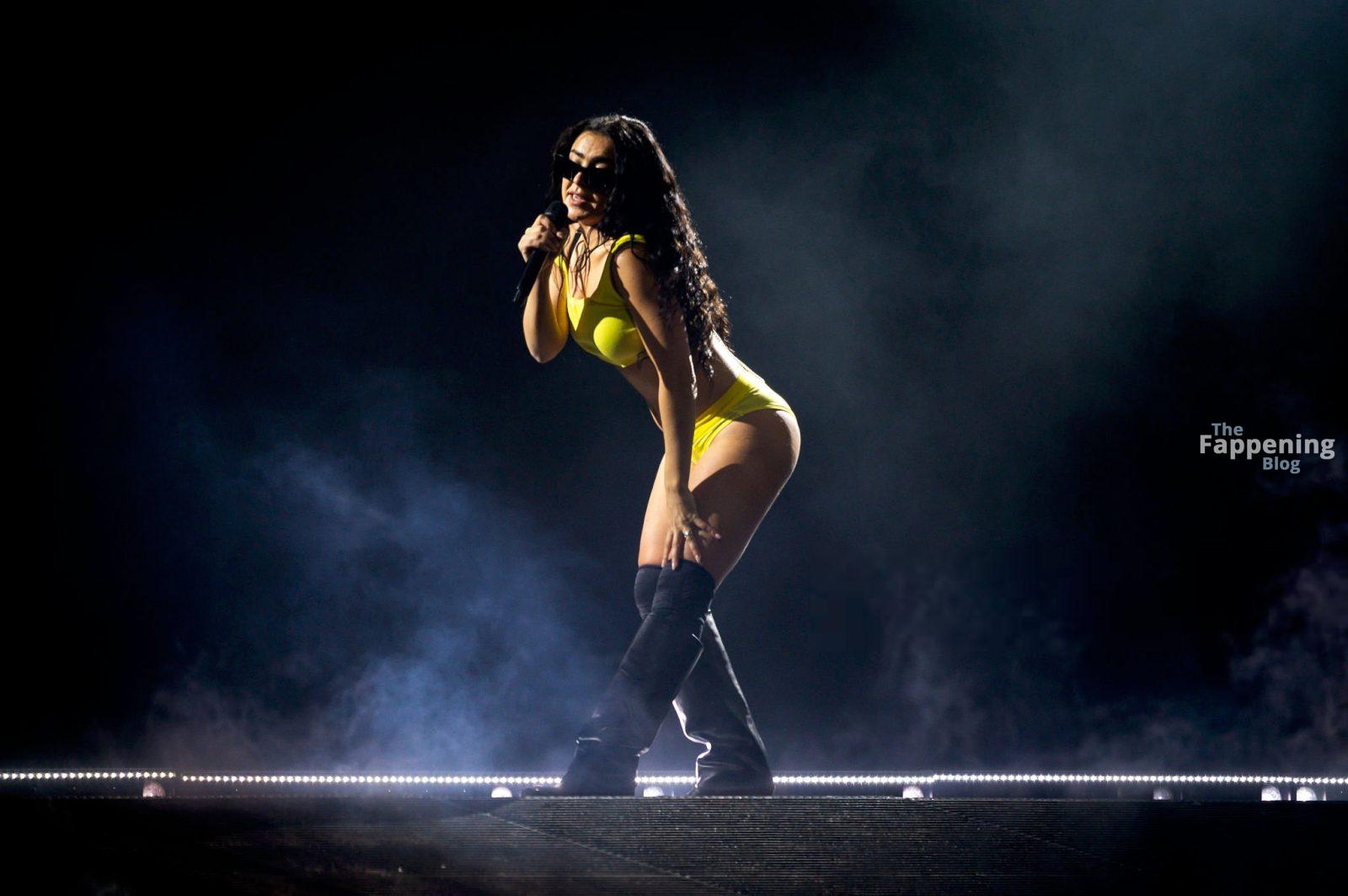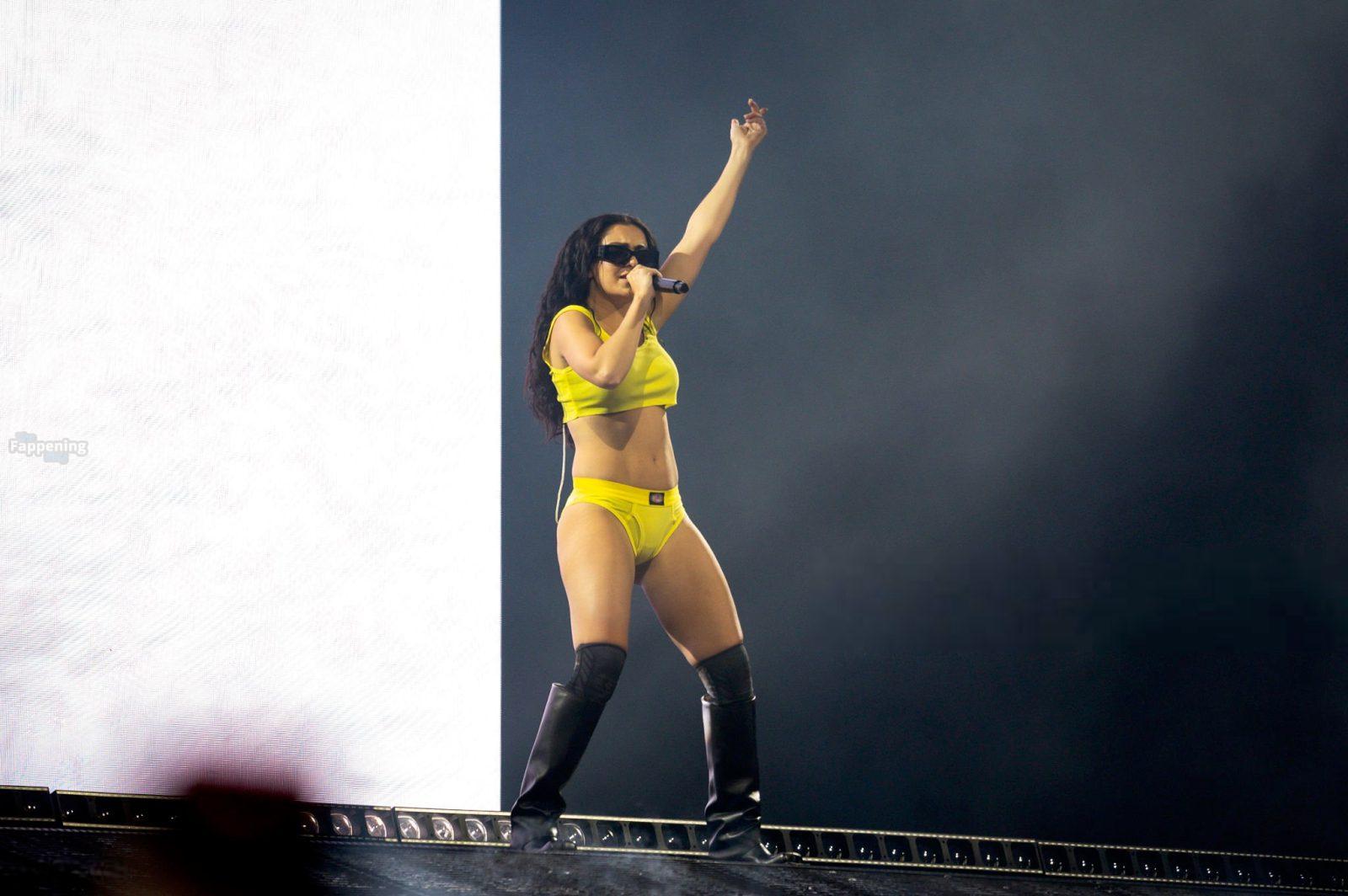 Charli XCX avait l’air épicée le premier jour du festival Sziget à Budapest, portant un short jaune minuscule et un débardeur, dégageant une chaleur intense sur scène.