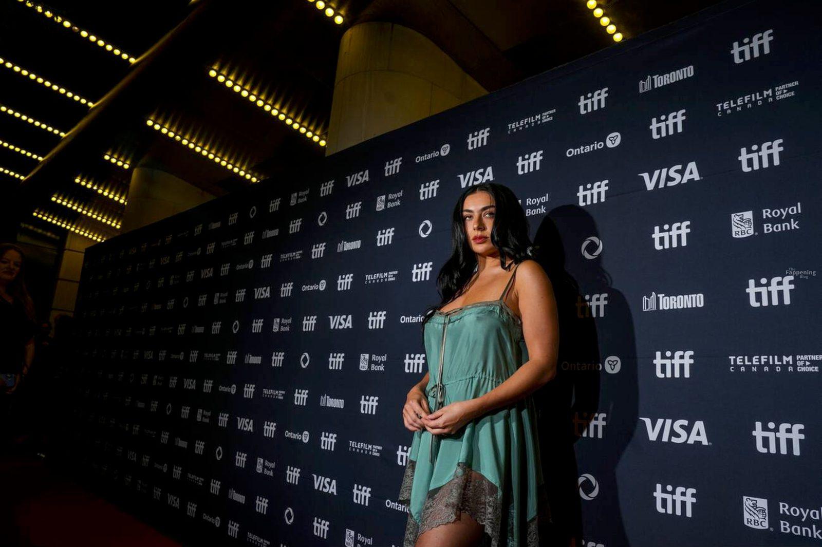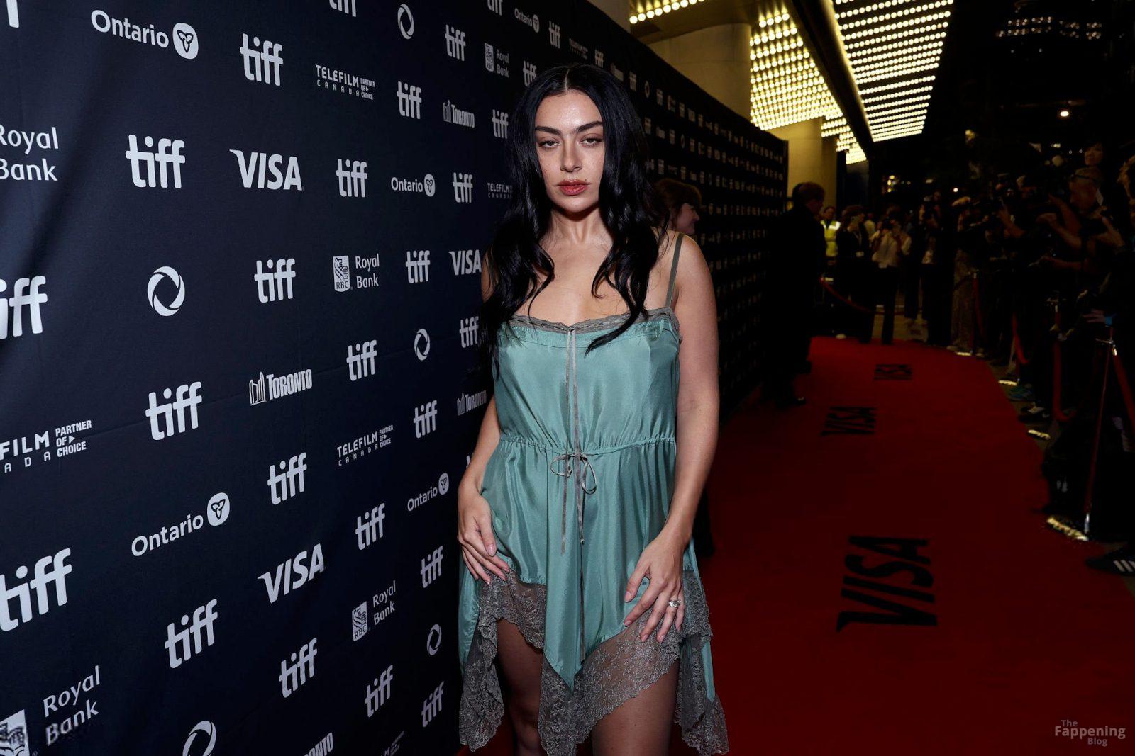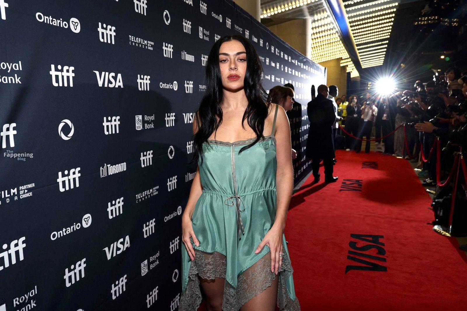 Charli XCX éblouit au TIFF dans une nuisette en dentelle soyeuse, exhibant son décolleté et ses jambes sur le tapis rouge de la première de “Sacrifice”.