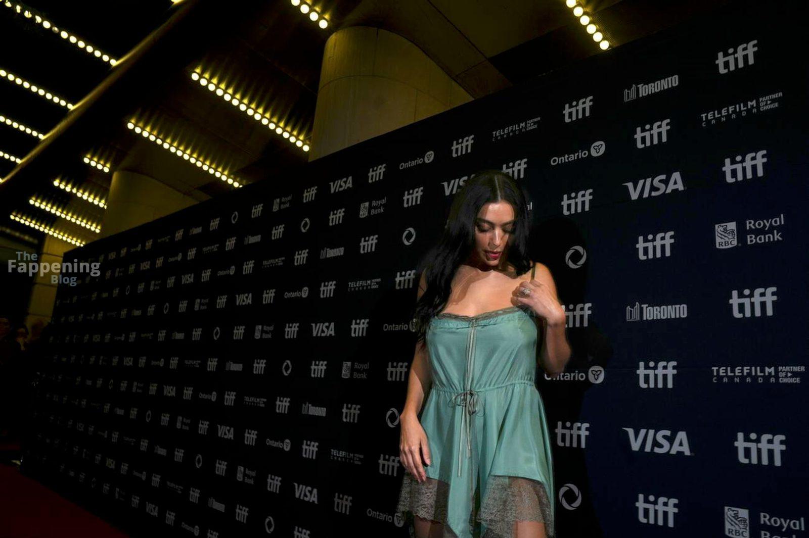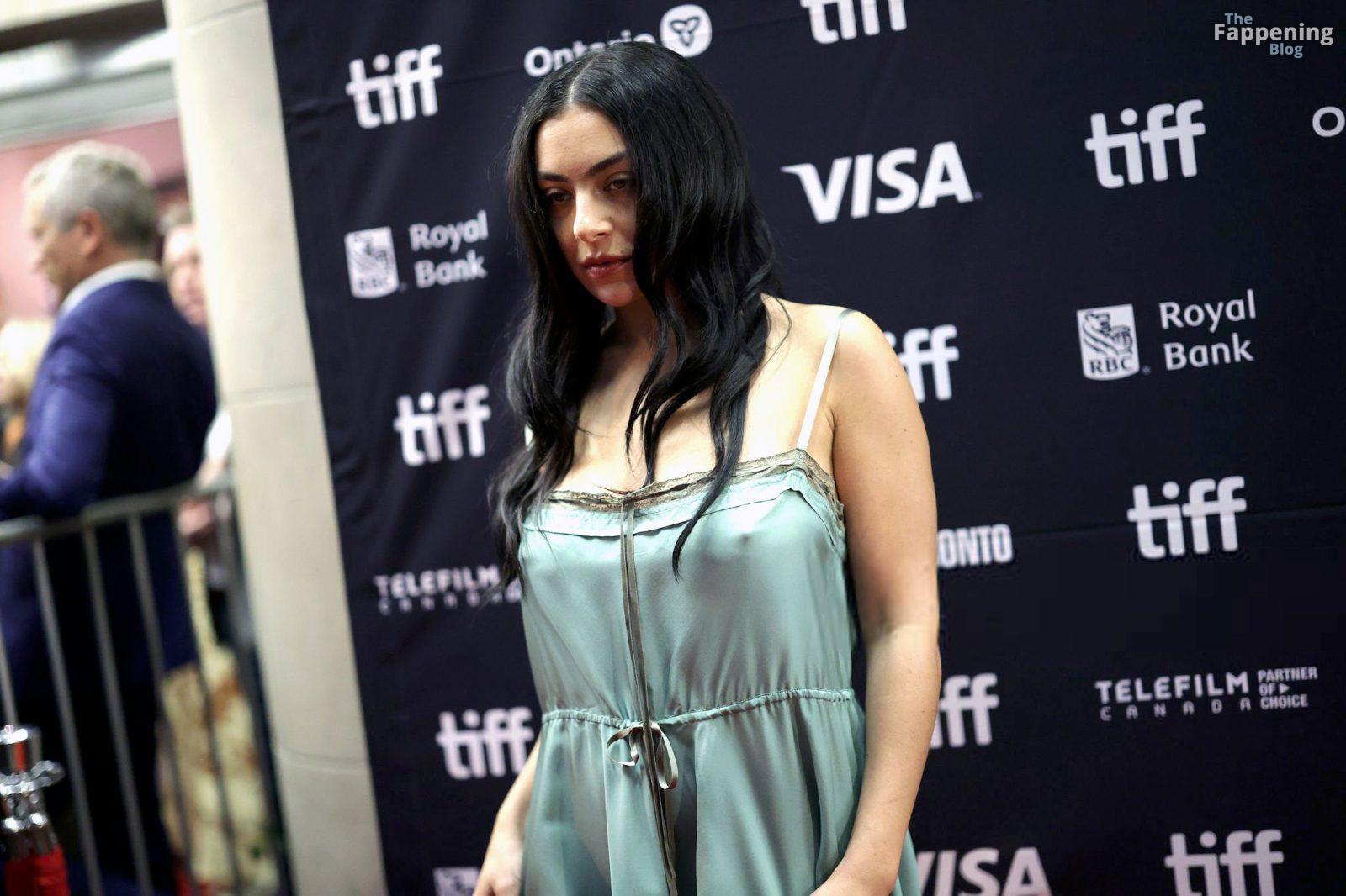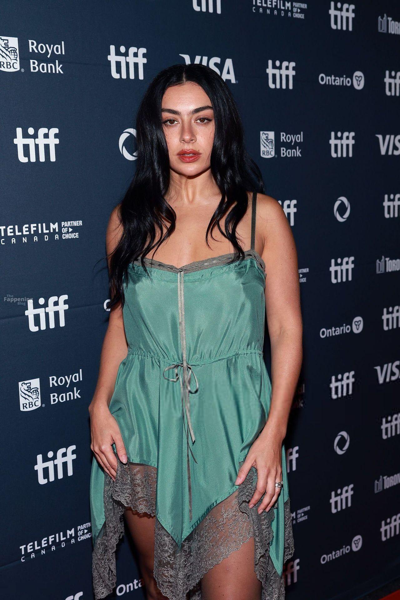 Charli XCX éblouit au TIFF dans une nuisette en dentelle soyeuse, exhibant son décolleté et ses jambes sur le tapis rouge de la première de “Sacrifice”.