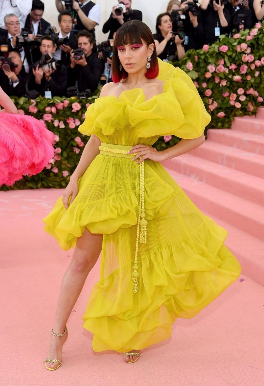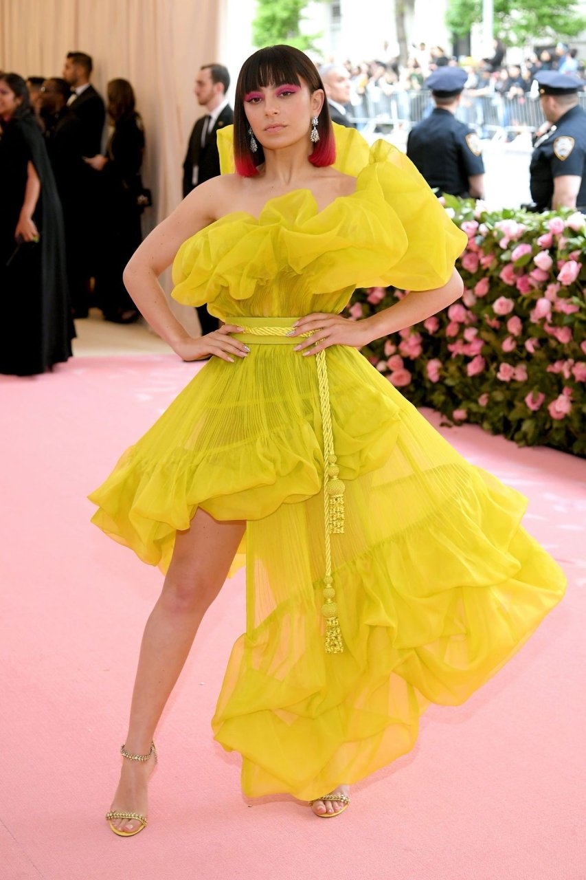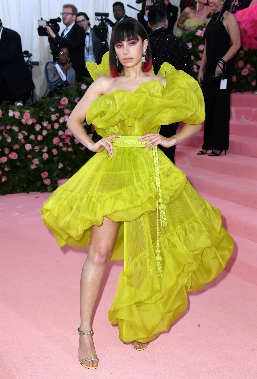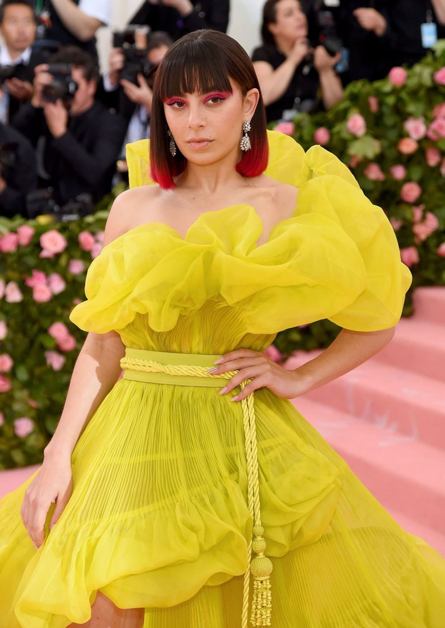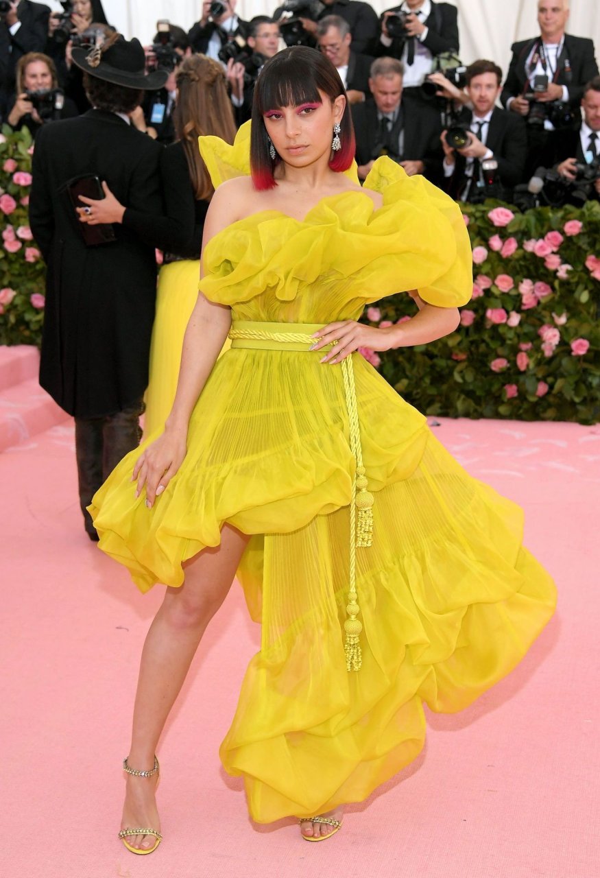 La chanteuse Charli XCX exhibe ses jambes sexy en portant une robe jaune au MET Gala 2019 à New York, 05/06/2019.