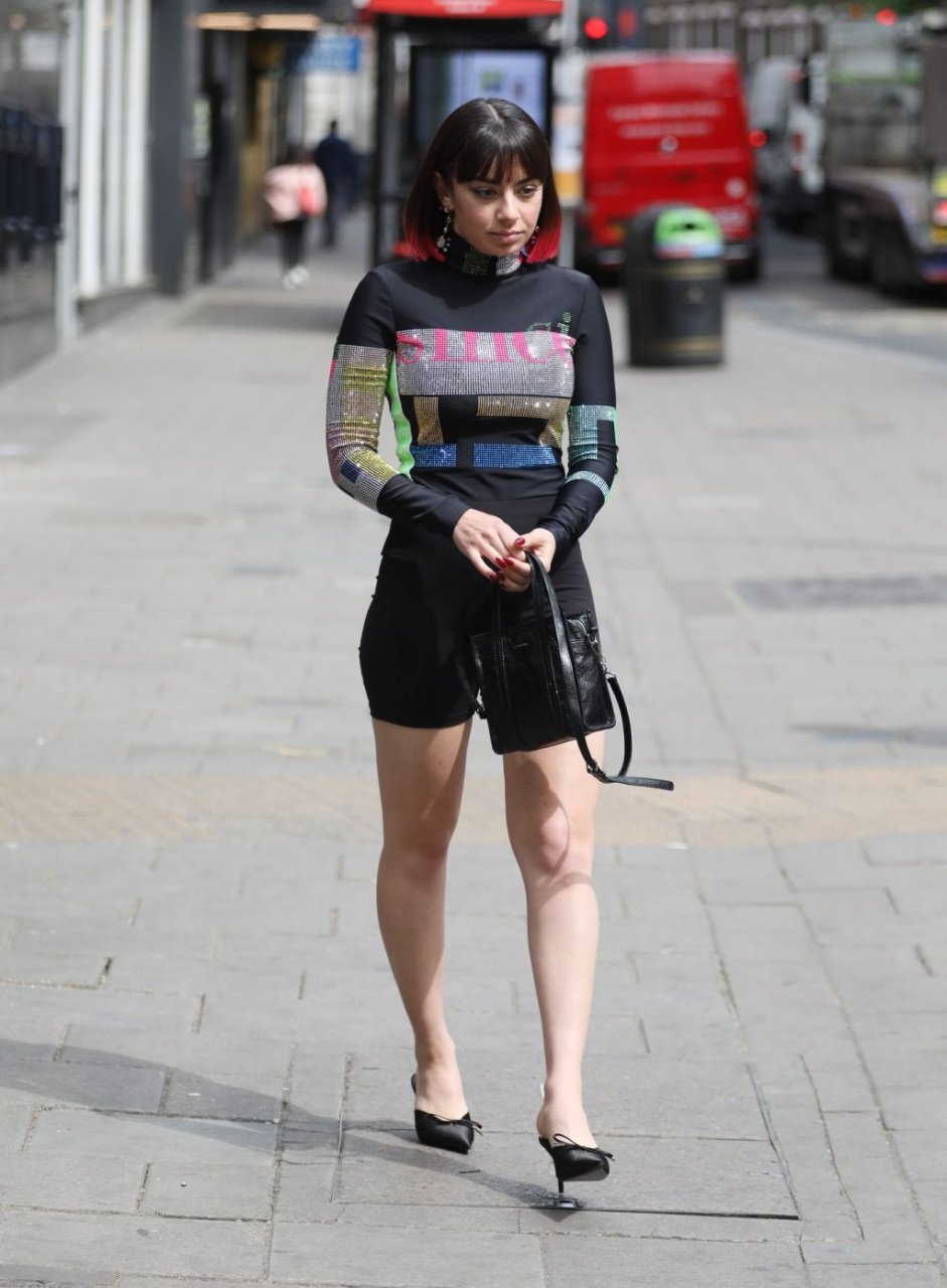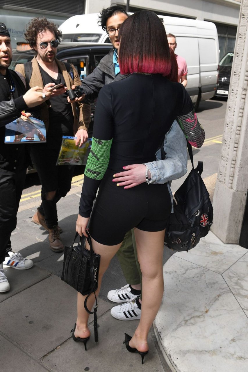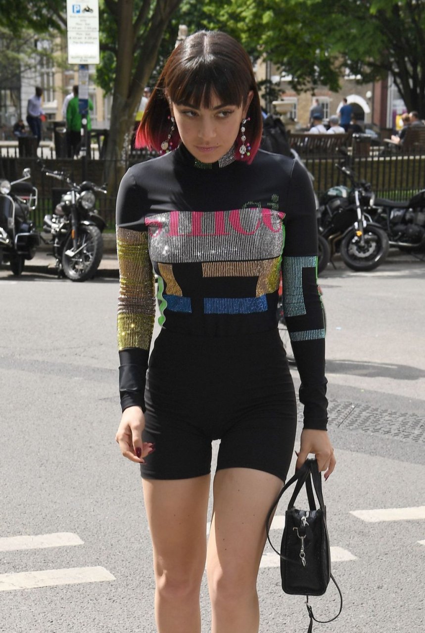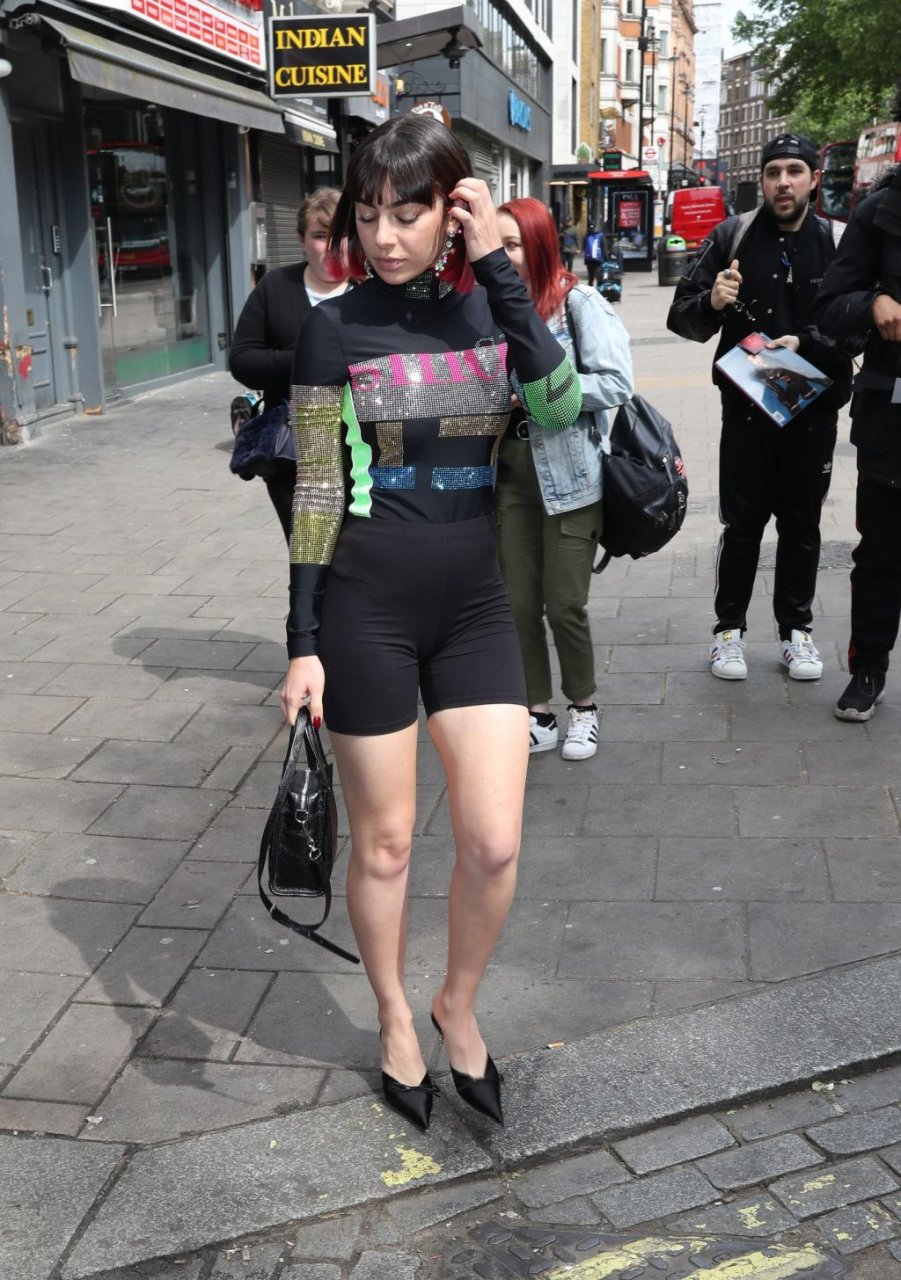 Charli XCX aux longues jambes a été vue dans une combinaison noire moulante en arrivant au Radio Promo Kiss et Global Radio à Londres, le 22/05/2019. Charlotte Aitchison a récemment promu son album « Charli » avec une série de photos nues et des vidéos des coulisses. Dans ses dernières photos, la chanteuse/auteure-compositrice s’est posée seins nus.