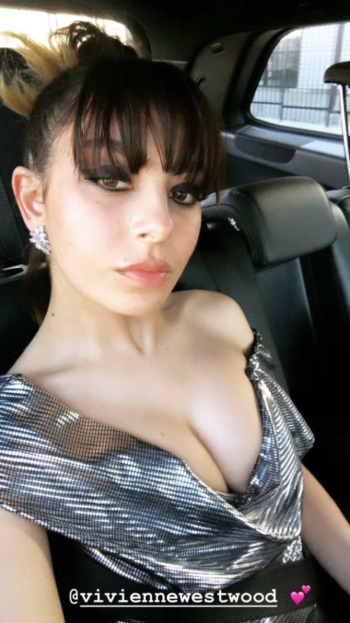 La chanteuse pulpeuse Charli XCX exhibe son décolleté en portant une robe argentée lors de la soirée de visionnage des Mercedes-Benz USA Awards à Beverly Hills, le 24/02/2019.
