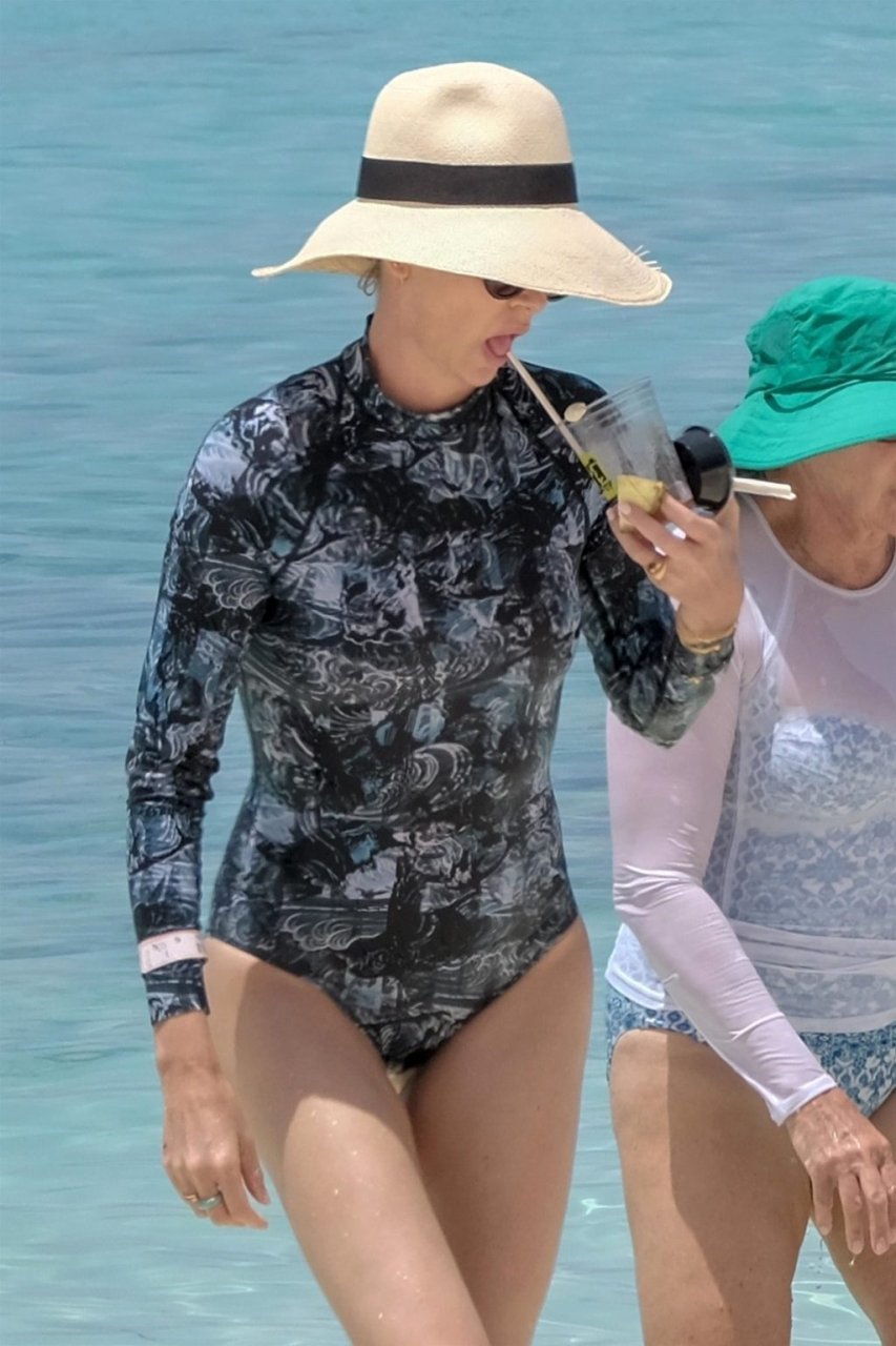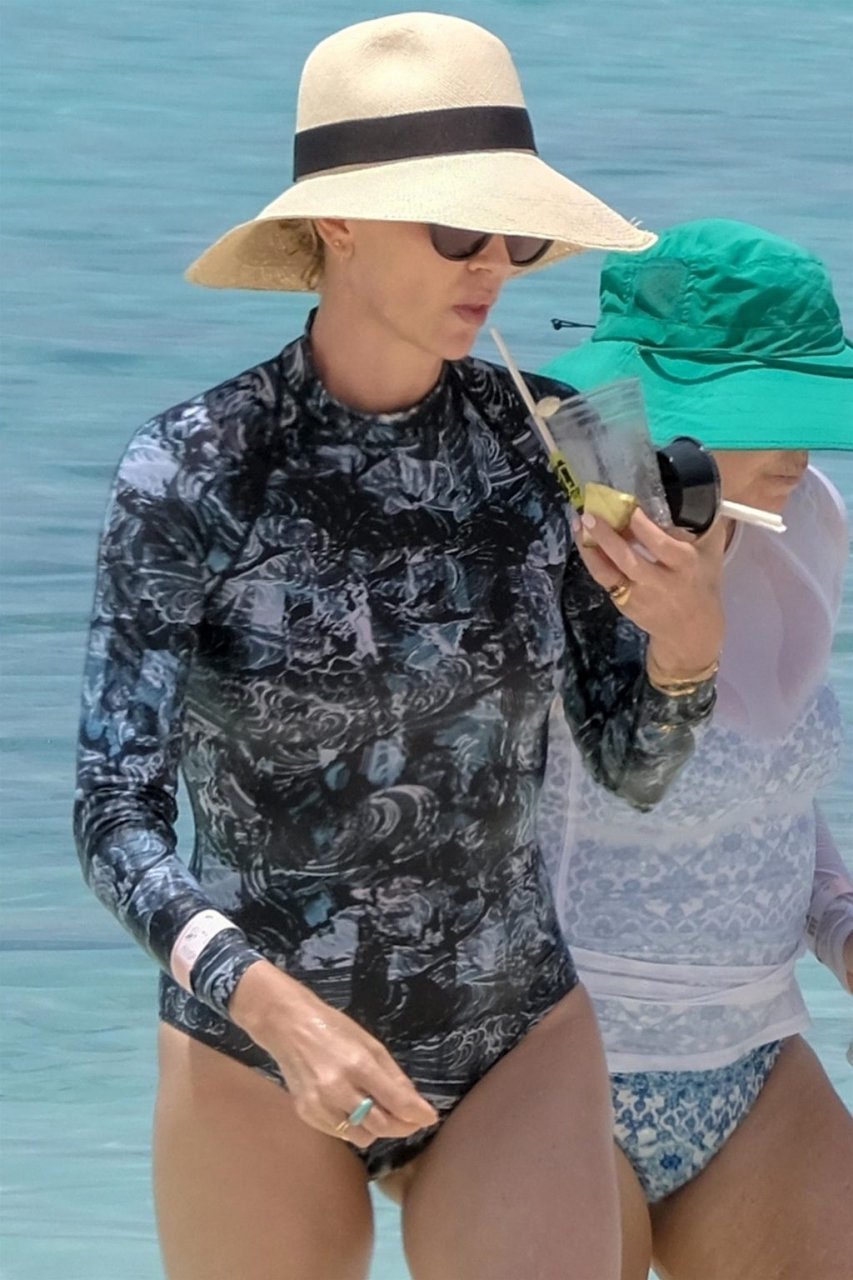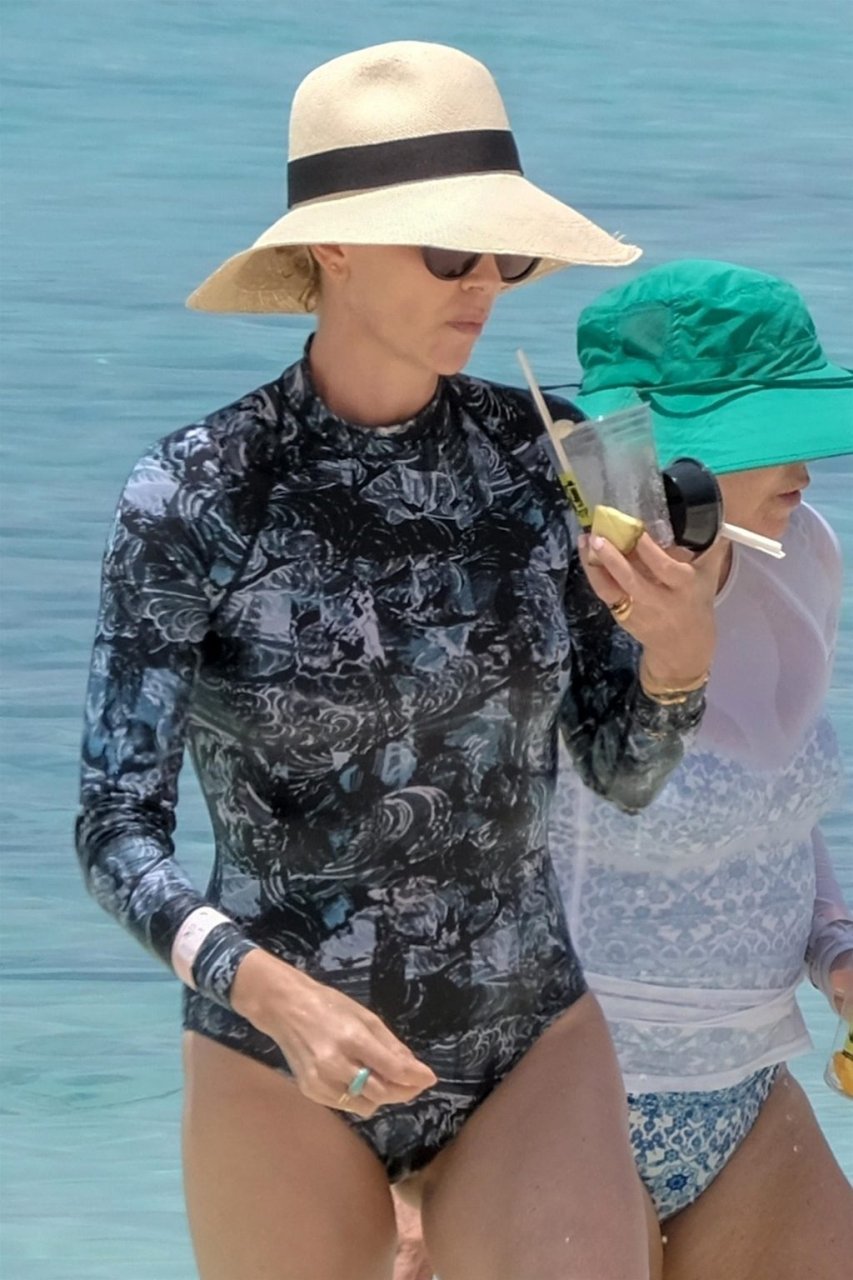 L’actrice Charlize Theron (43 ans) profite d’une journée de plages de sable et de soleil au célèbre complexe Atlantis Bahamas avec sa mère Gerda Jacoba Aletta Maritz, le 18/08/2018. La famille heureuse sirotait des cocktails fruités tout en se rafraîchissant dans les eaux claires et bleues.