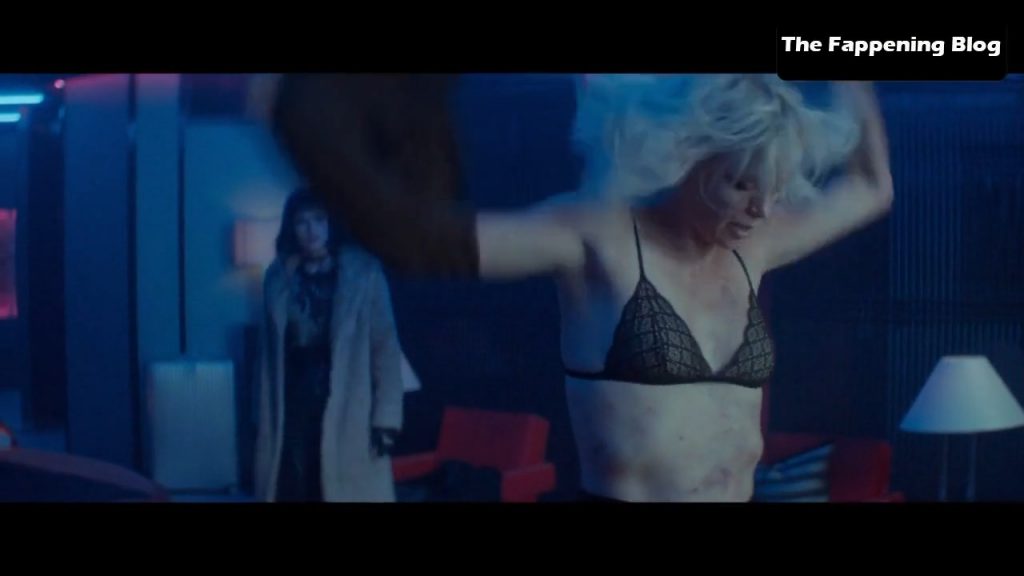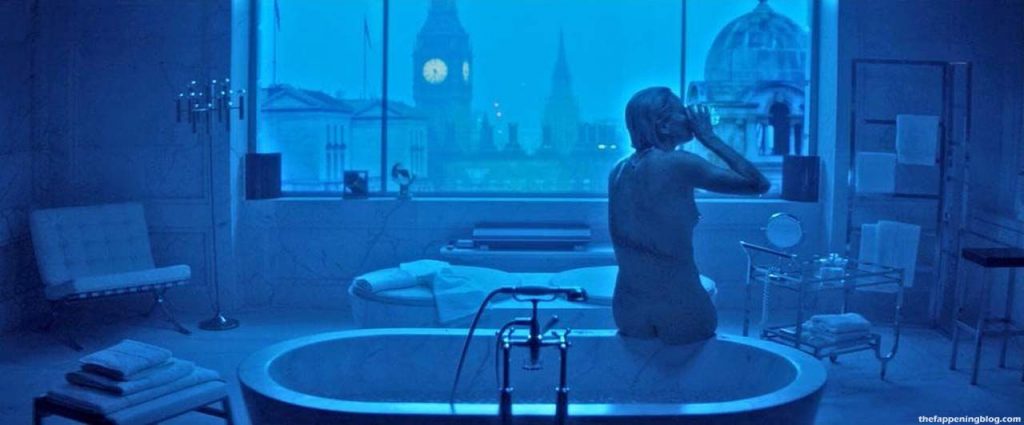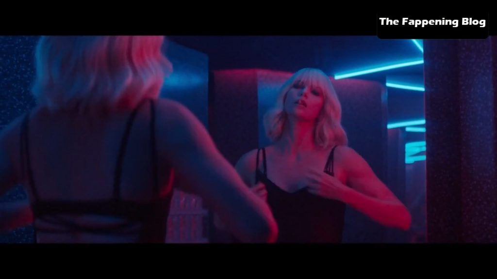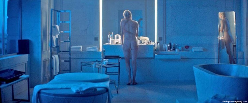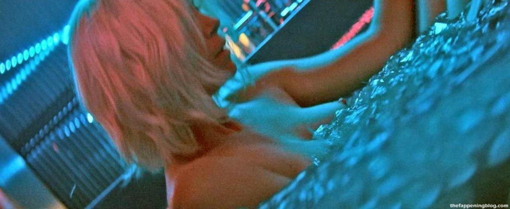 Here are some scenes from a movie called ‘Atomic Blonde’. In this scene, you can see beautiful blonde actress Charlize Theron getting out of the water and sits in a bathtub filled with ice water, showing her nice tits from above. When she exits the bathtub, her butt and tit are in view. Then there’s a blurry view of her topless, and finally, we get a full view of her nude from behind while she stands at a bathroom counter!