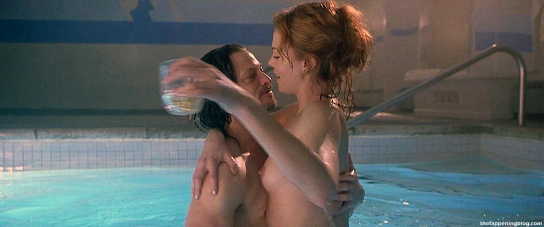 The following few scenes are from a movie called ‘Reindeer Games’. Charlize Theron sex scene while she is completely wet in the pool, she takes off her black bra and remains topless. As she enters the swimming pool of her nude boobs and hot nipples captivate our attention. Perfect view of Charlize’s sexy attributes. Watch Charlize Theron’s nude sexy boobs in a sex scene.