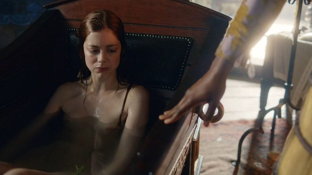 Charlotte Hope apparaît nue dans “The Spanish Princess” (2019) Saison 1 Épisode 1 (s01e01). Charlotte est assise dans une baignoire, dévoilant presque ses seins lorsqu’elle plonge sous l’eau puis se redresse. Nous pouvons voir ses fesses et ses petits seins lorsqu’elle se lève.