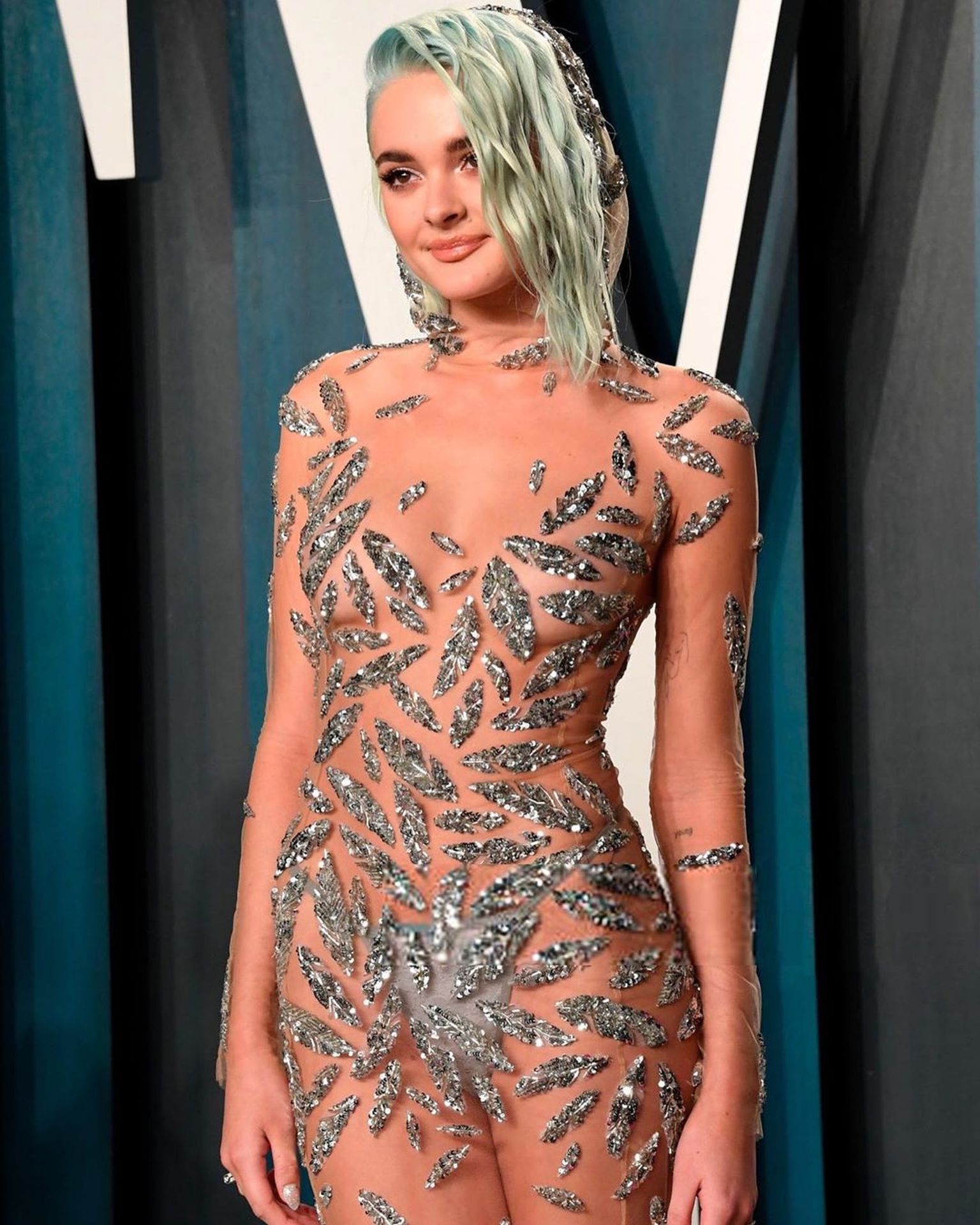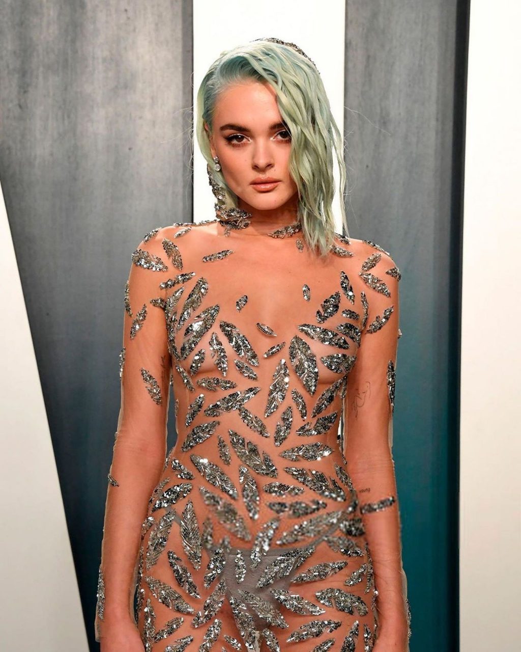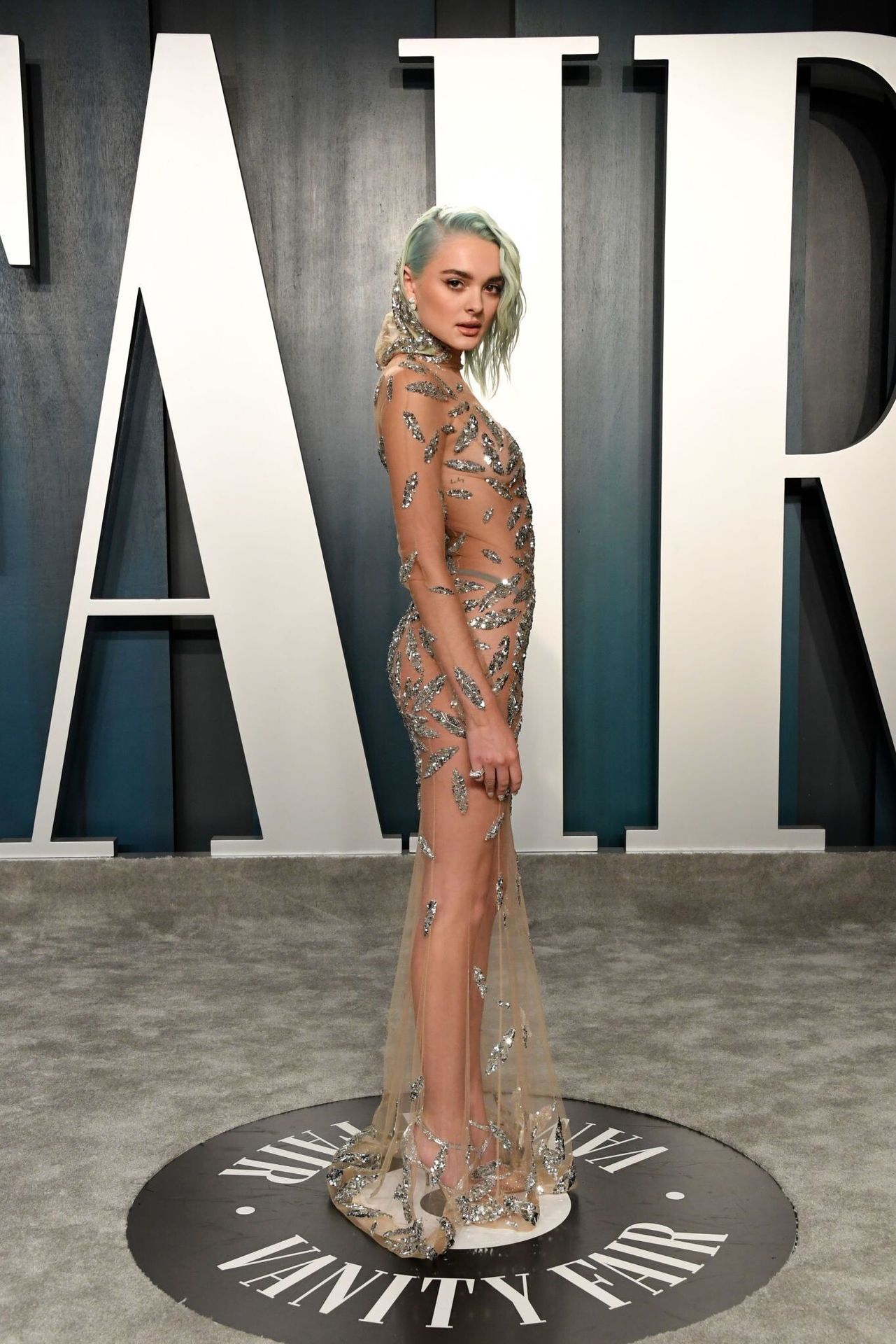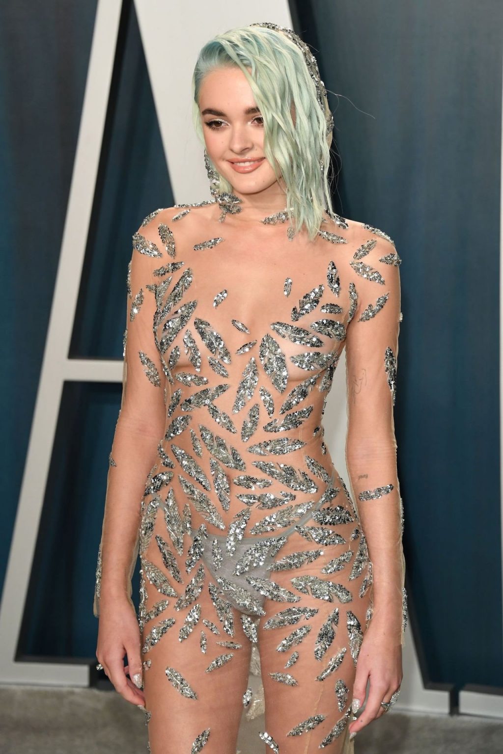 La chanteuse/mannequin Charlotte Lawrence (19 ans) a exhibé son corps sexy en posant dans une robe transparente lors de la soirée Vanity Fair des Oscars à Beverly Hills, le 09/02/2020.