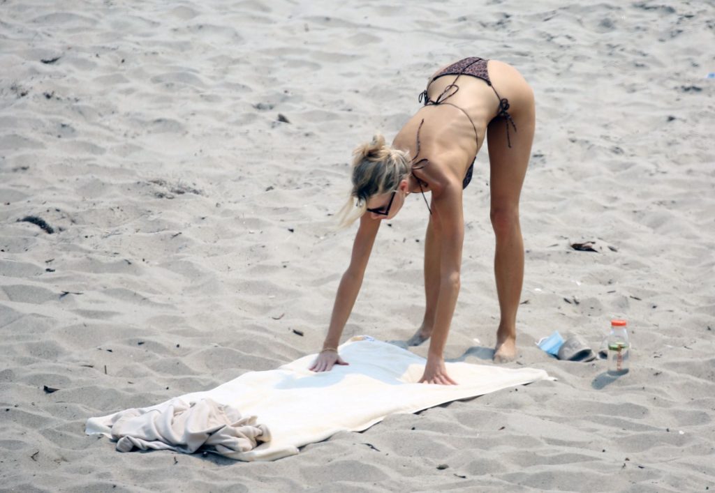 Charlotte McKinney se rend sur la plage de Malibu, 09/08/2020. La mannequin de 26 ans devenue actrice portait un tout petit bikini imprimé léopard. McKinney a célébré la sortie double de deux films dans lesquels elle joue cette semaine, ‘Guest House’ et ‘The Argument‘.