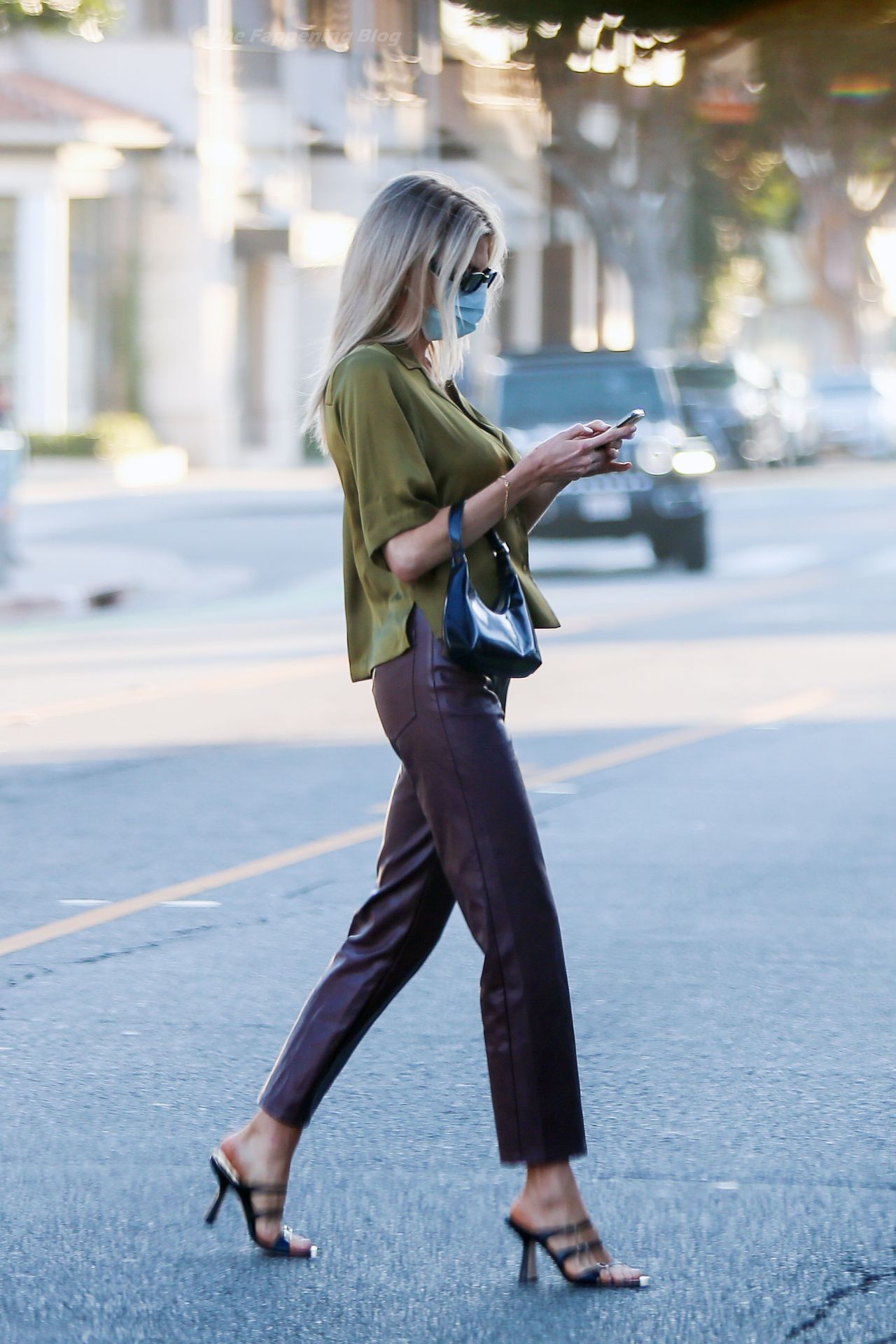 Charlotte McKinney et son petit ami Nathan Kostechko sortent pour un dîner à Los Angeles. L’actrice et mannequin américaine de 27 ans avait un look à la mode avec un chemisier vert olive associé à un pantalon en cuir marron et des talons noirs.