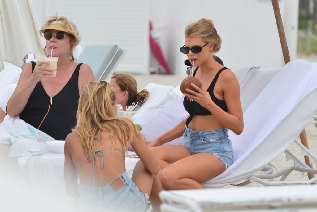 Charlotte McKinney porte un haut de bikini noir sur la plage de Miami, 22/07/2017. Charlotte McKinney est un mannequin et actrice américaine (Flatliners). Âge : 23 ans.