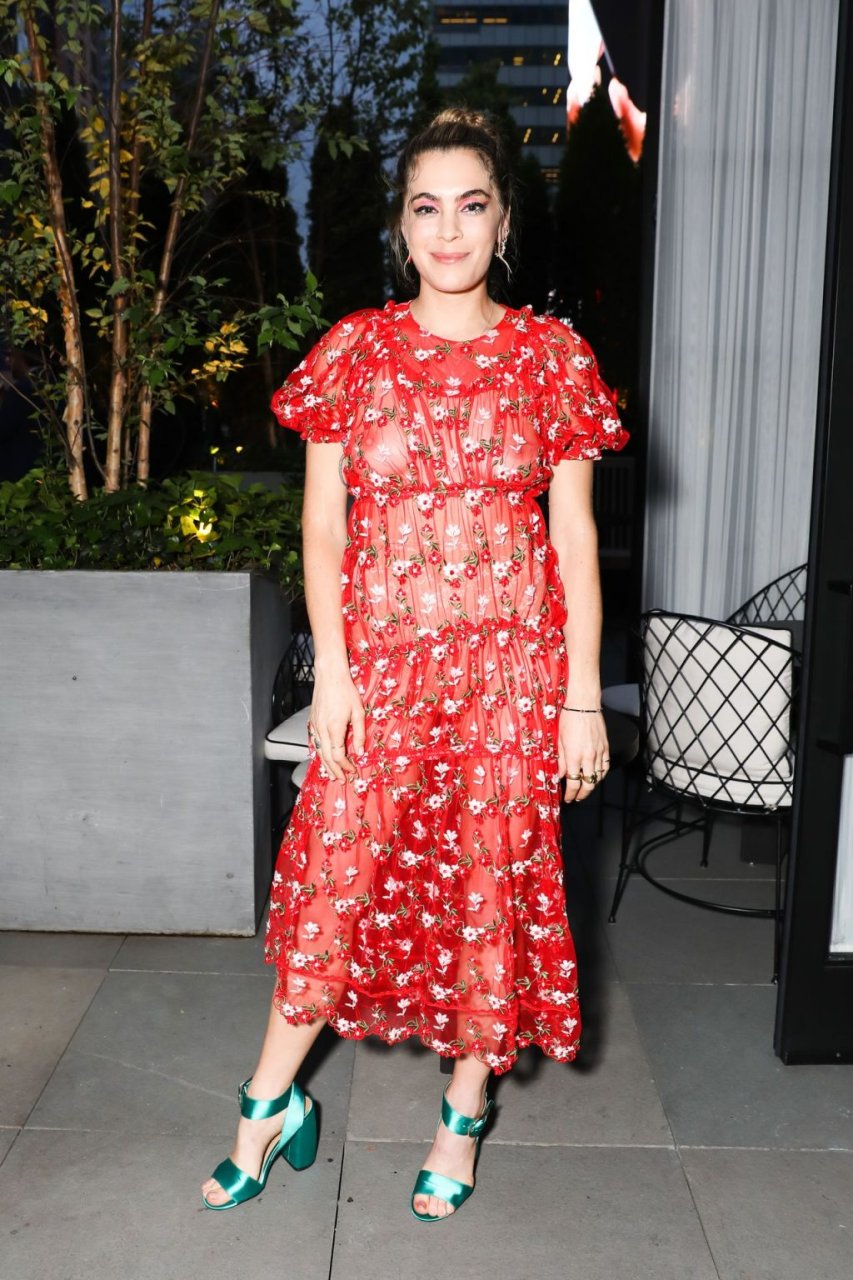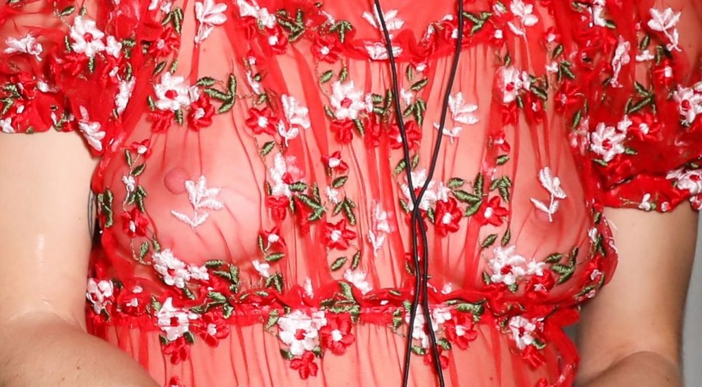 DJ Chelsea Leyland a exhibé sa poitrine dans une robe rouge transparente lors de l’événement BFC British Creative Talent à New York, le 05/06/2019.