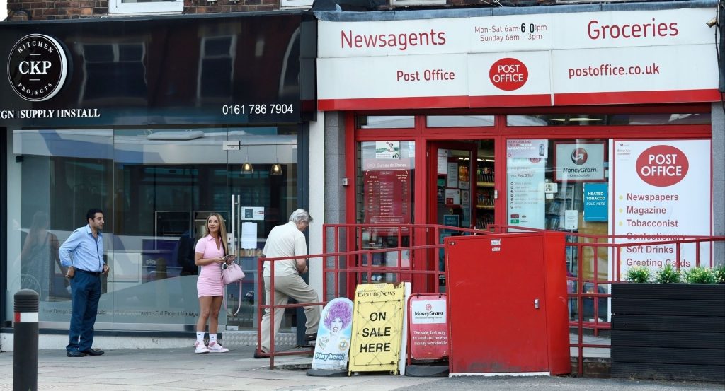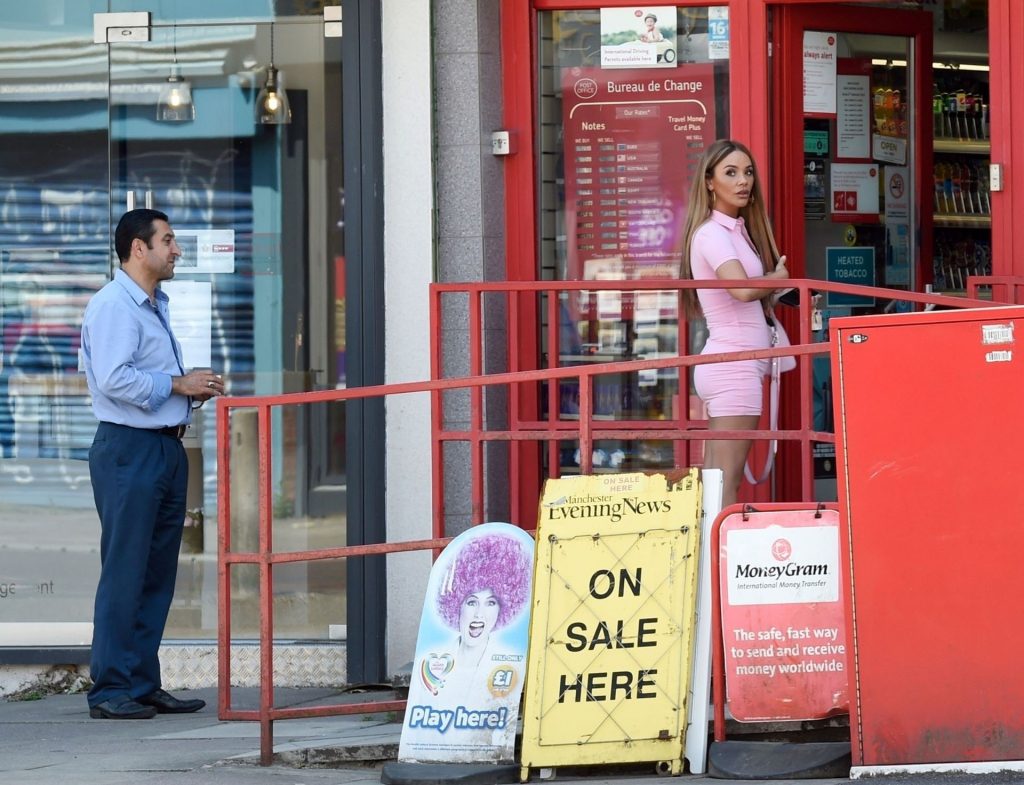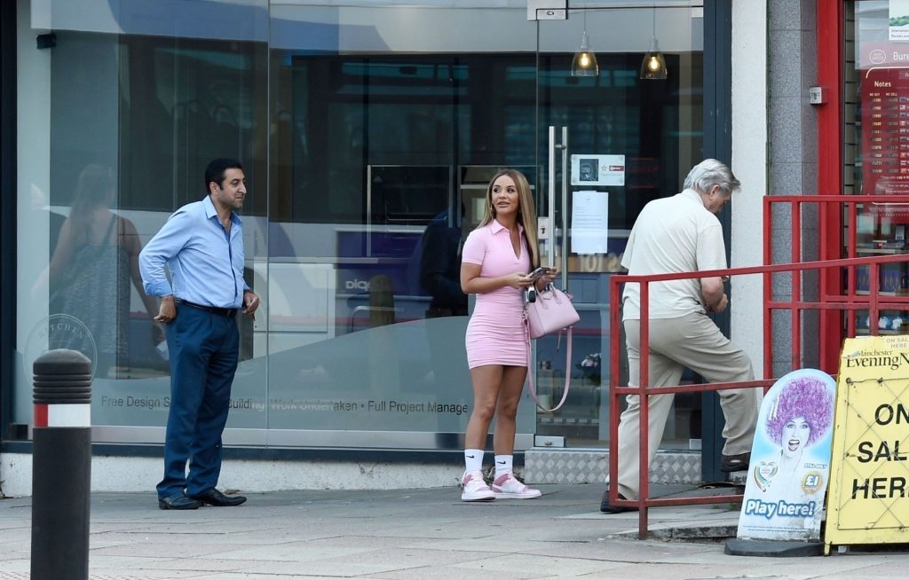 Ancienne actrice de Hollyoaks, Chelsee Healey respecte cette fois les règles de distanciation sociale alors qu’elle est vue faisant la queue au bureau de poste à Manchester, affichant un look très estival tout en rose, 06/01/2020.