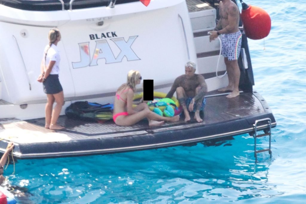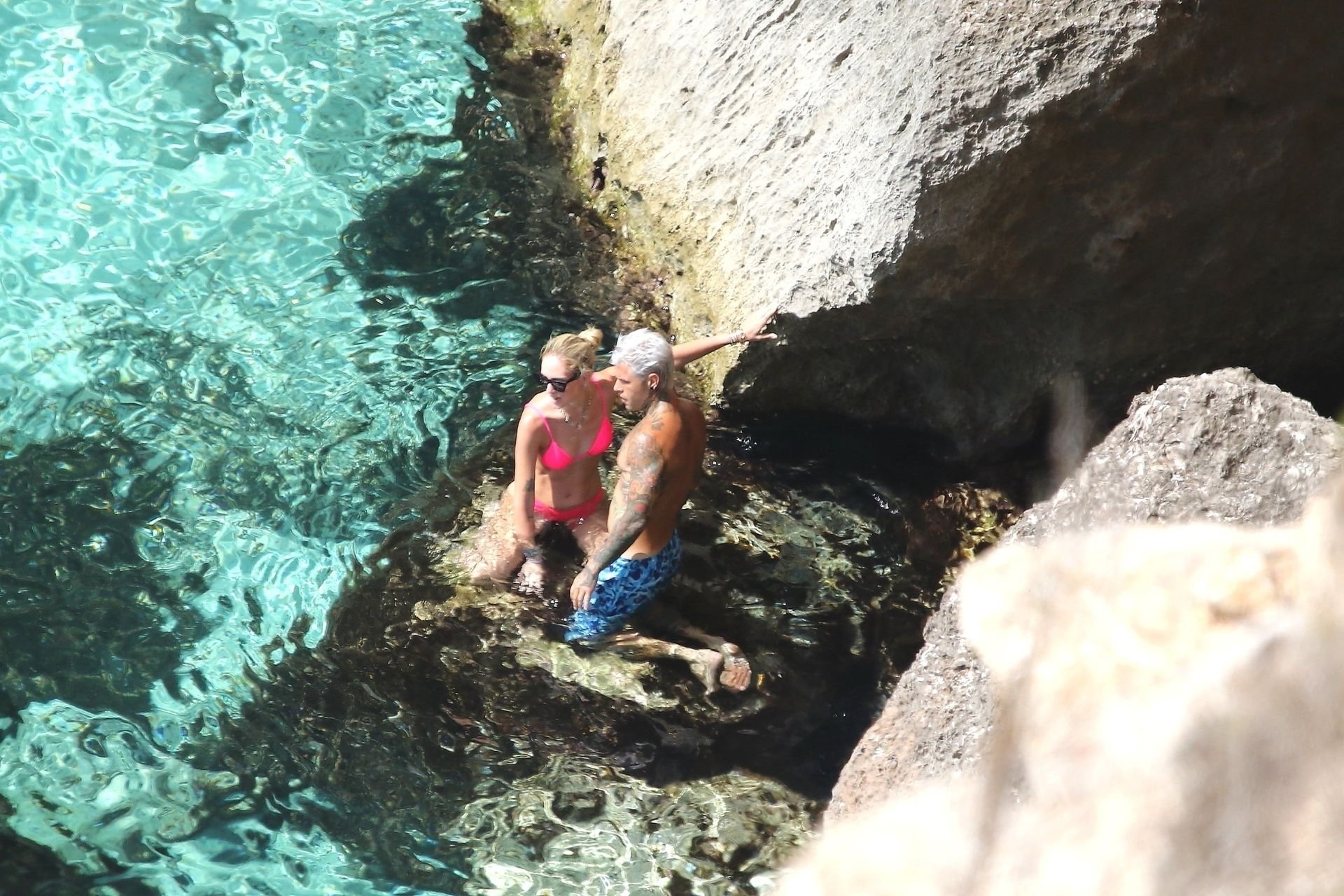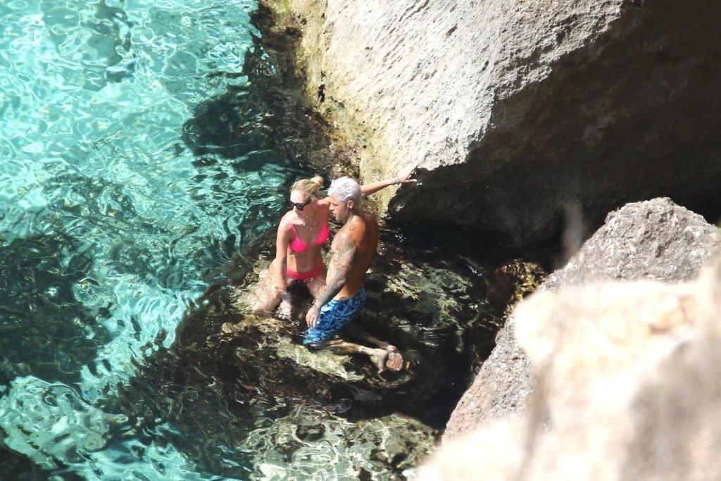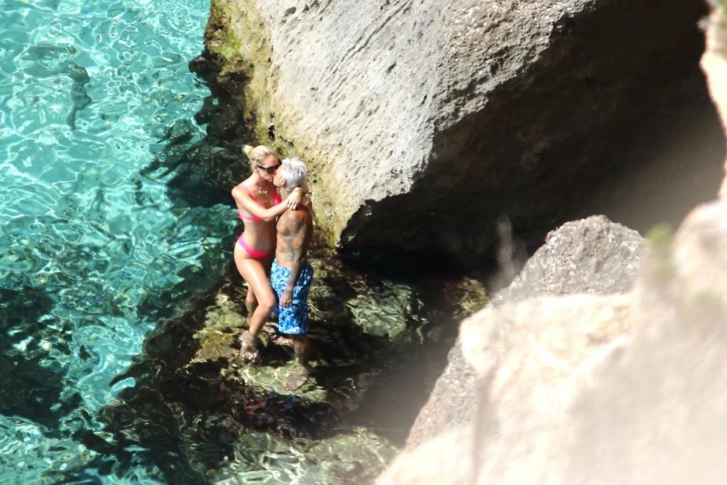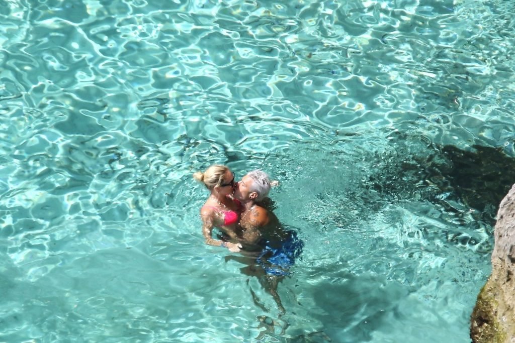 Chiara Ferragni portait un bikini deux pièces rose et Fedez un short bleu imprimé. Le couple avait l’air joyeux alors qu’ils partageaient un baiser passionné.