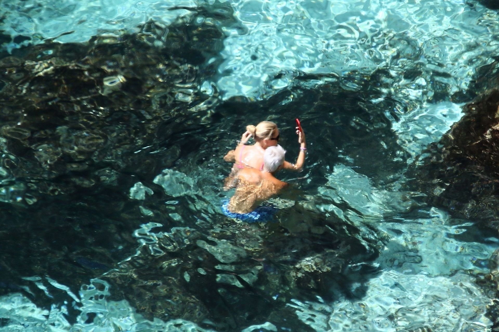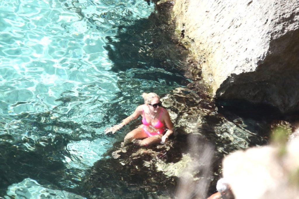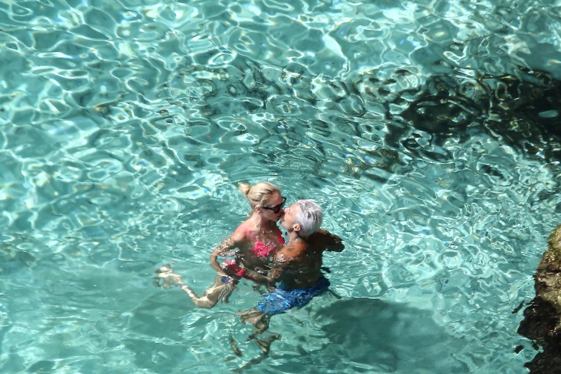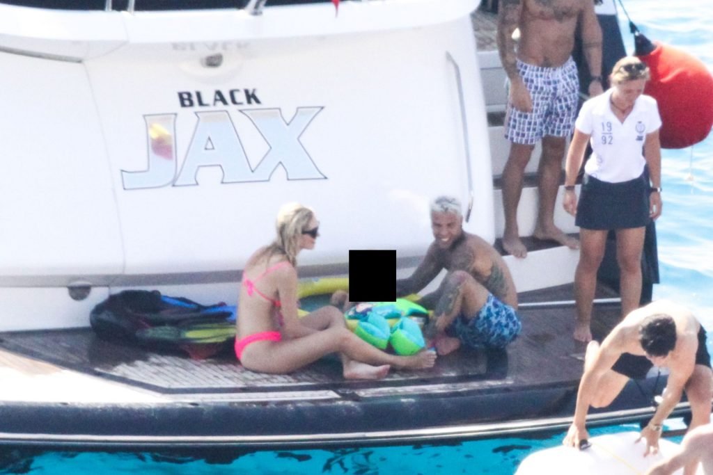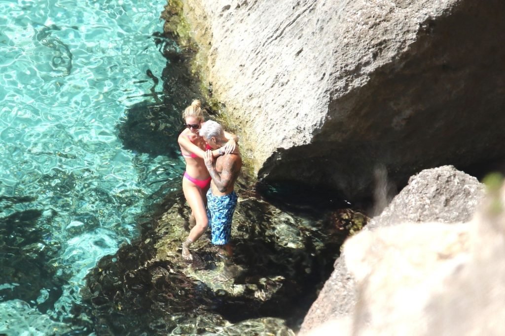 Chiara Ferragni portait un bikini deux pièces rose et Fedez un short bleu imprimé. Le couple avait l’air joyeux alors qu’ils partageaient un baiser passionné.