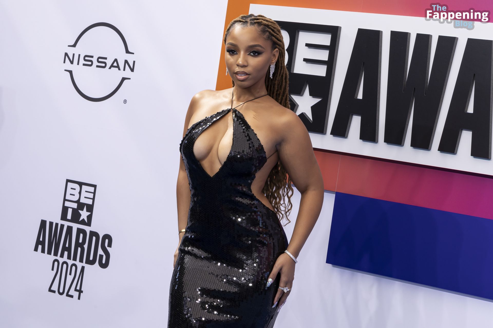 Chloe Bailey a été photographiée lors des BET Awards 2024, arborant une robe noire très décolletée qui était tout simplement incendiaire. Elle montrait un décolleté de folie et ses gros seins, et on a tous les détails sur son look audacieux et saisissant.