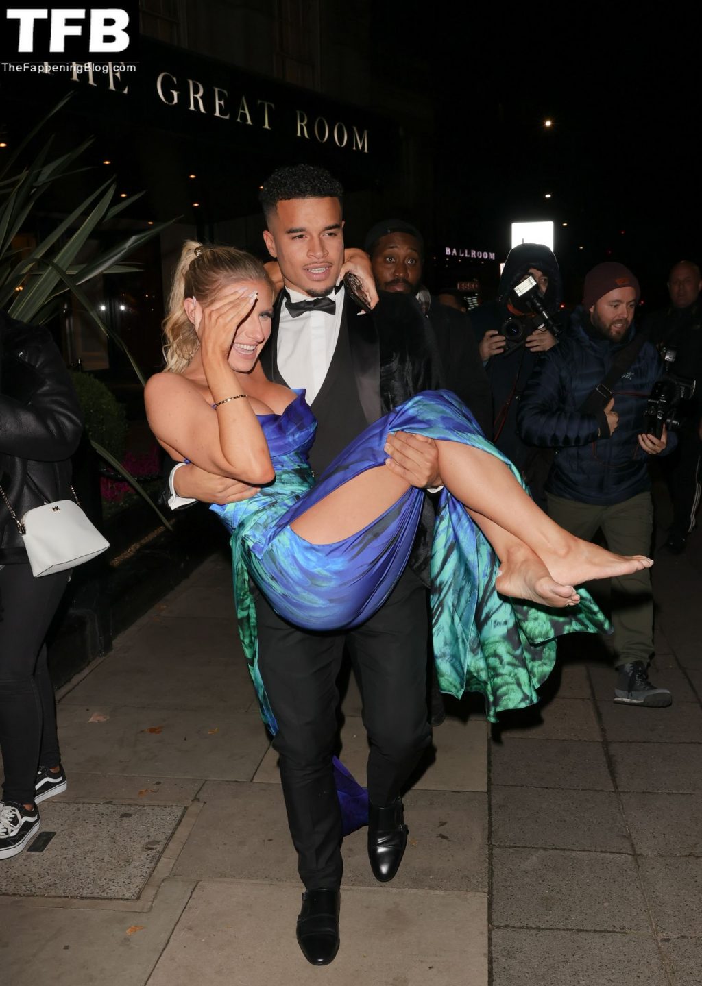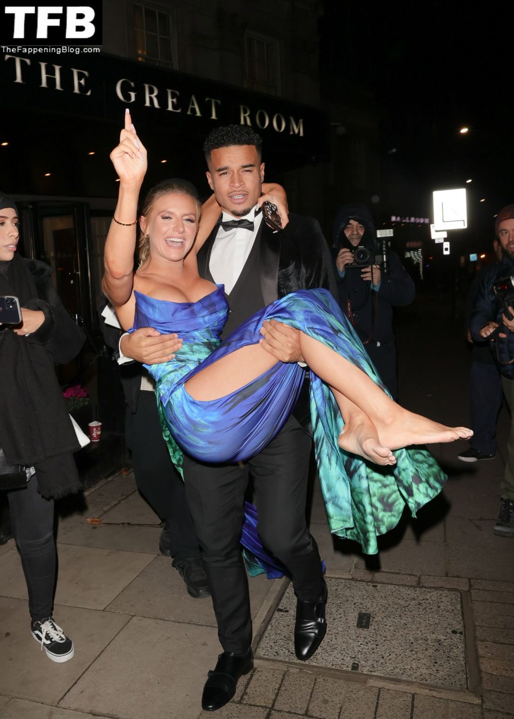 La star de la télé-réalité Chloe Burrows est photographiée dans une magnifique robe avec un décolleté plongeant aux Pride of Britain Awards au Grosvenor House à Londres, le 30/10/2021.