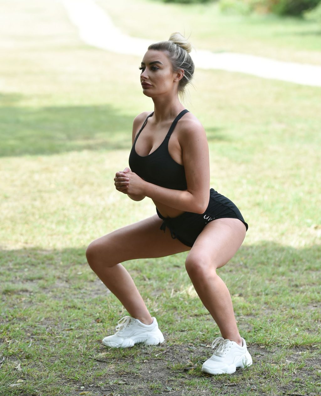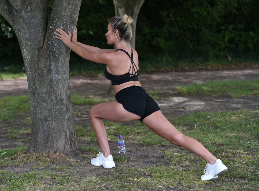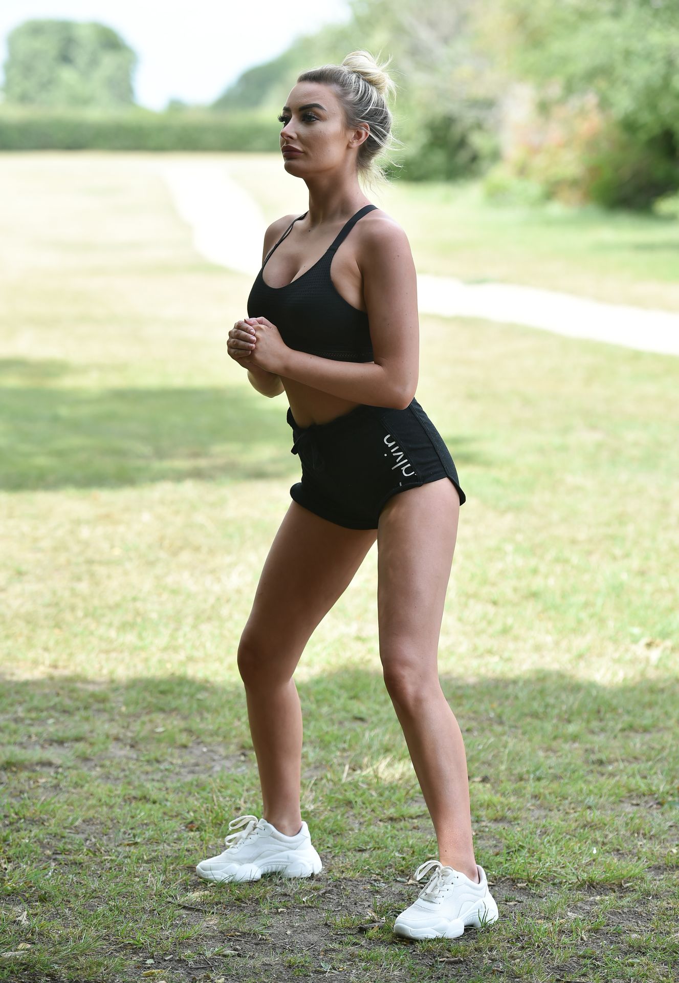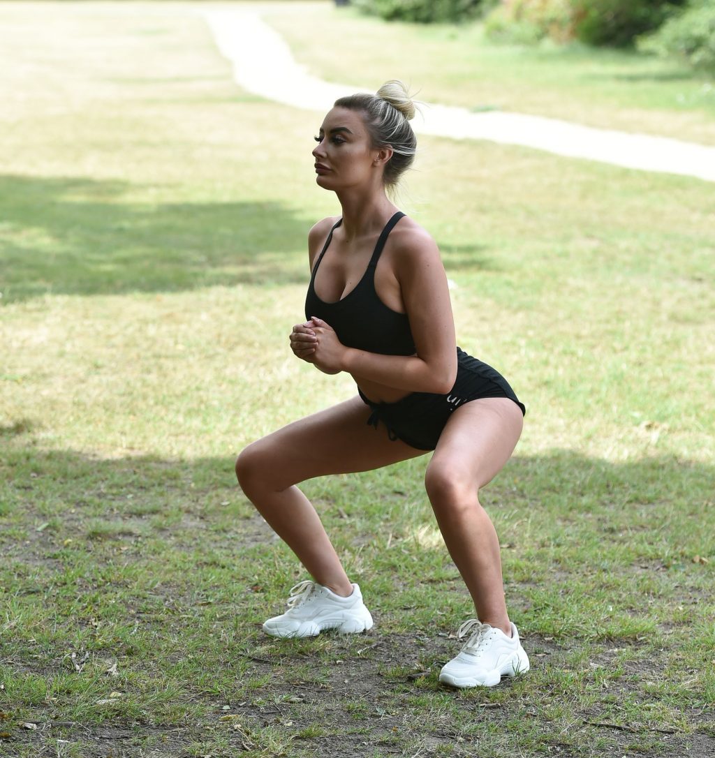 Love island star Chloe Crowhurst est vue en train de faire son entraînement matinal dans son parc local à Chigwell, Essex, 22/08/2020.