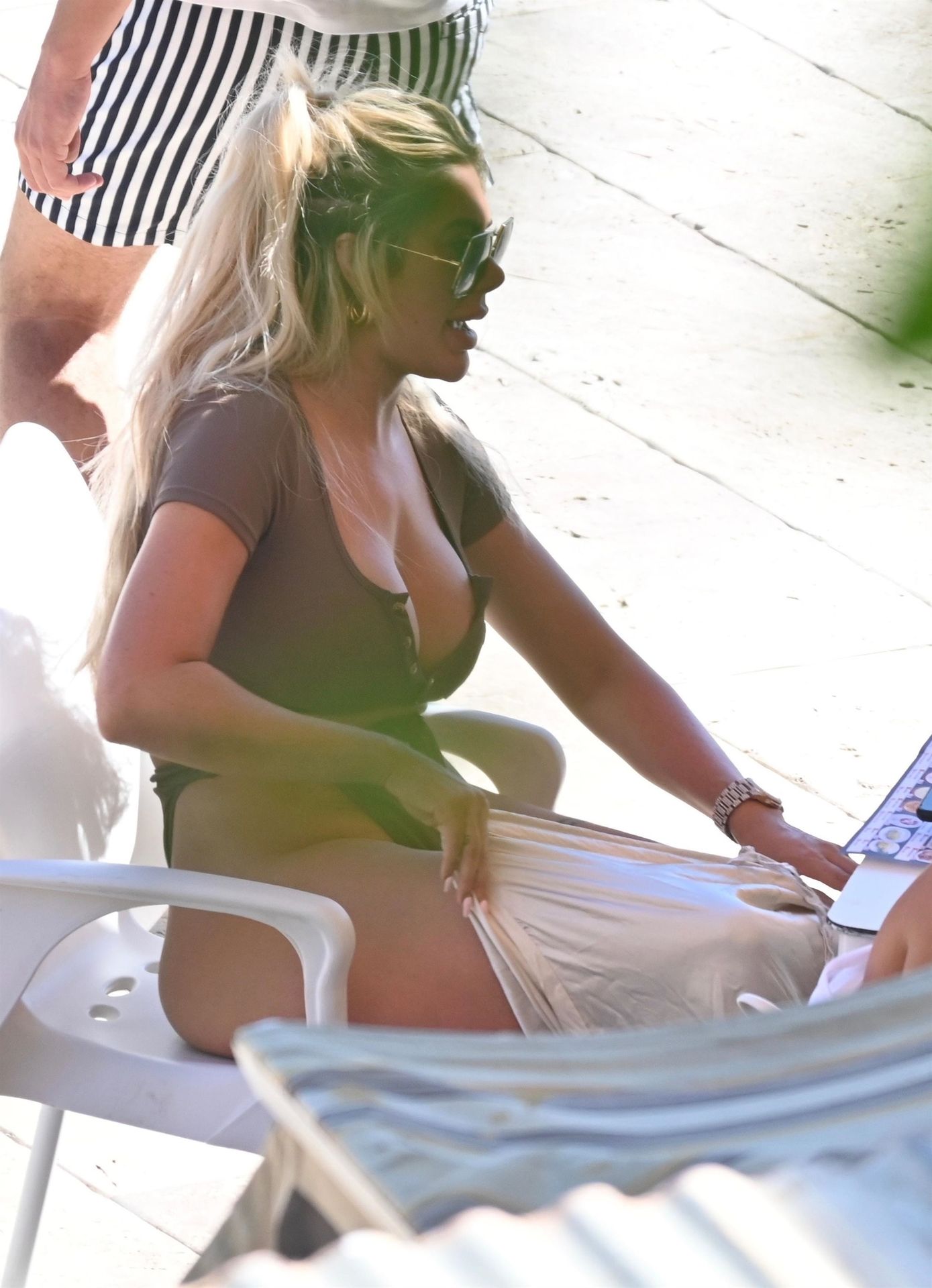 Chloe, qui a récemment fêté ses 25 ans, a exhibé un décolleté généreux dans un haut plongeant tandis que Bethan a opté pour un look plus osé et léger, portant son bikini blanc.