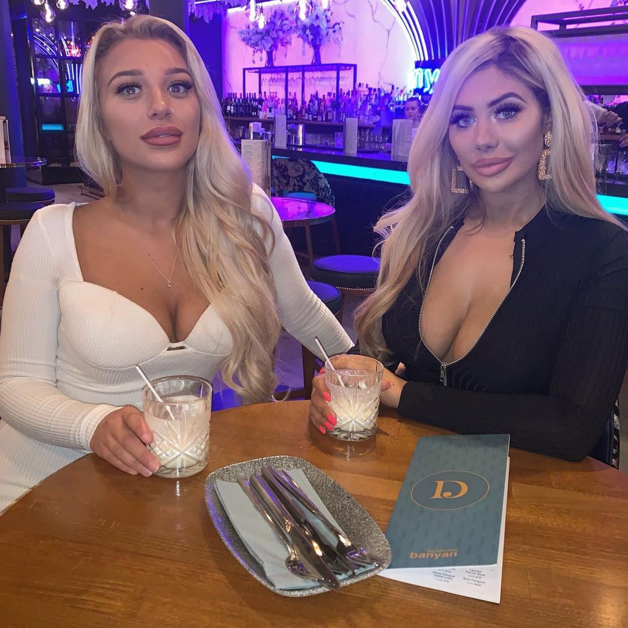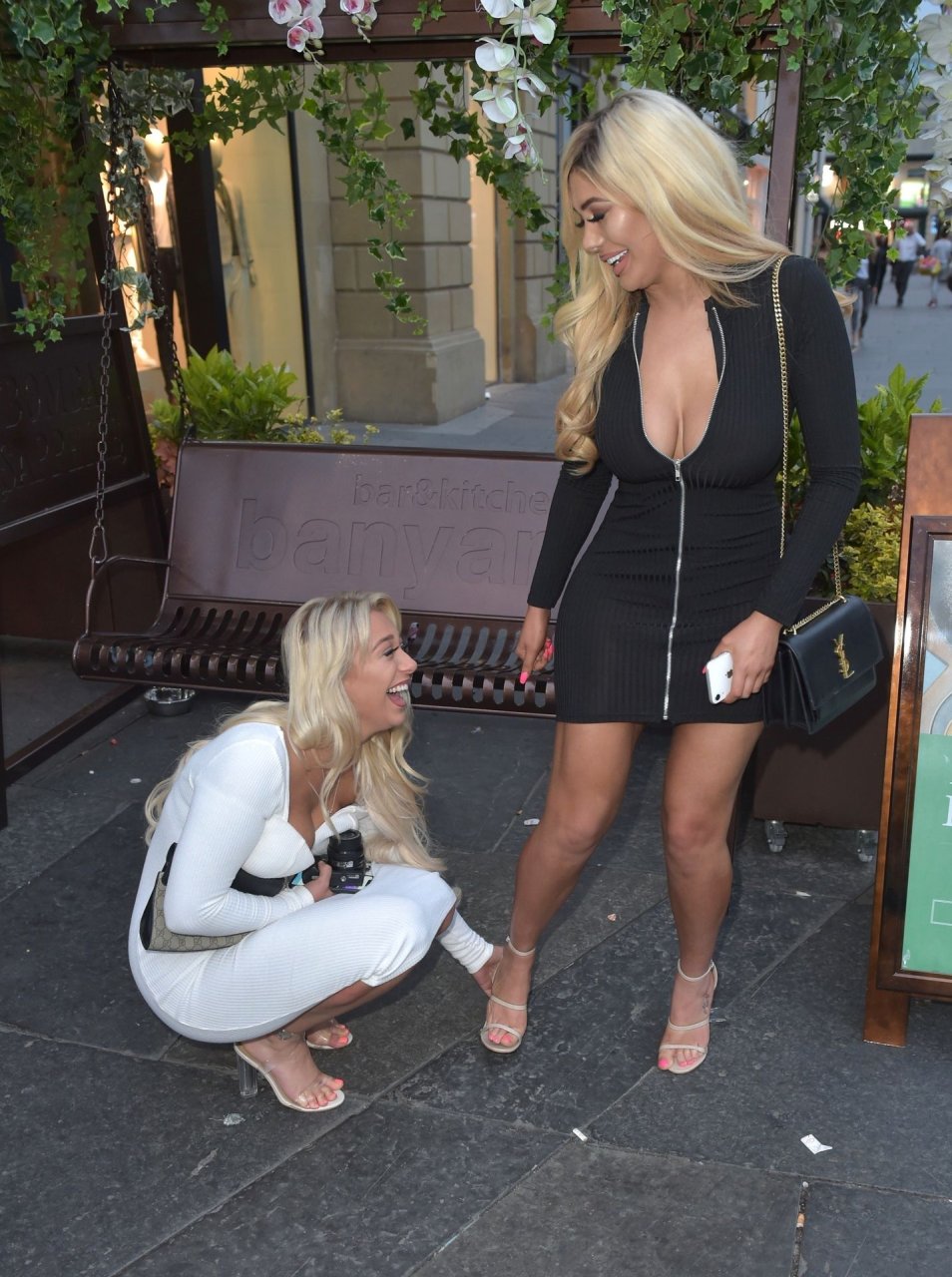 Chloe Ferry de Geordie Shore et la nouvelle venue Bethan Kershaw profitent d’un rendez-vous entre amies alors que les deux sont allées manger au restaurant Banyan à Newcastle, 05/04/2019.