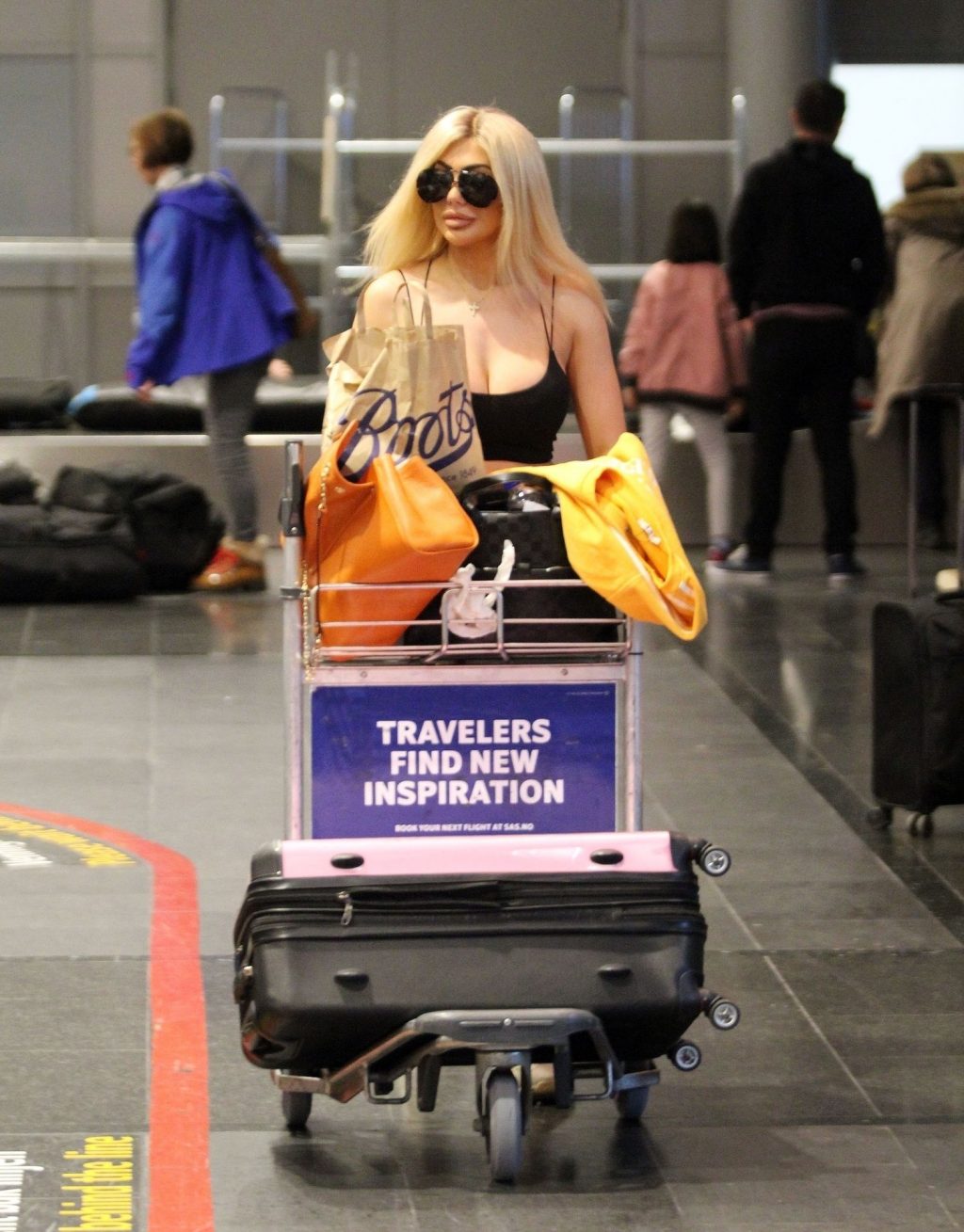 “Geordie Shore” star Chloe Ferry montre ses fesses dans des leggings noirs moulants alors qu’elle est photographiée en train de récupérer ses bagages à l’aéroport en Norvège pour attraper un vol de correspondance, 29/12/2019.