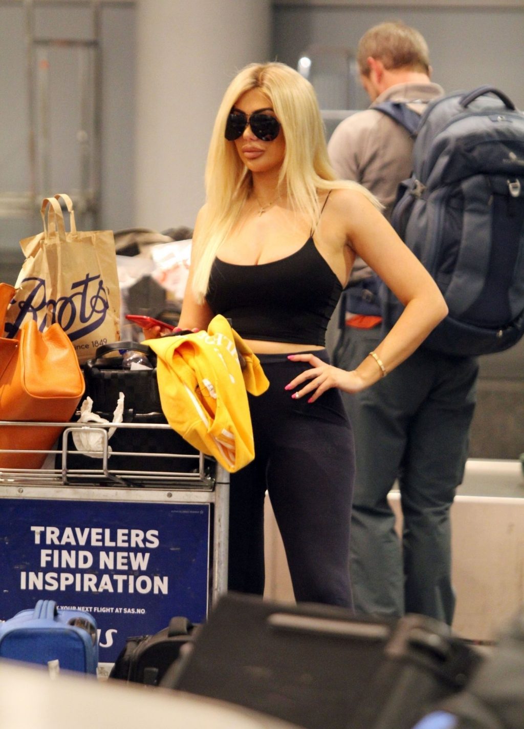 Chloe avait un look décontracté avec des baskets, un débardeur noir et des leggings en se dirigeant vers l’aéroport pour prendre son prochain vol ! On aperçoit des aréoles sur certaines photos.