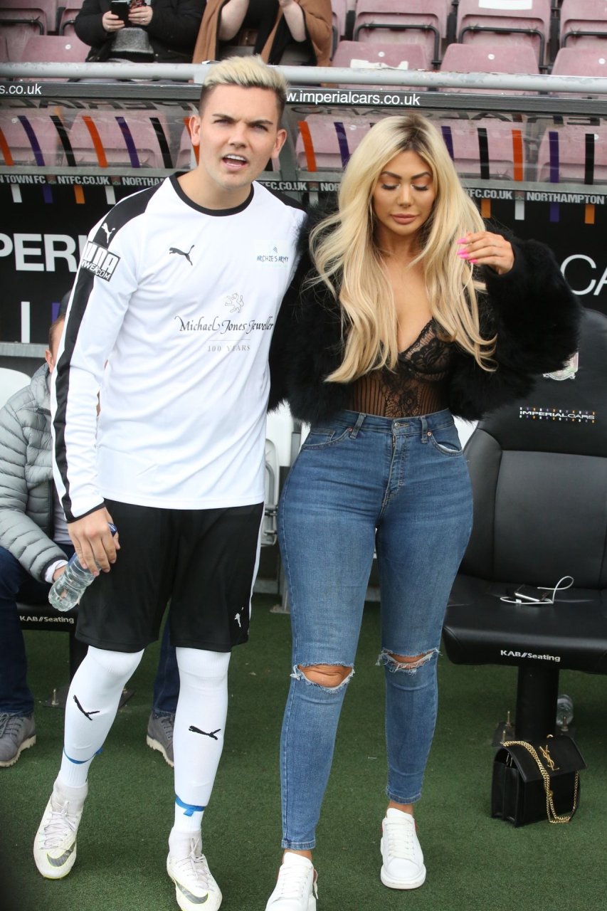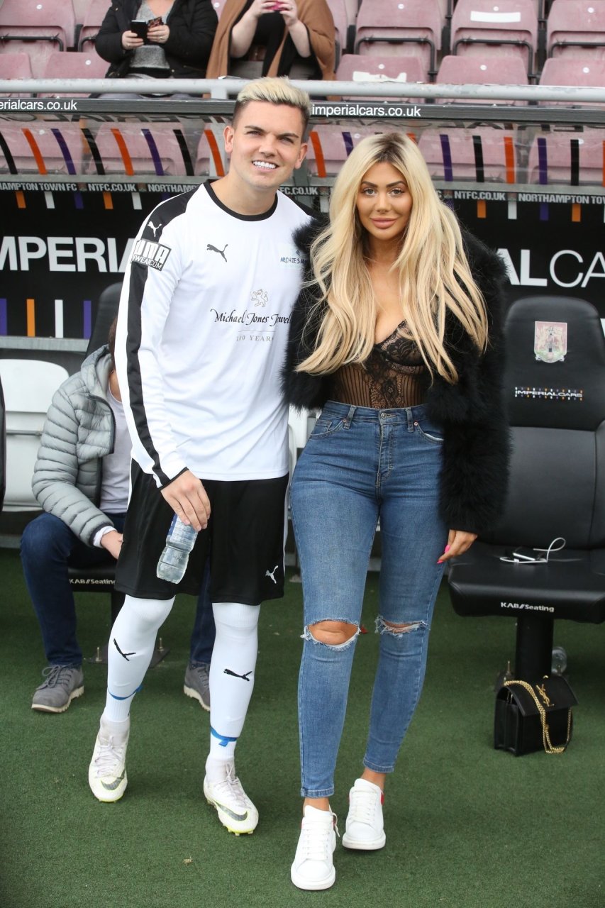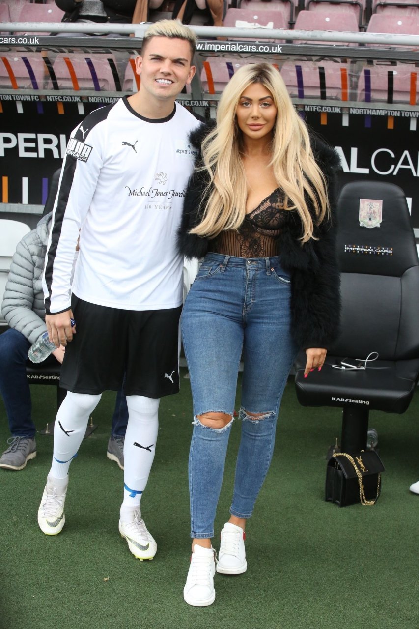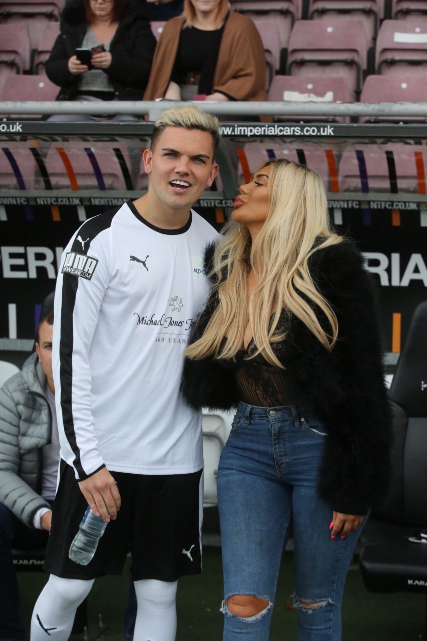 Chloe Ferry et Sam Gowland ont été vus lors du Celebrity Charity Football au Northampton Football Club, le 28/04/2019. Sam Gowland a marqué 3 buts et a participé à la séance de tirs au but après le match, marquant un but supplémentaire, ce qui fait de lui le meilleur buteur du match.
