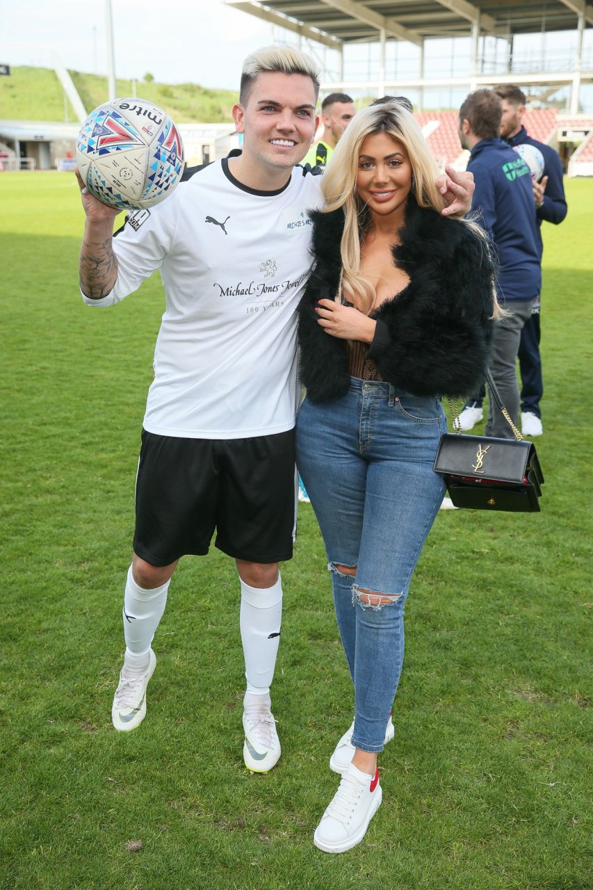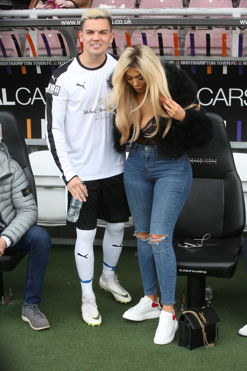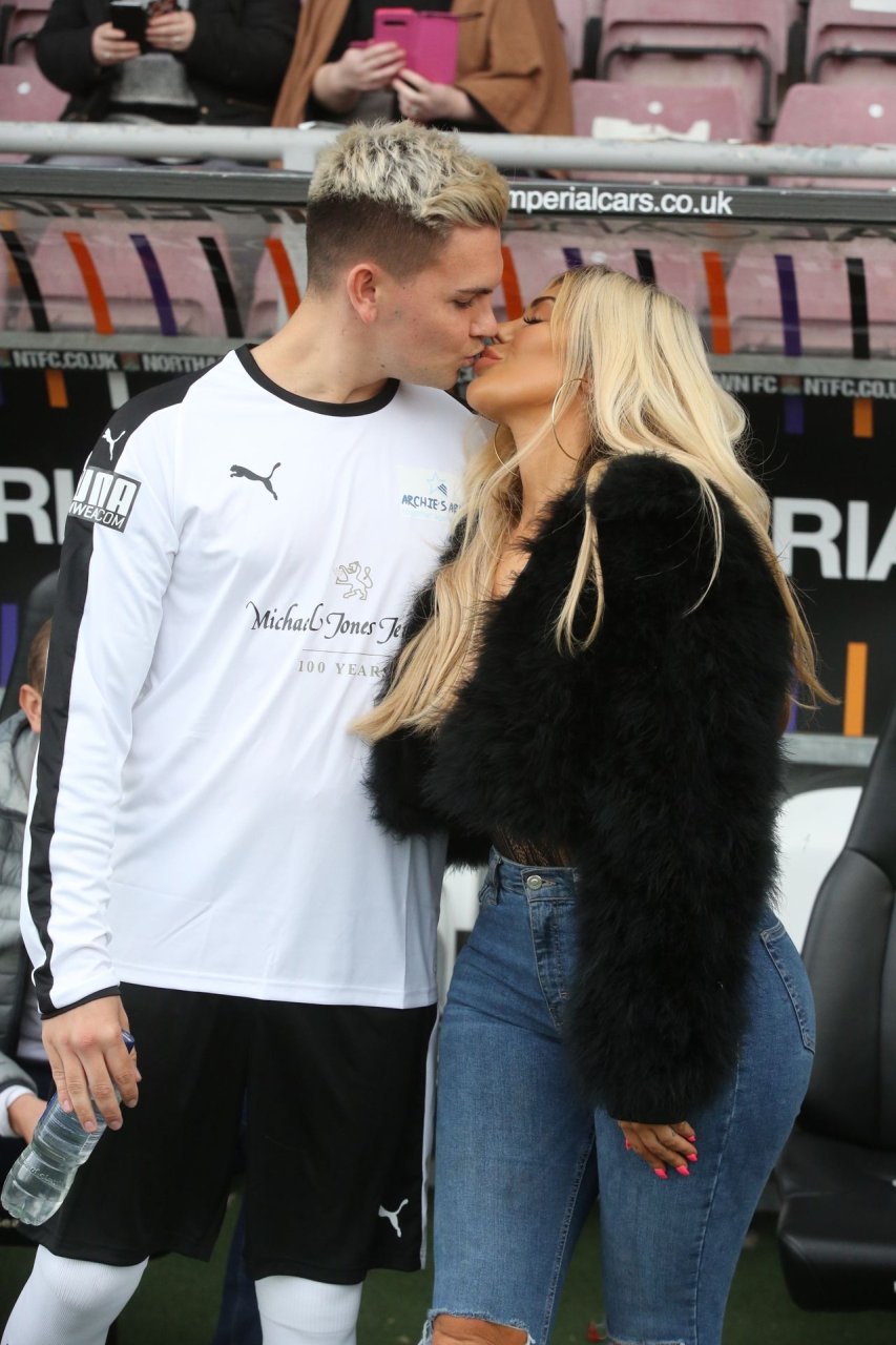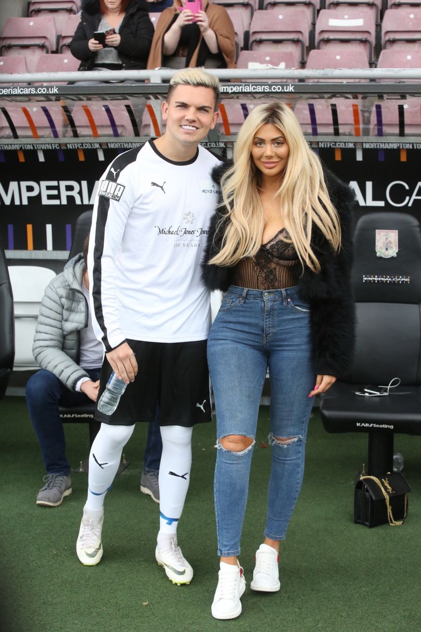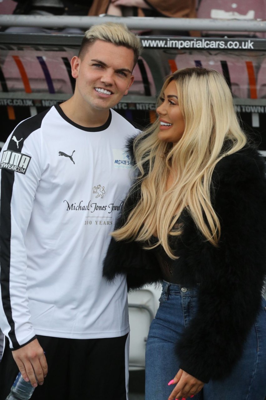 Chloe Ferry et Sam Gowland ont été vus lors du Celebrity Charity Football au Northampton Football Club, le 28/04/2019. Sam Gowland a marqué 3 buts et a participé à la séance de tirs au but après le match, marquant un but supplémentaire, ce qui fait de lui le meilleur buteur du match.