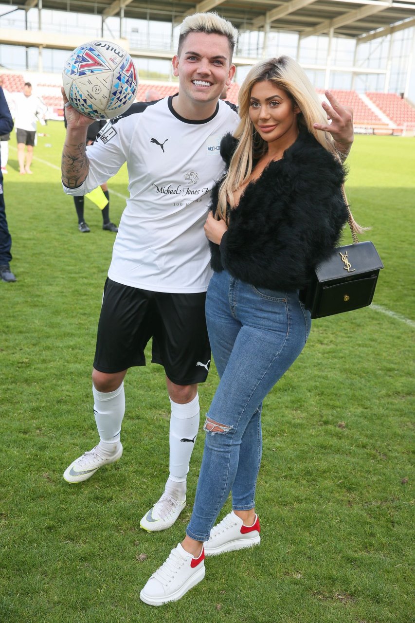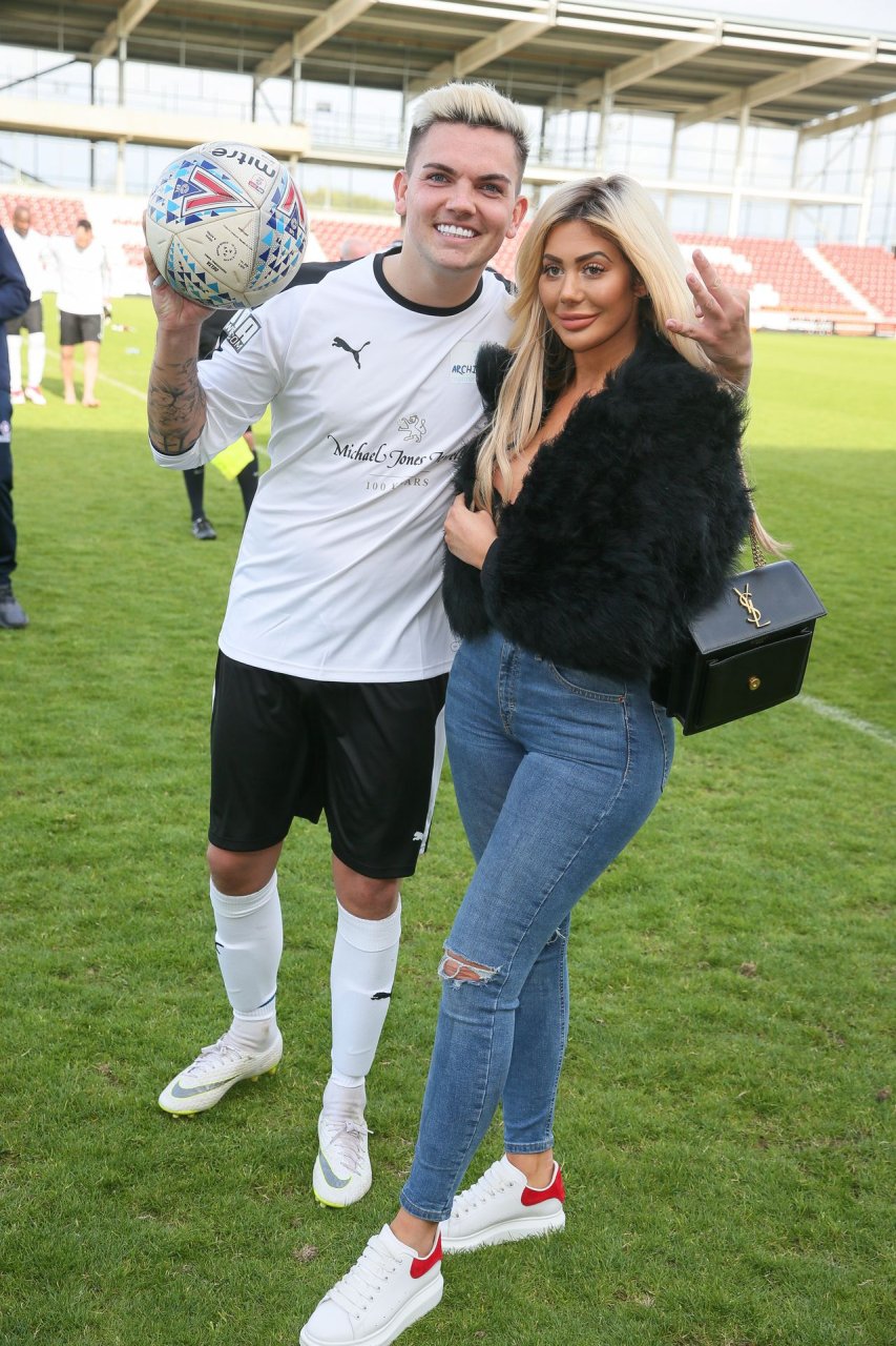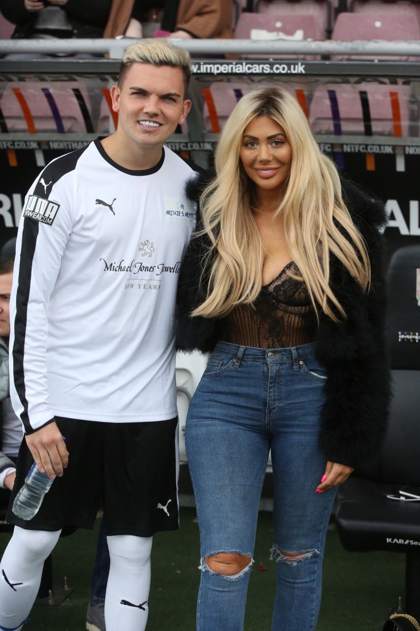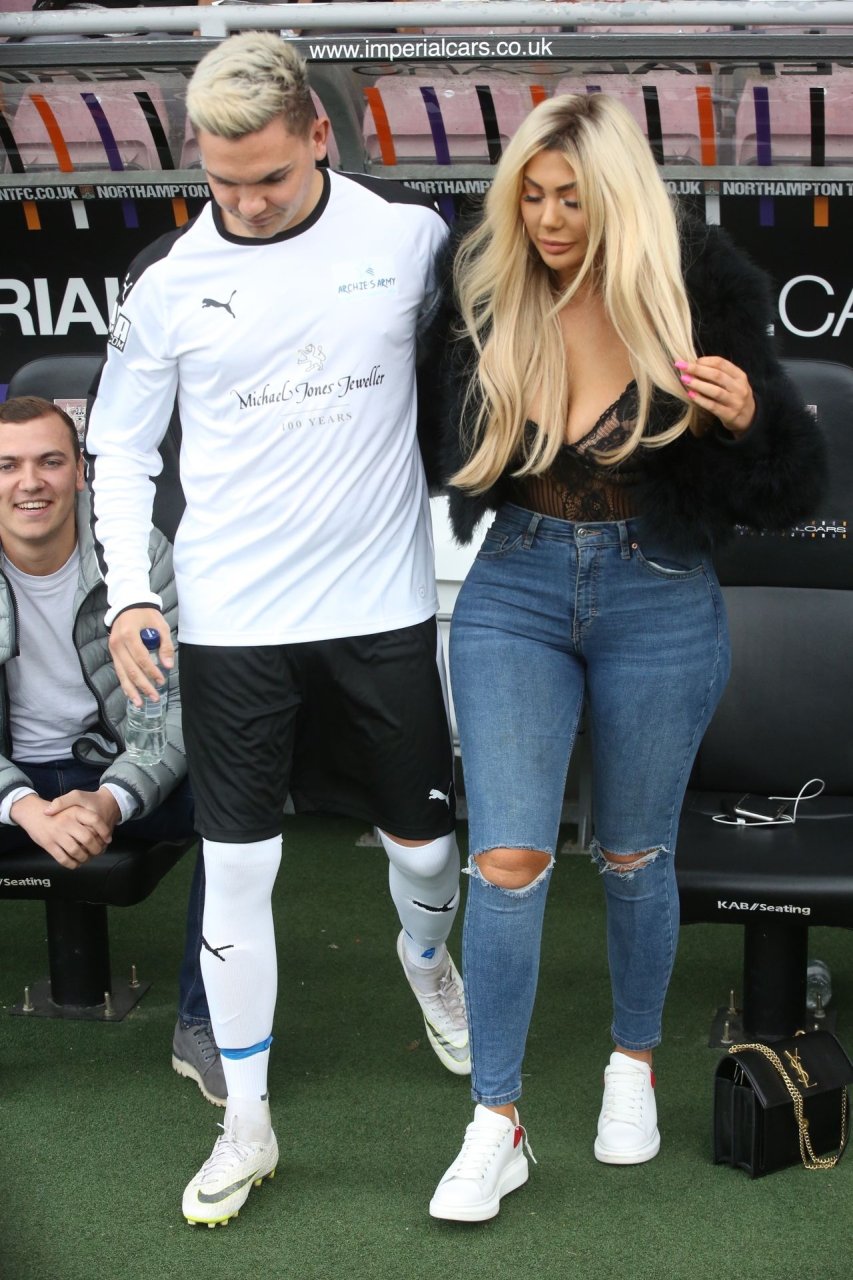 Chloe Ferry et Sam Gowland ont été vus lors du Celebrity Charity Football au Northampton Football Club, le 28/04/2019. Sam Gowland a marqué 3 buts et a participé à la séance de tirs au but après le match, marquant un but supplémentaire, ce qui fait de lui le meilleur buteur du match.
