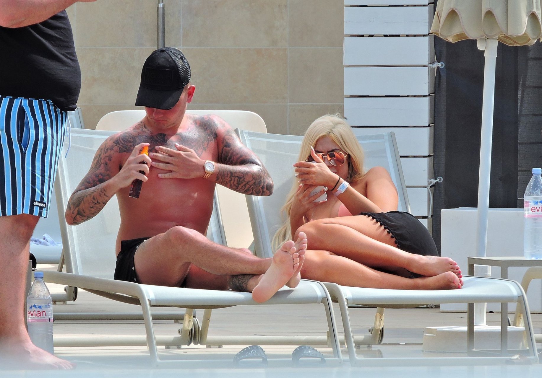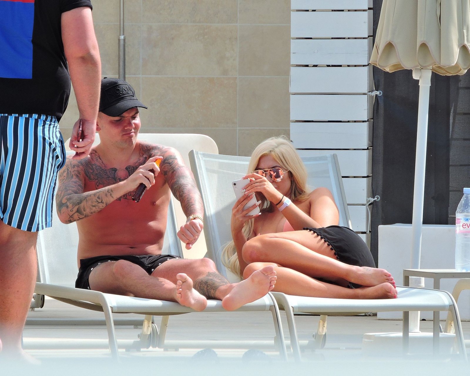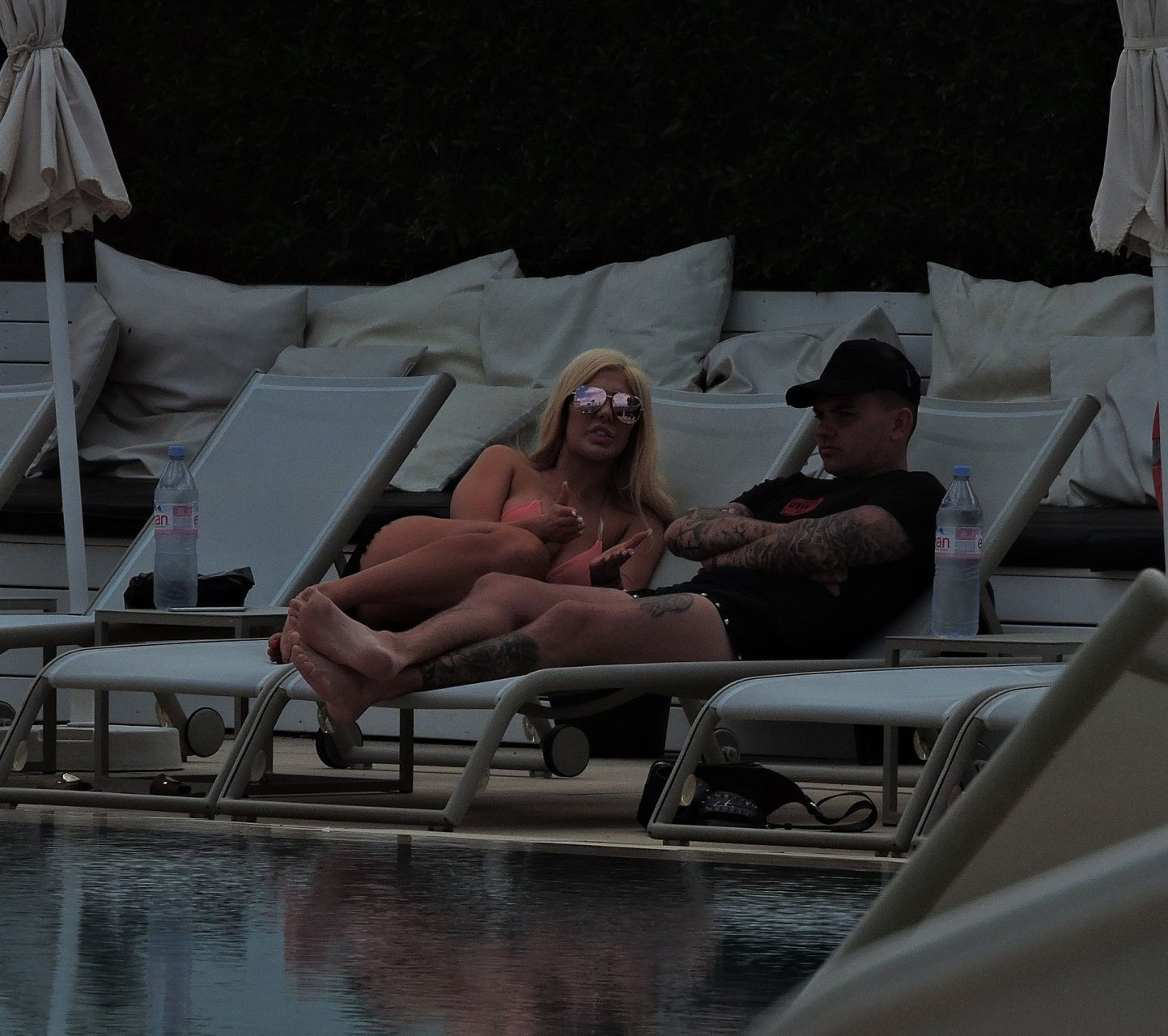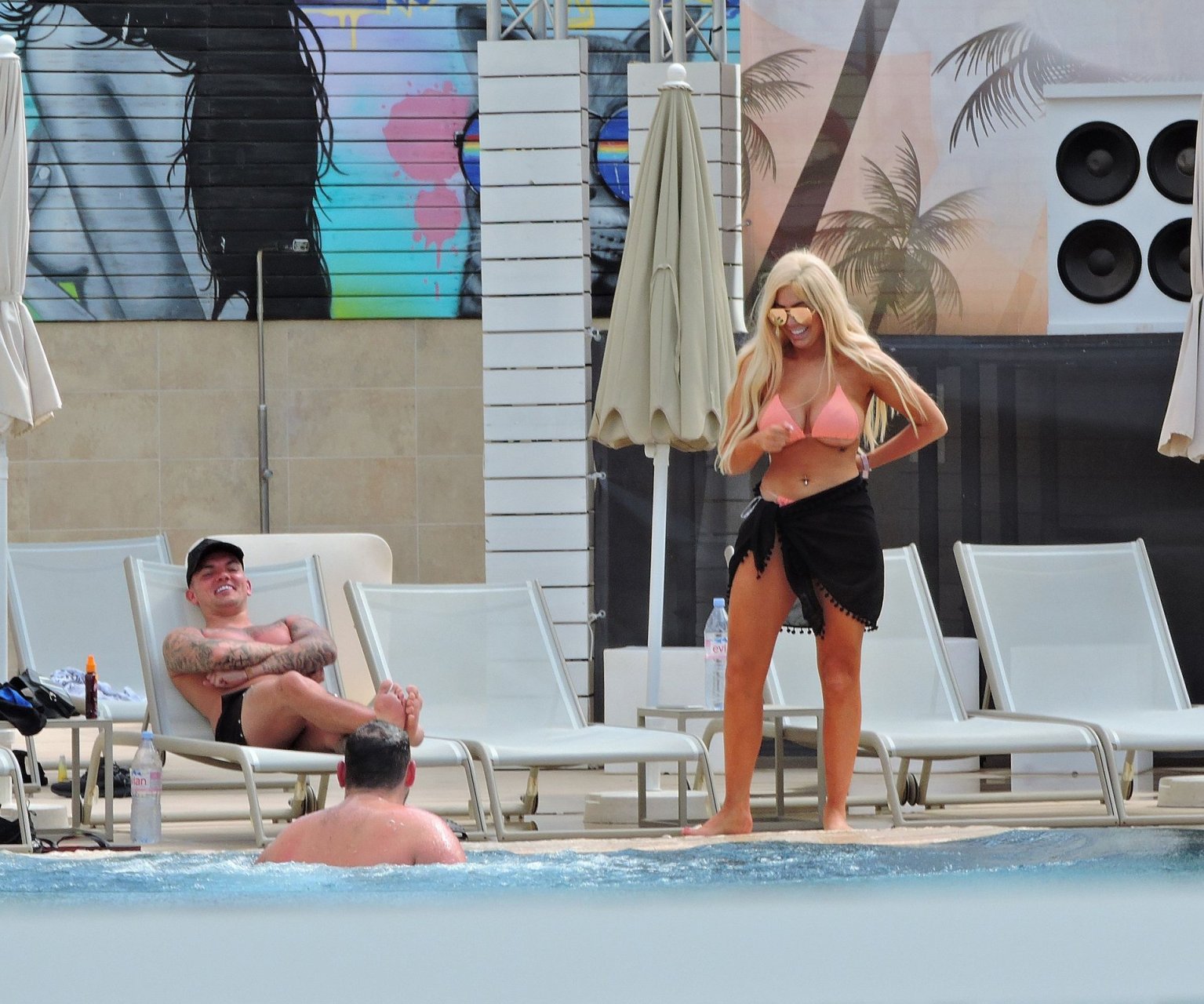 La star anglaise de la télé-réalité Chloe Ferry et son petit ami intermittent Sam Gowland sont vus en train de se détendre au bord de la piscine pendant leurs vacances ensemble à Magaluf, Majorque, 21/05/2019.