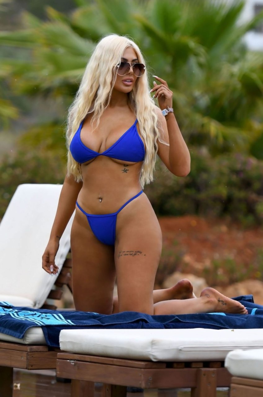 Chloe Ferry montre à son ex Sam Gowland ce qu’il manque en exhibant ses célèbres courbes, portant un bikini bleu pendant des vacances à Ibiza, 24/05/2019.