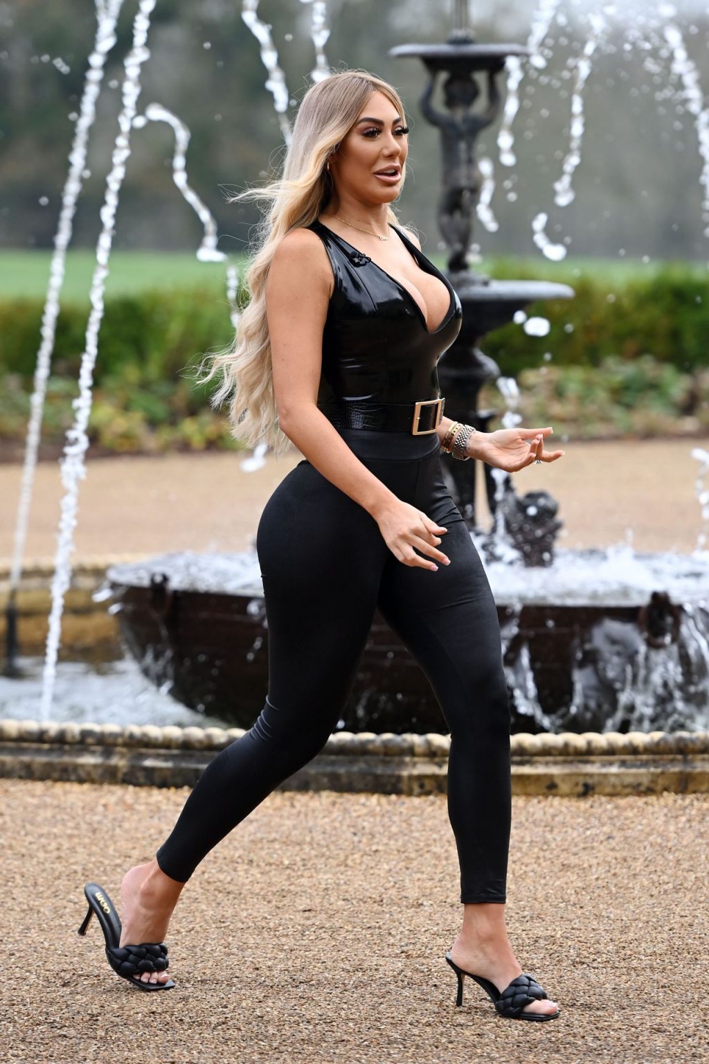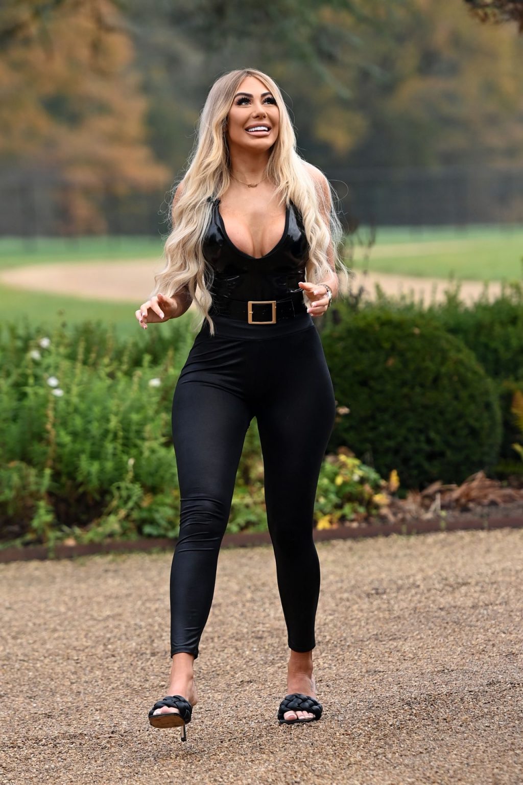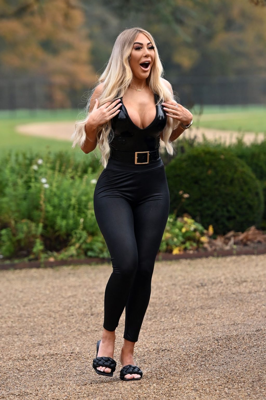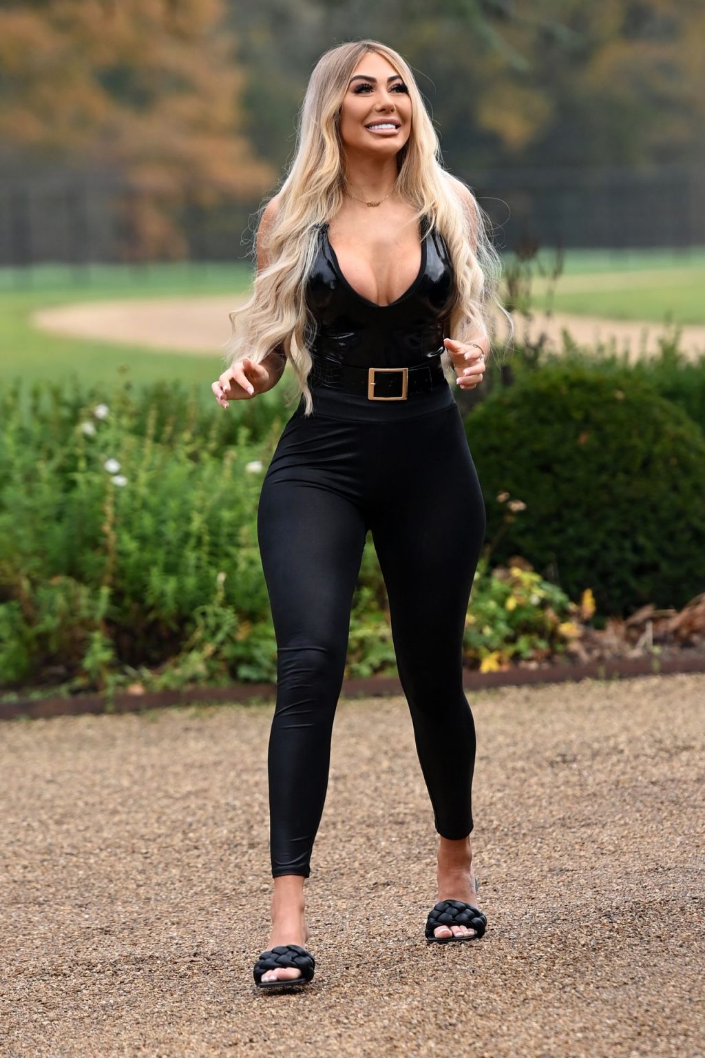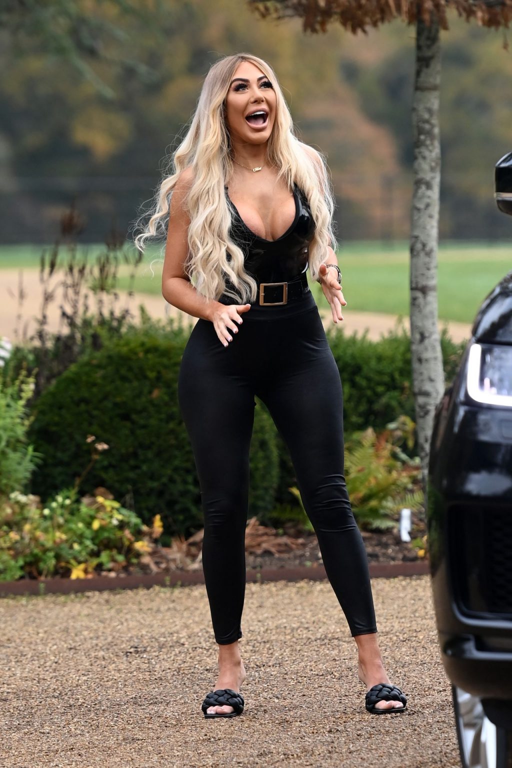 Chloe Ferry exhibe son décolleté lors du tournage de l’émission télévisée “Celebs Go Dating” dans le Sussex, 23/11/2020.