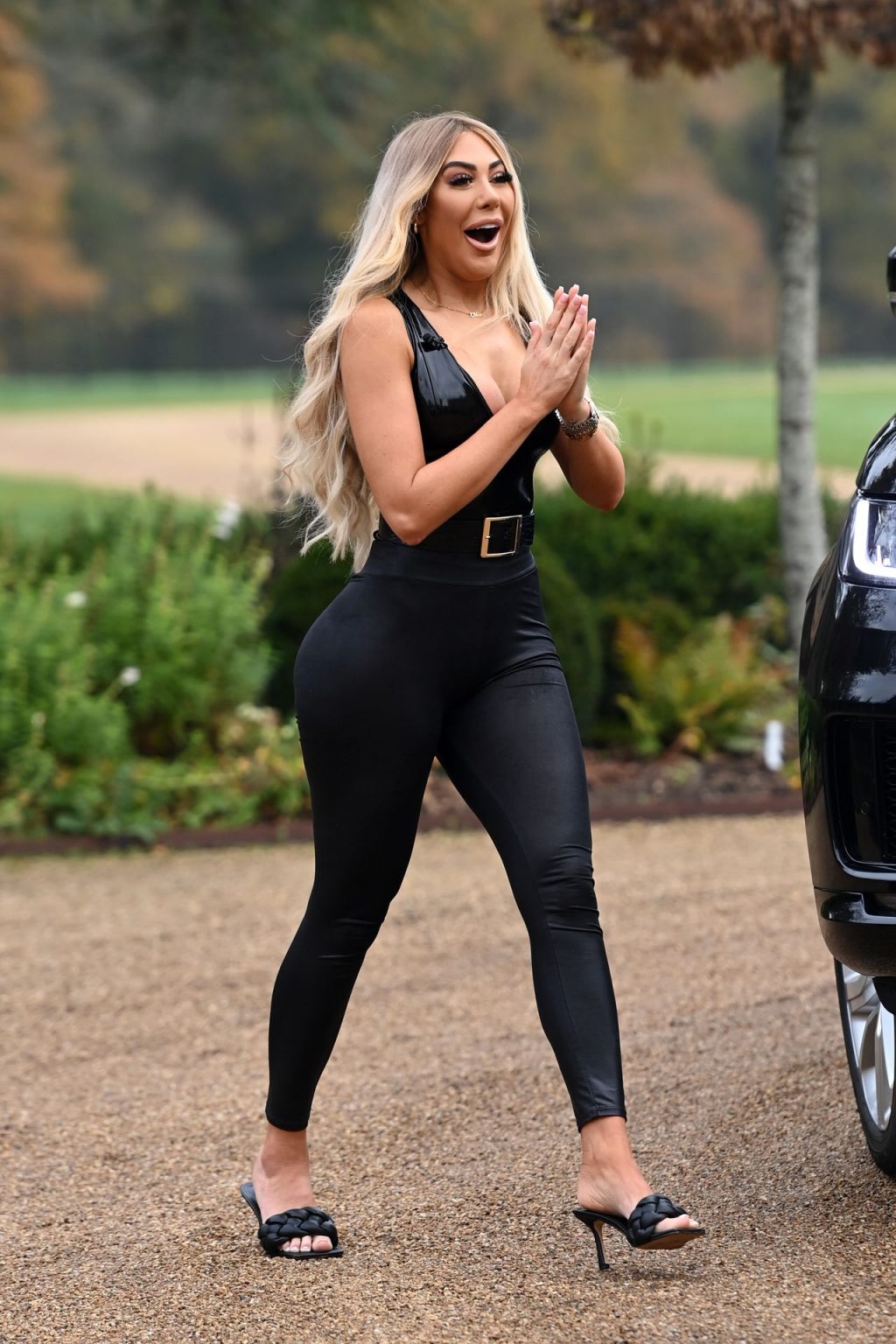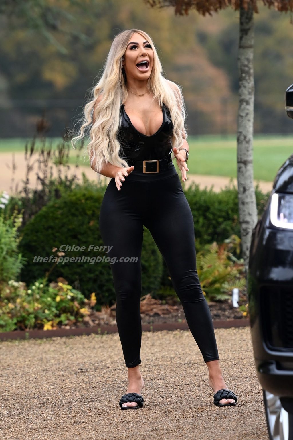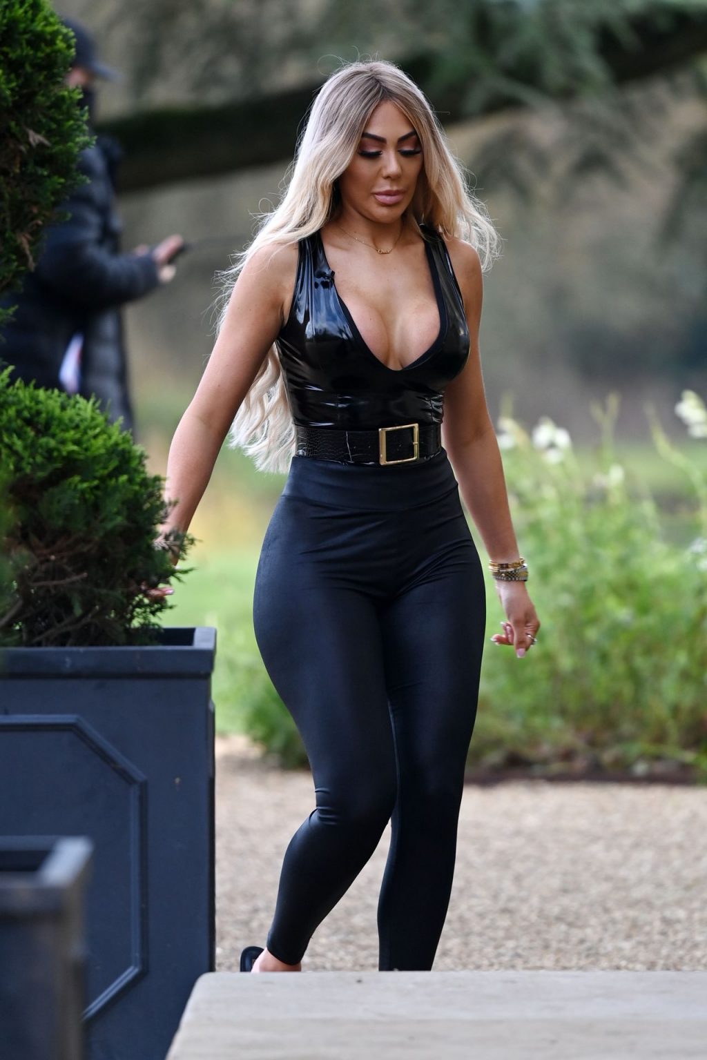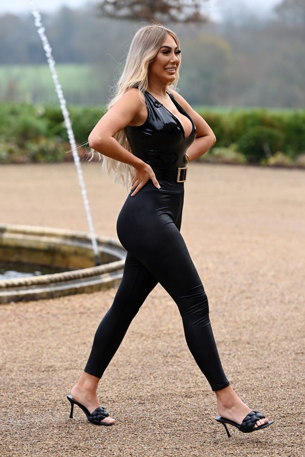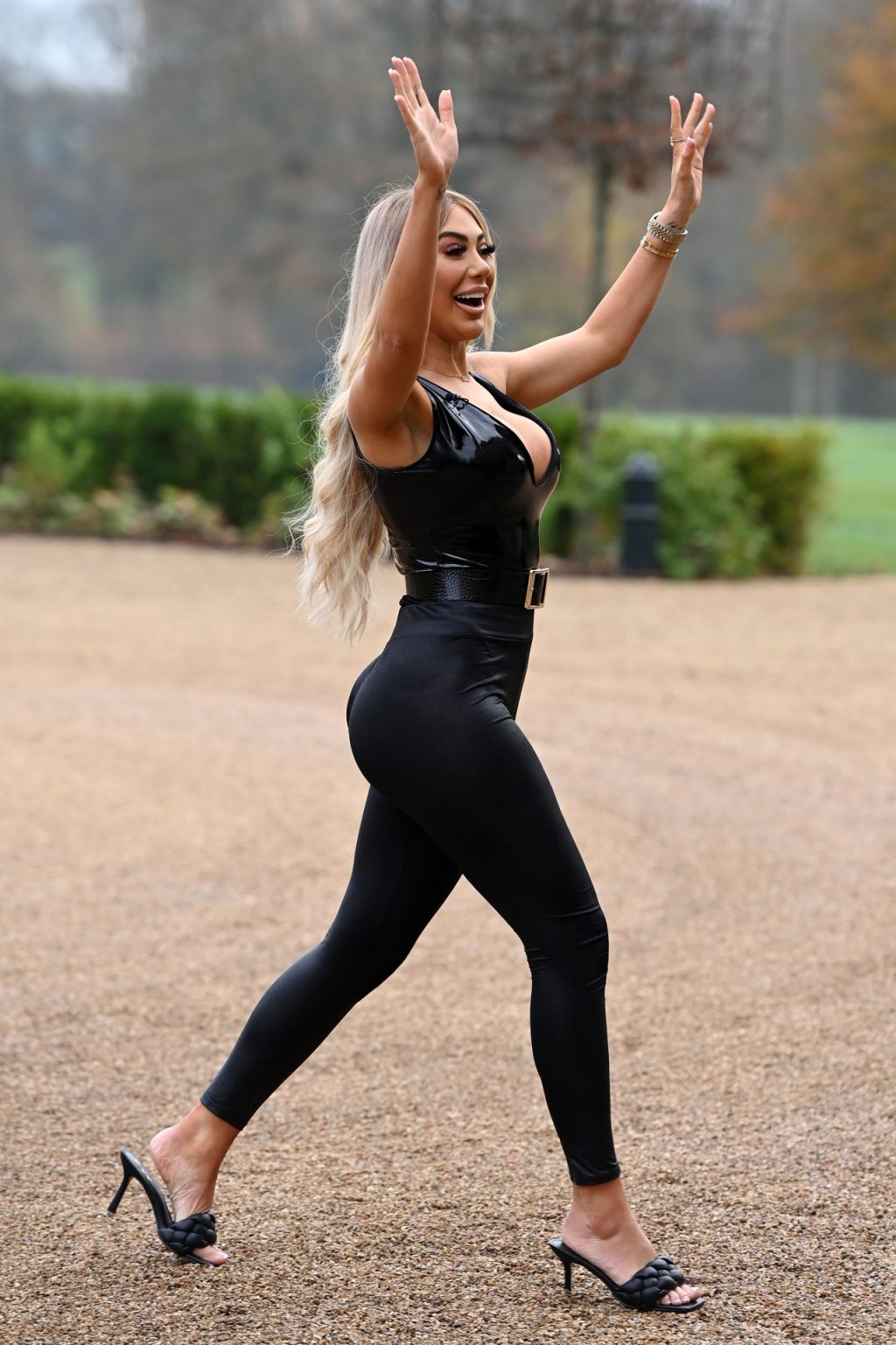 Chloe Ferry exhibe son décolleté lors du tournage de l’émission télévisée “Celebs Go Dating” dans le Sussex, 23/11/2020.