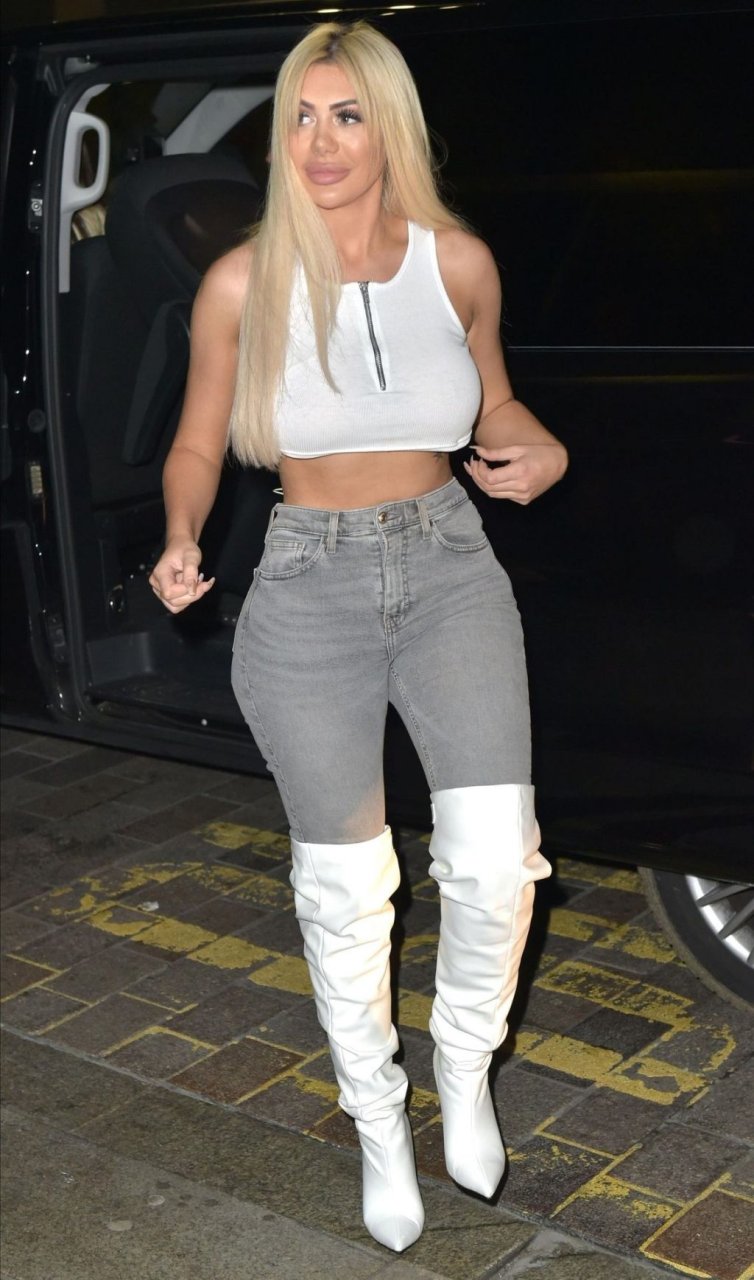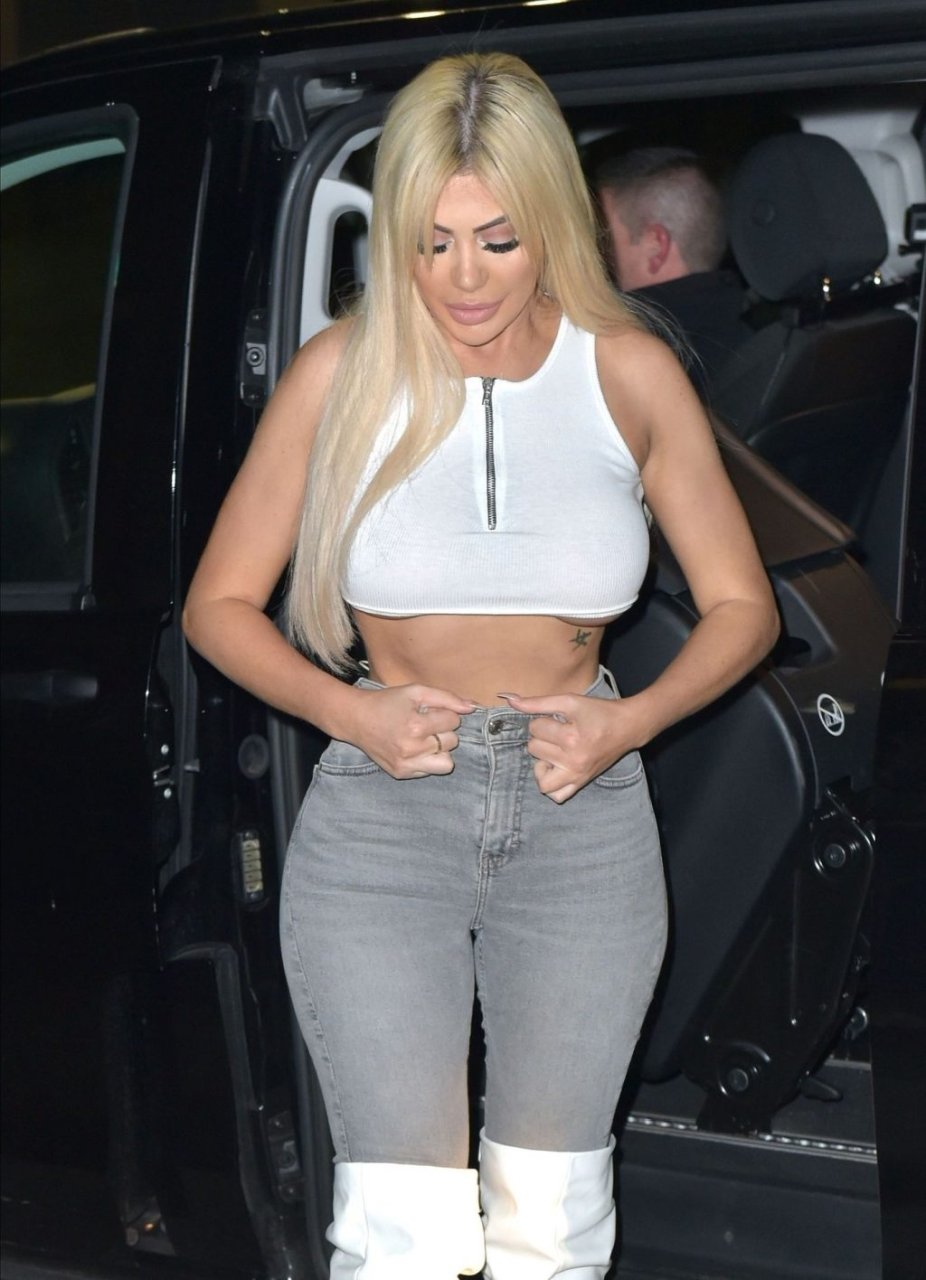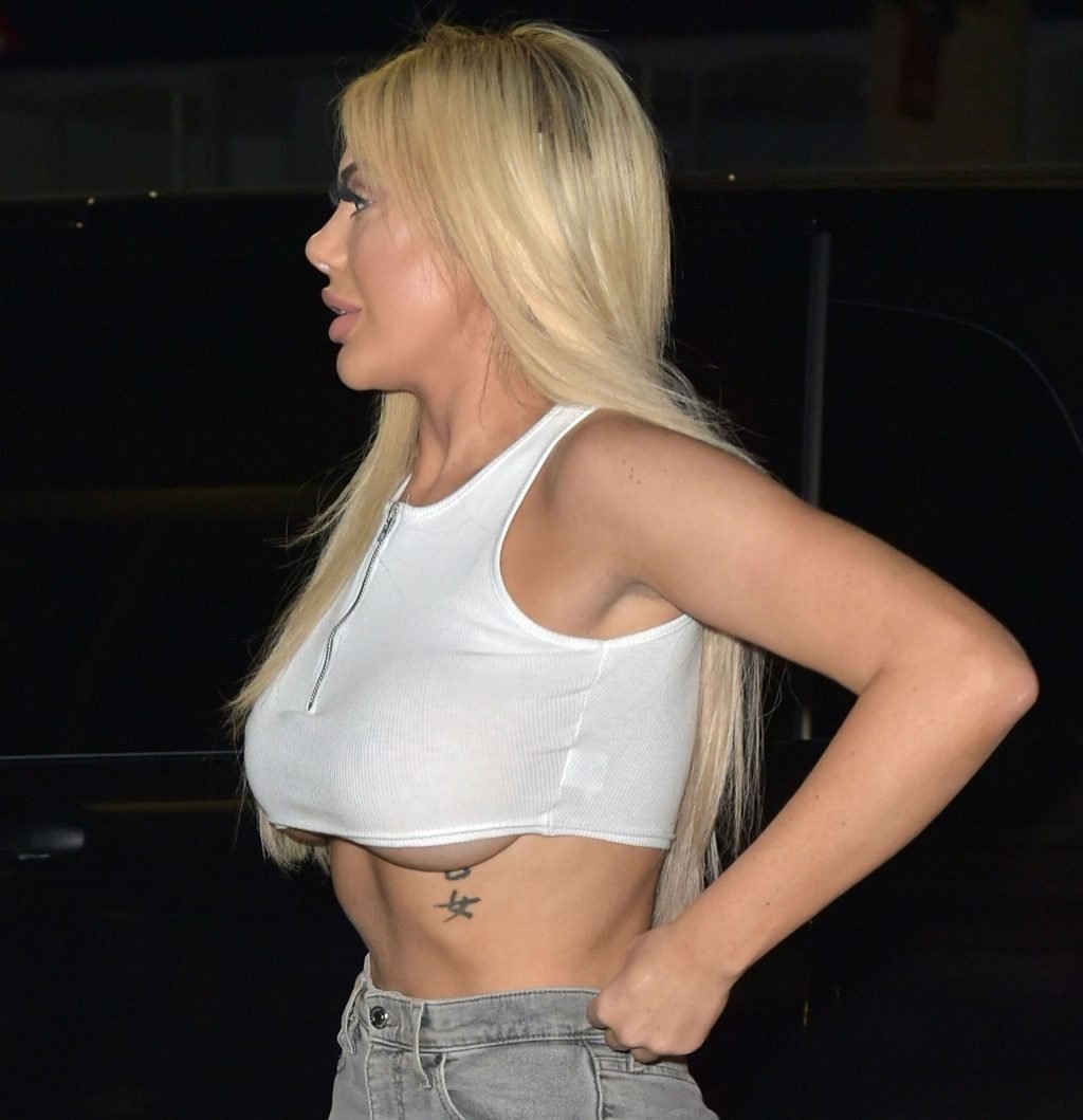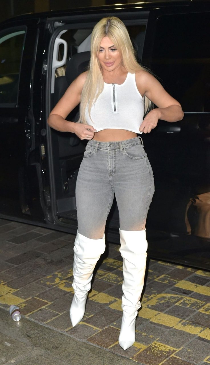 Chloe Ferry a exhibé un sérieux underboob montrant une cicatrice résultant d’une opération des seins dans un haut court blanc transparent lors d’une sortie avec le casting de “Geordie Shore.”
