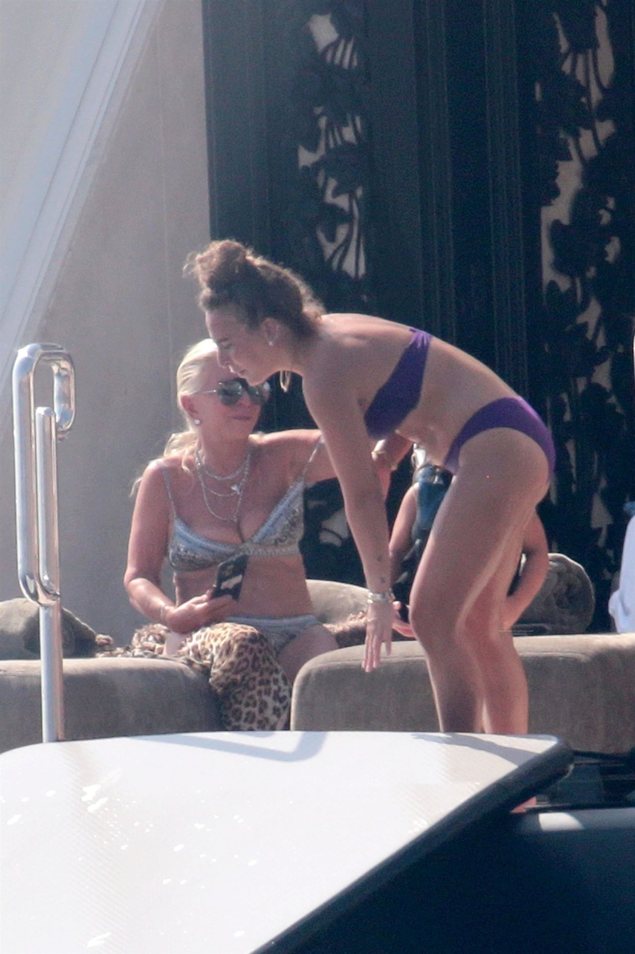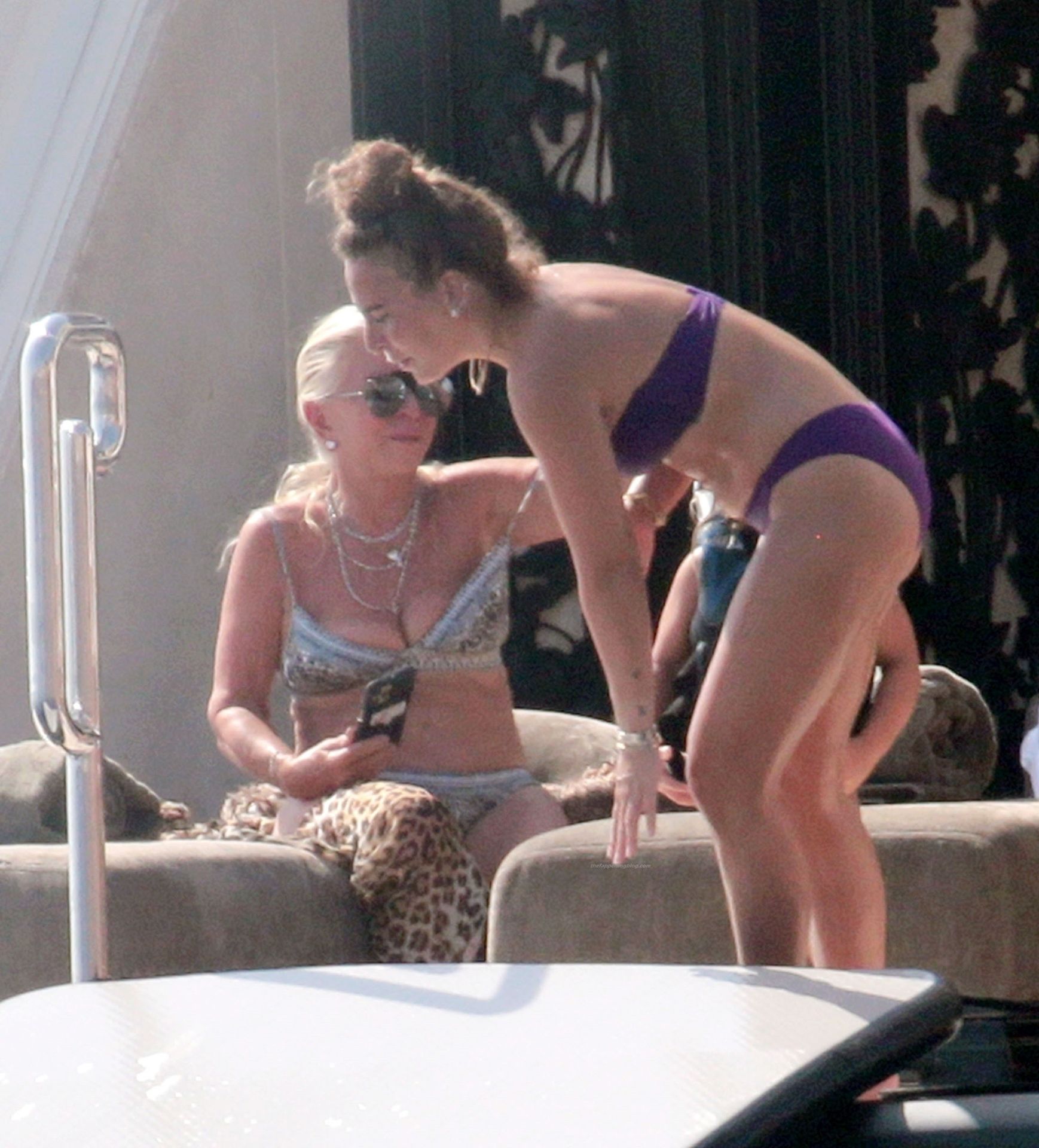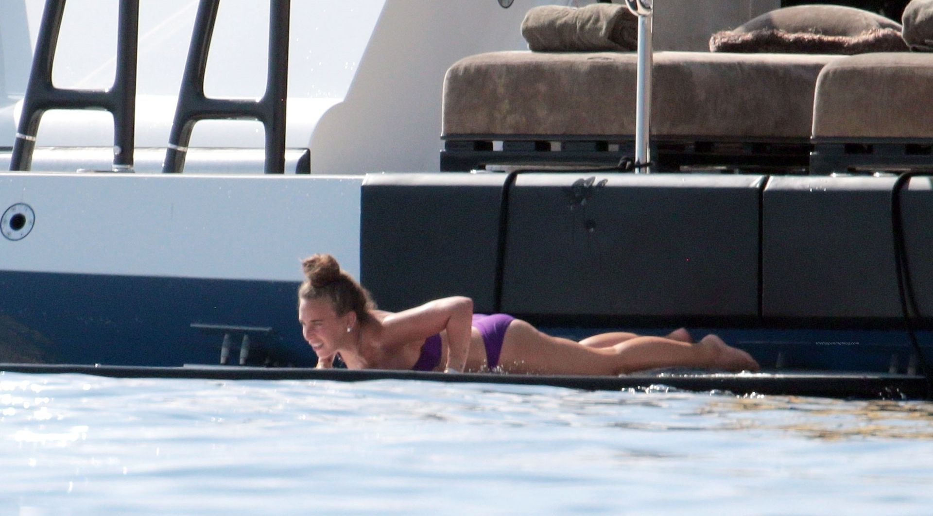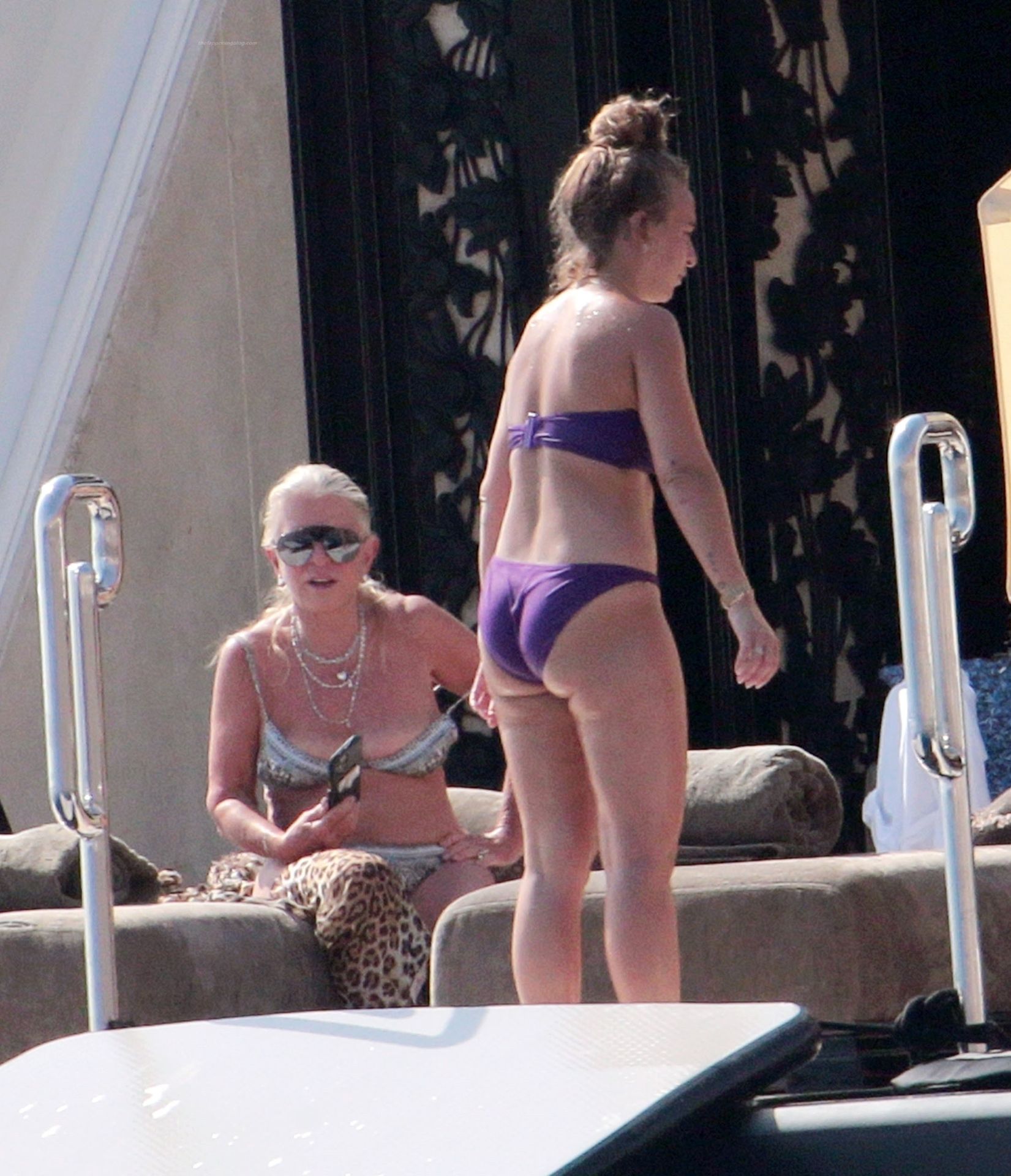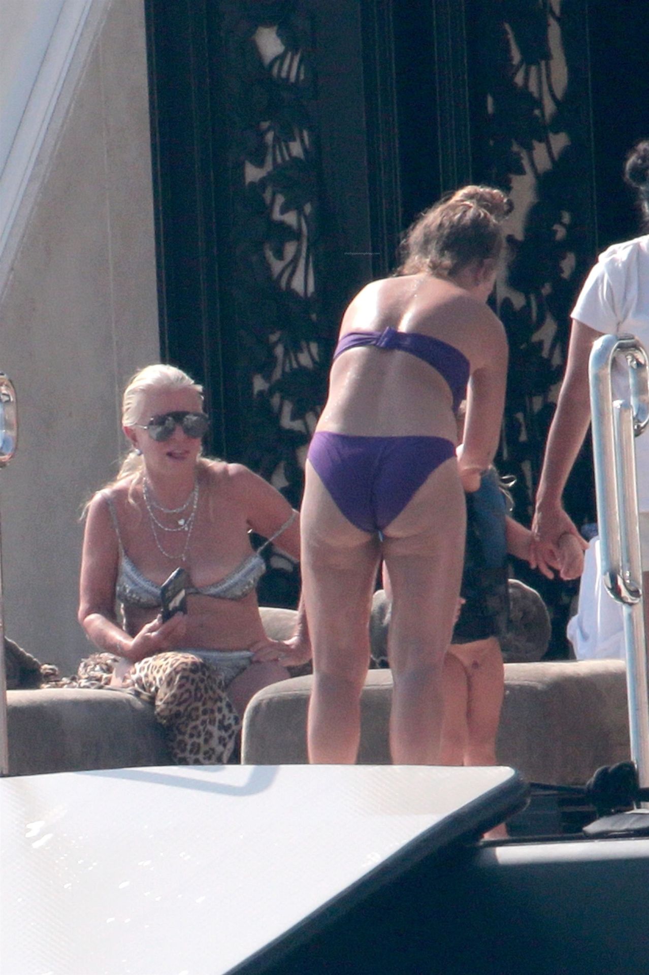 Chloe a été la première à essayer le toboggan, portant son bikini violet minimaliste, tandis que sa mère Tina prenait quelques photos de cet événement plein de sensations fortes avec son téléphone.