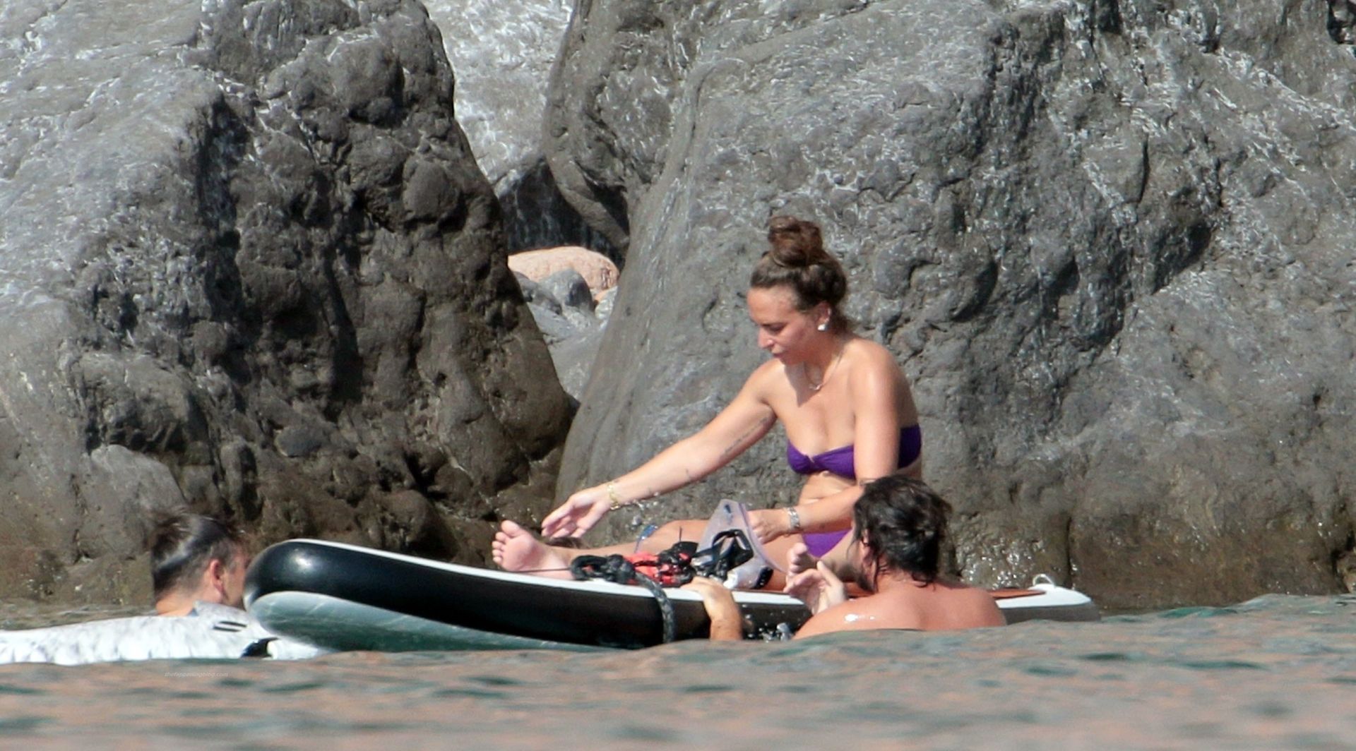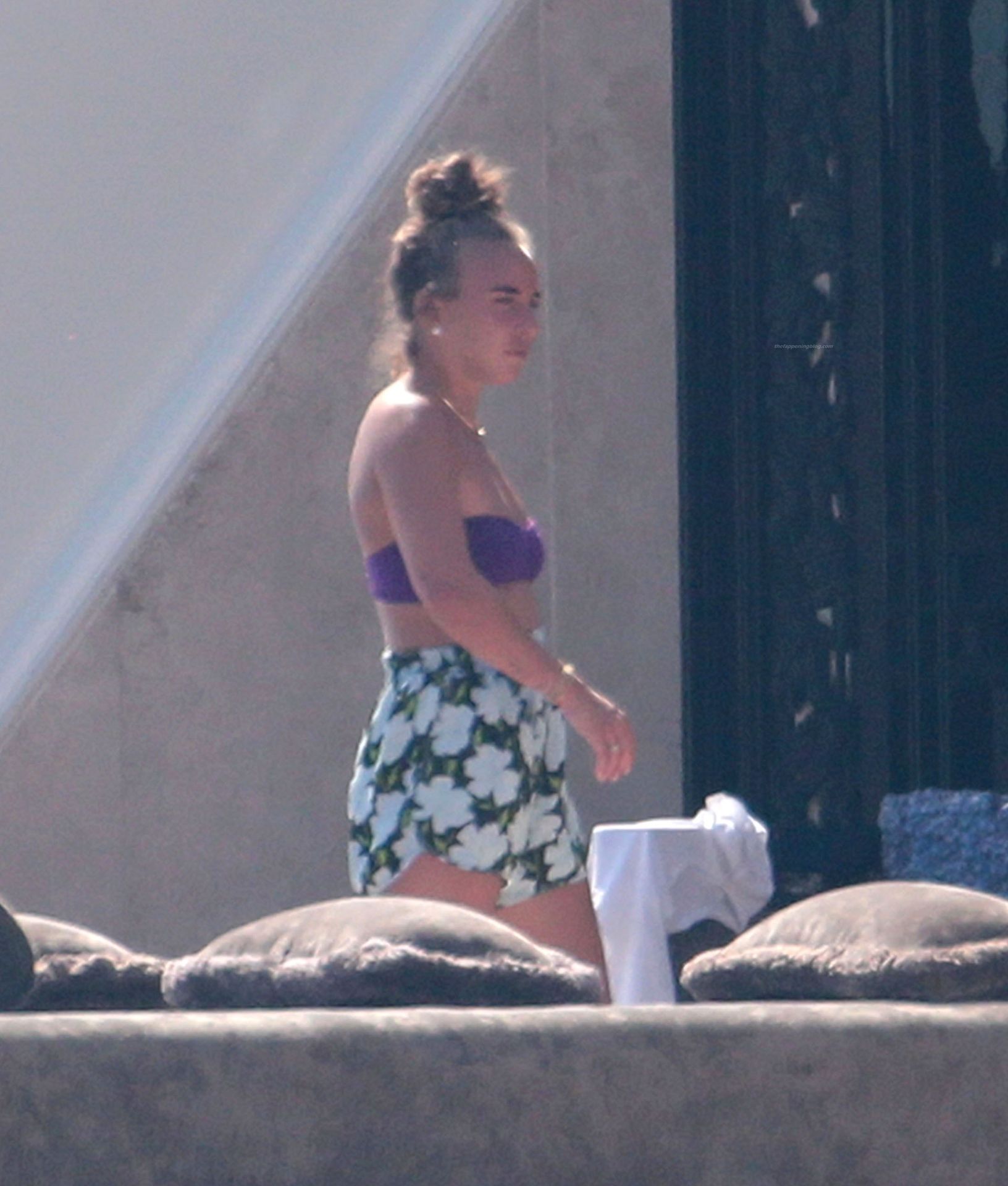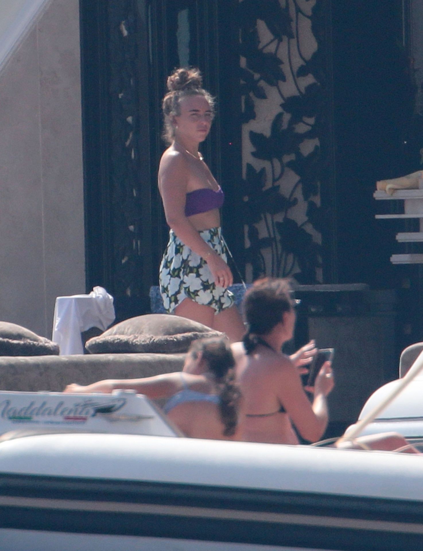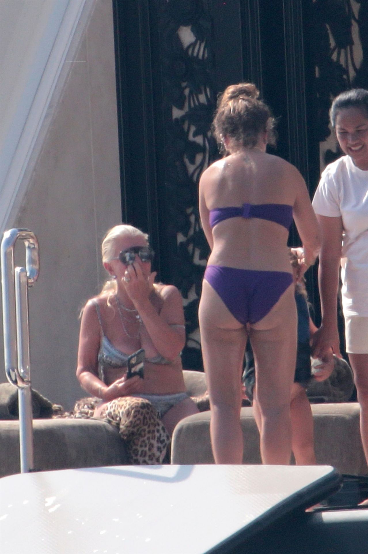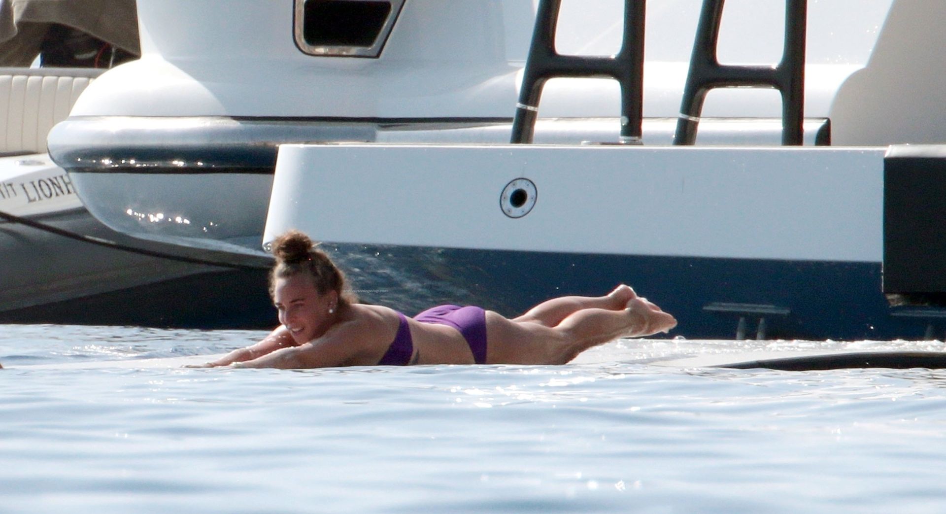 Chloe a été la première à essayer le toboggan, portant son bikini violet minimaliste, tandis que sa mère Tina prenait quelques photos de cet événement plein de sensations fortes avec son téléphone.