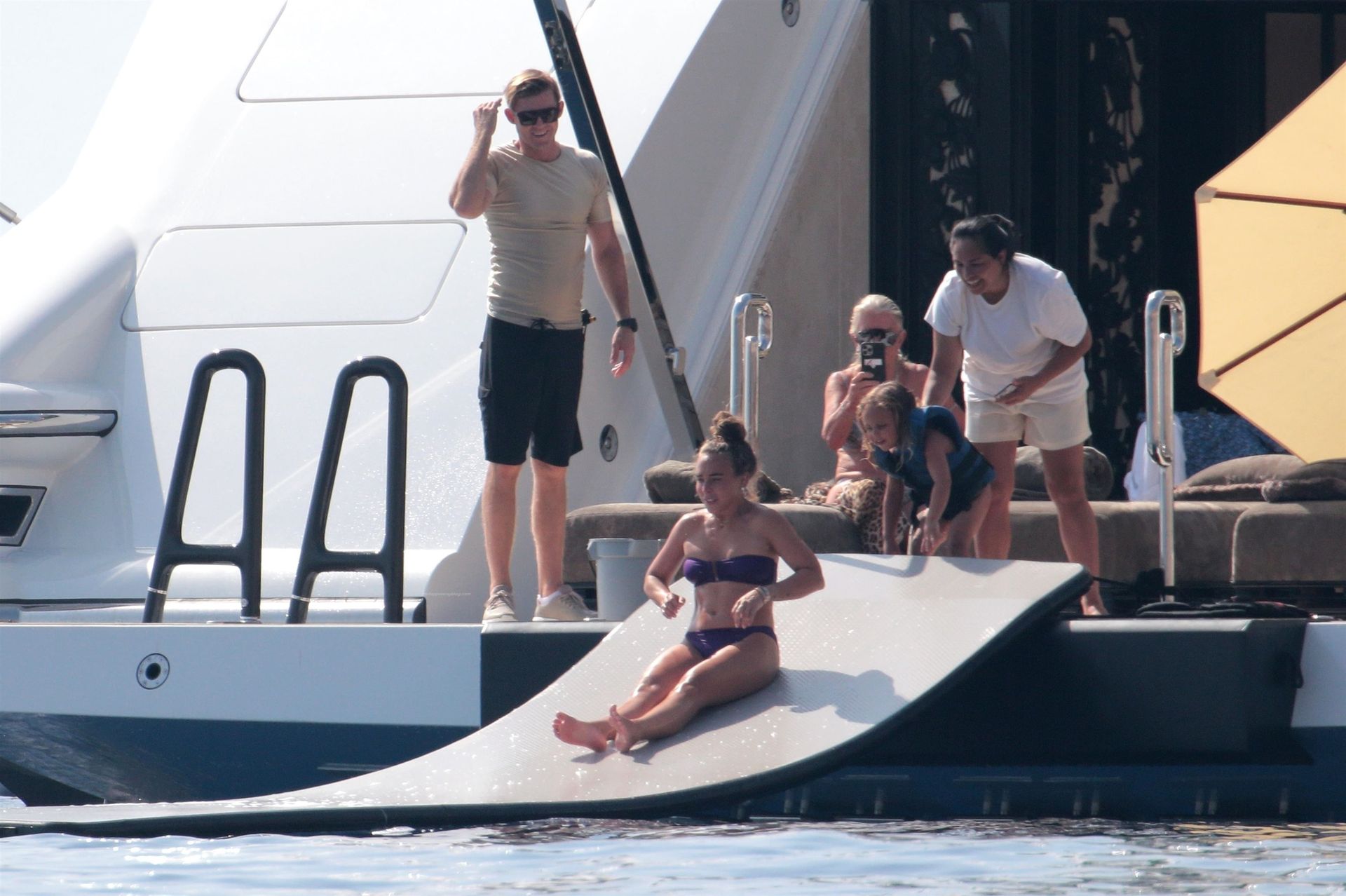Sir Philip, accompagné de sa femme Tina et de sa fille Chloe, ont été aperçus sur le yacht élégant et luxueux de 63 mètres de Sir Philip, le « Lionheart », et on pourrait penser qu’après avoir dépensé 150 millions de dollars pour ce navire, Chloe et sa famille n’auraient pas eu besoin d’installer un toboggan improvisé, utilisant du Fairy Liquid pour lui donner un peu plus de glissance !