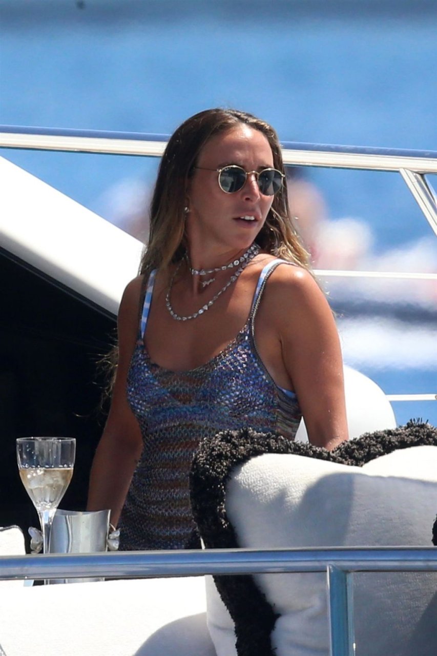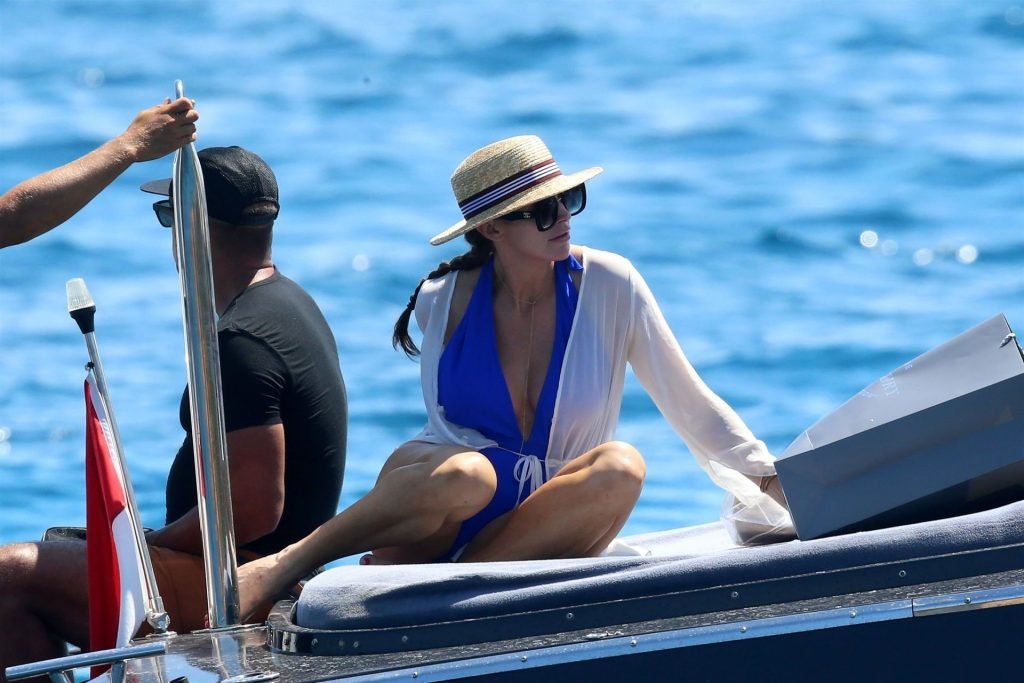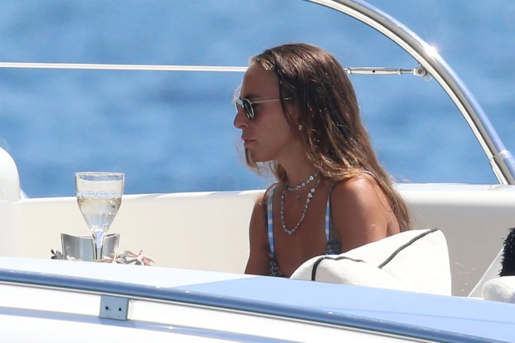 Chloe Green, à bord de son yacht Lionchase amarré en Sardaigne, Italie, attendant un groupe d’amis venus la chercher en bateau, 08/09/2019.