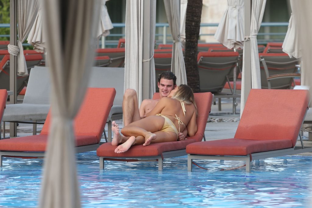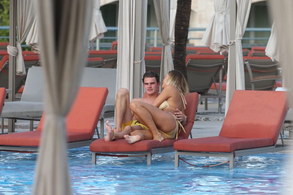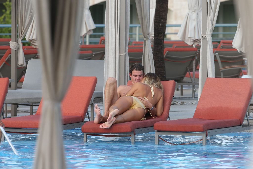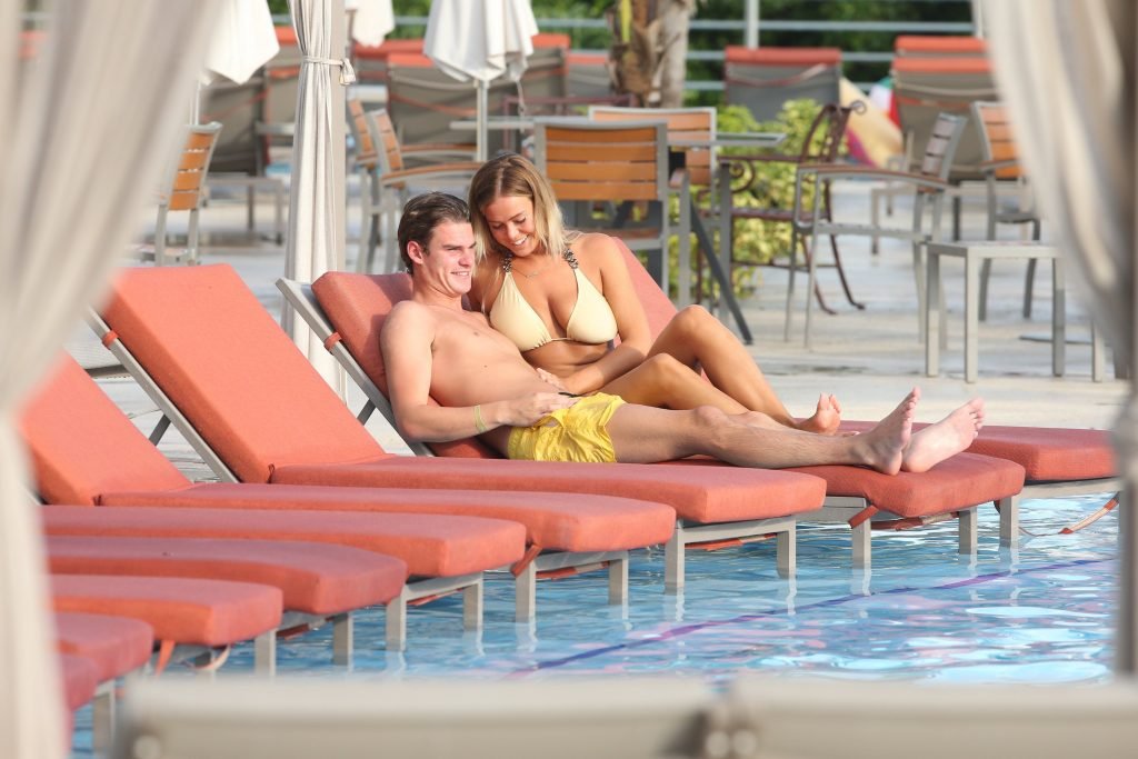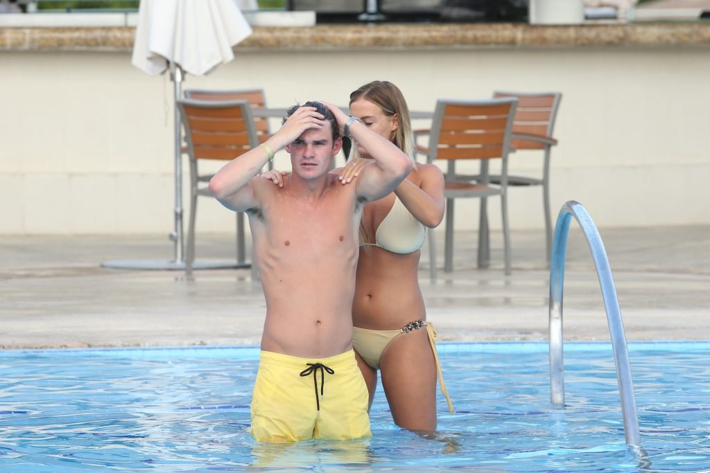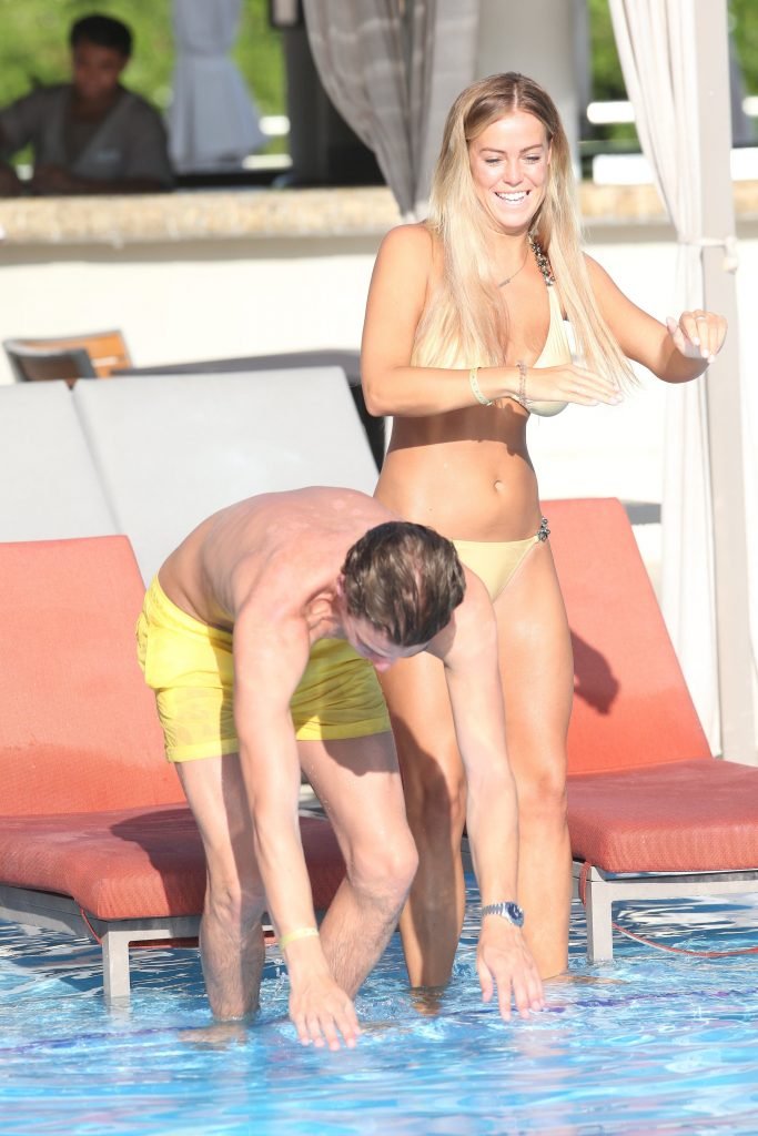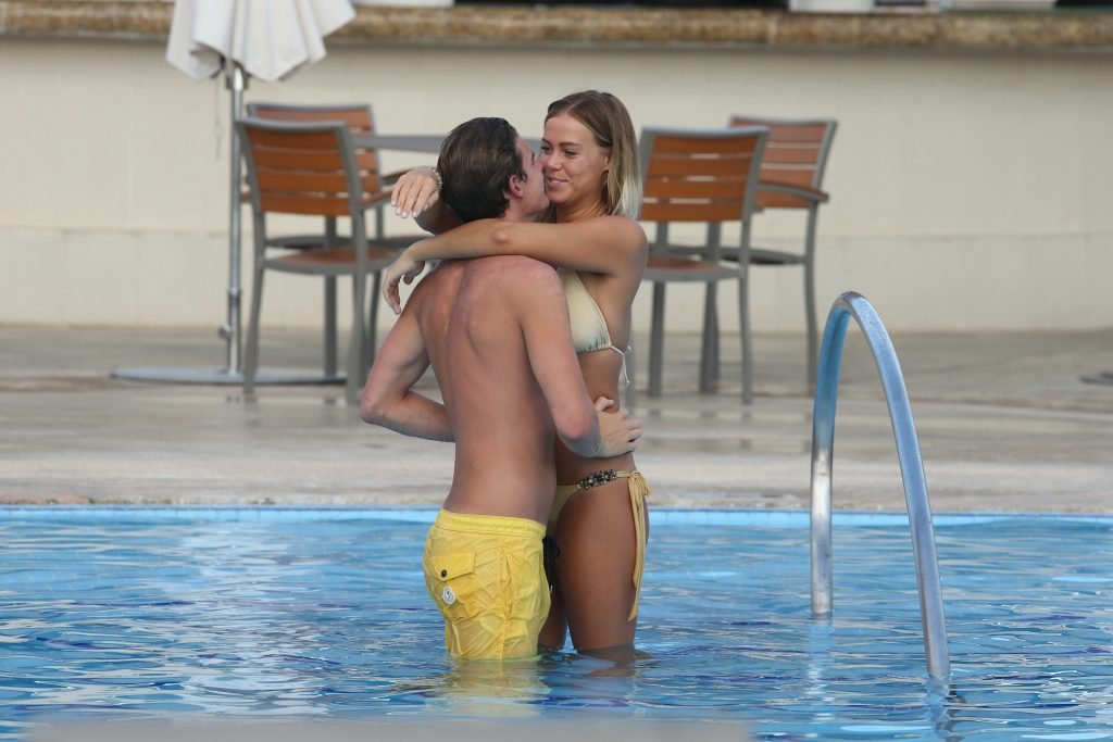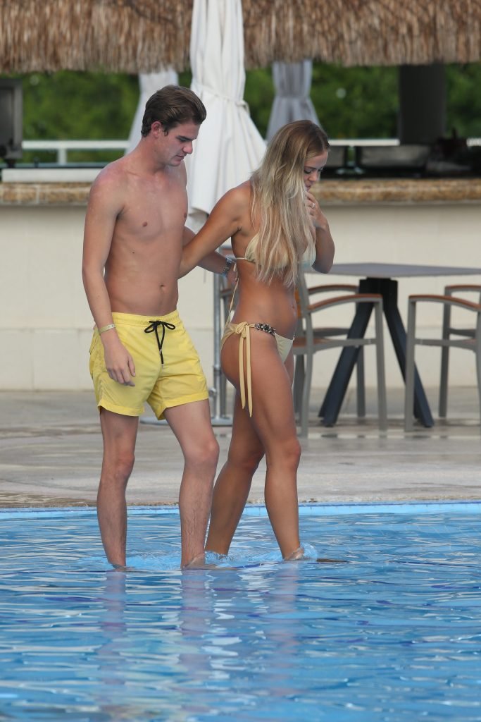 Chloe Meadows est vue portant un bikini crème pendant des vacances avec son petit ami Taylor Barnett au Mexique, le 26/10/2017. Chloe Meadows est une star de la télé-réalité (The Only Way Is Essex). Née en – France. Âge : 25 ans.