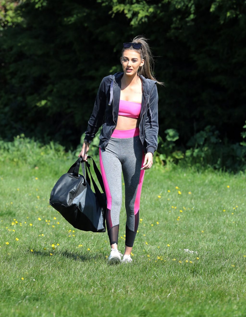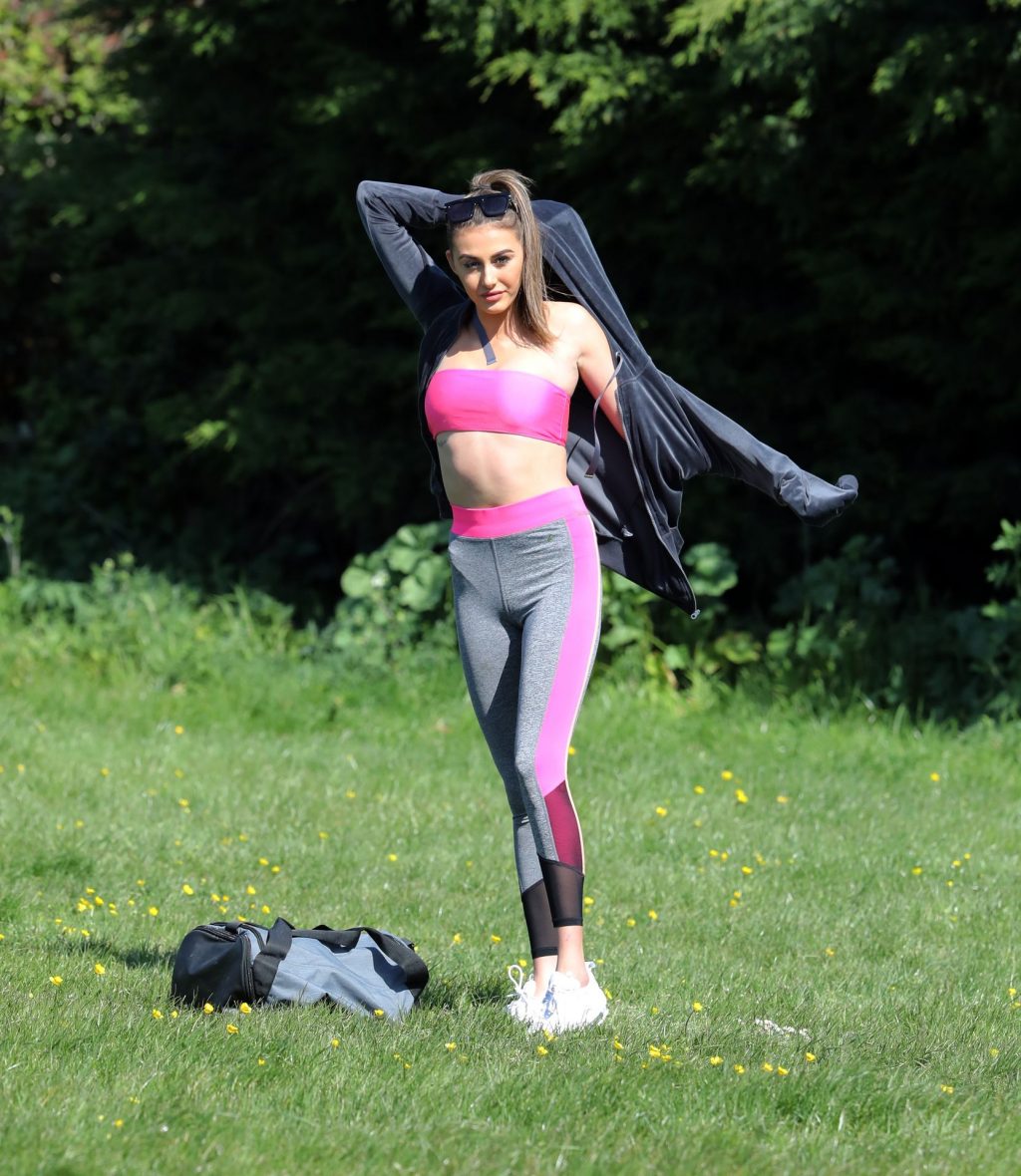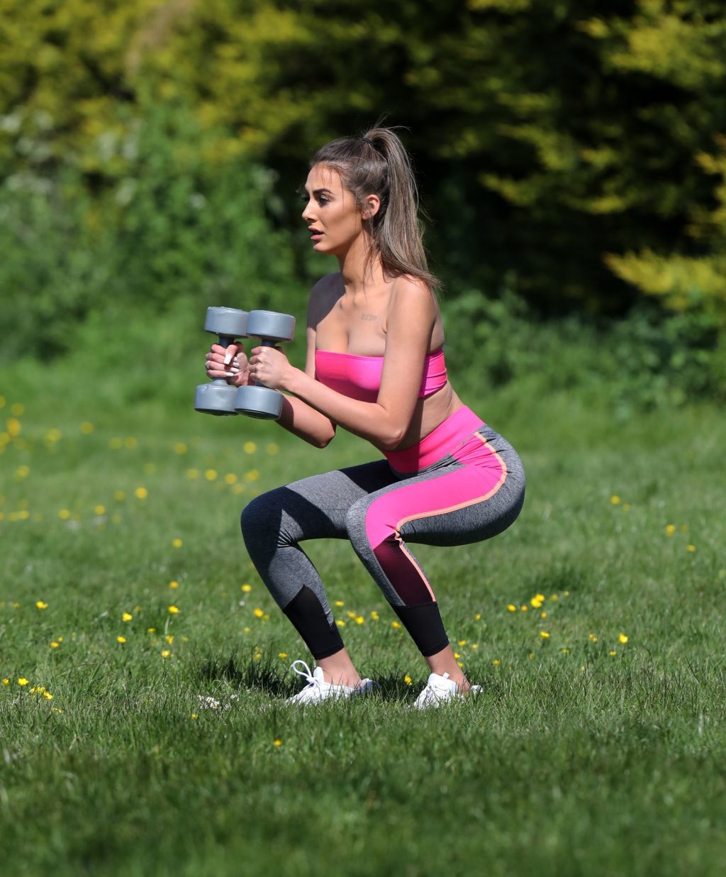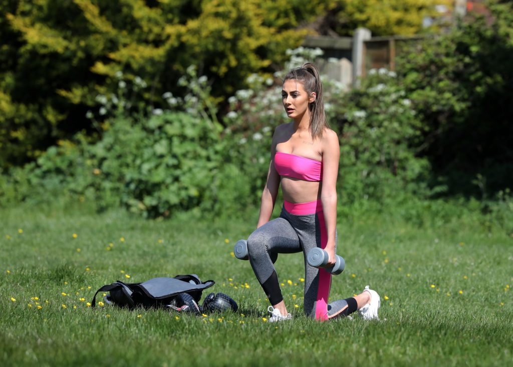 Chloe, qui était une favorite des fans dans l’émission, a profité du soleil britannique pour faire son entraînement quotidien en plein air.