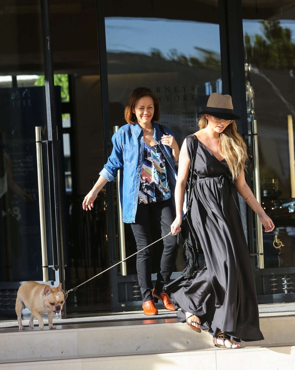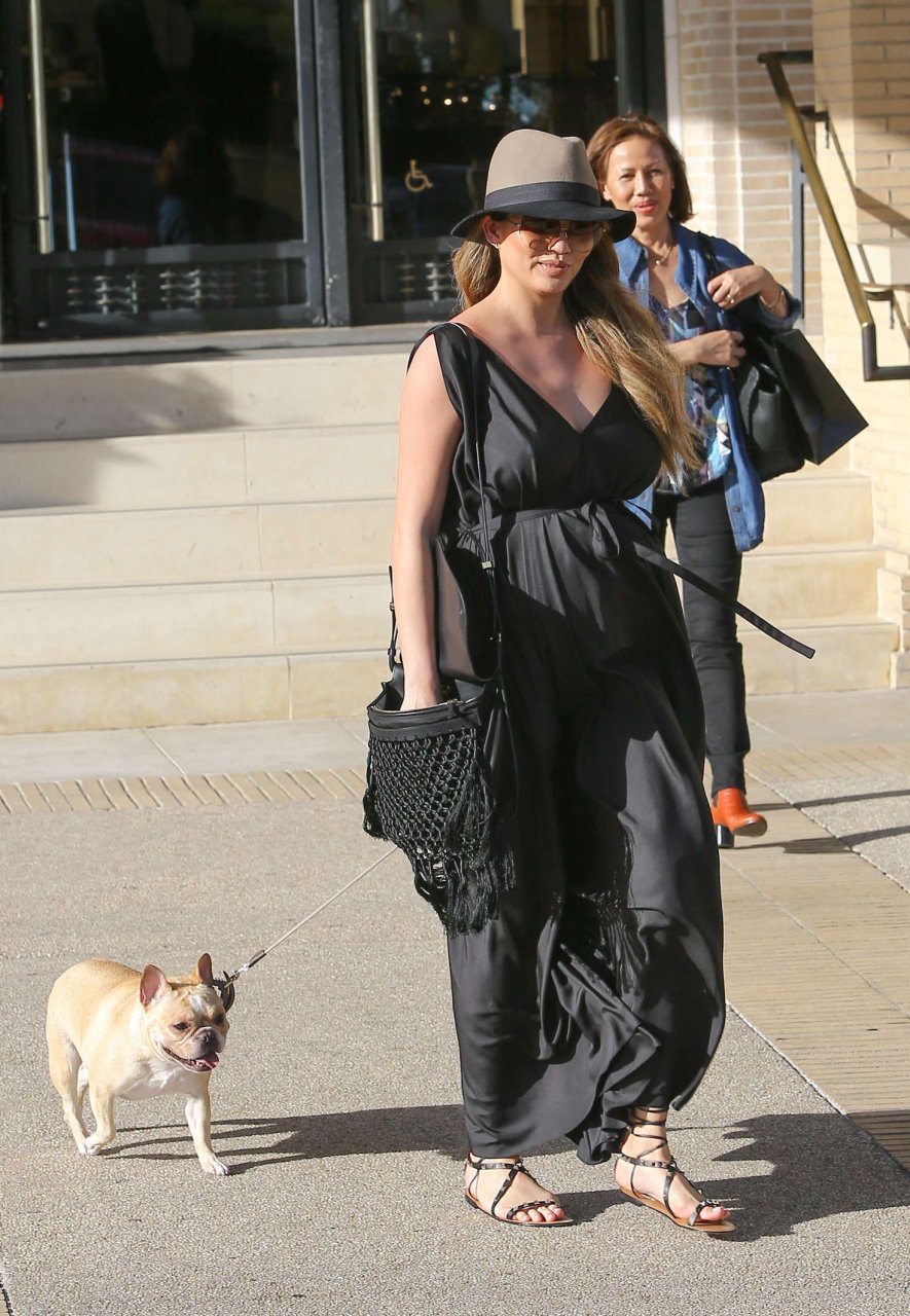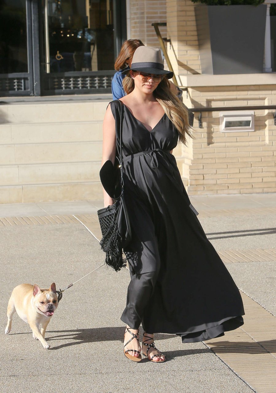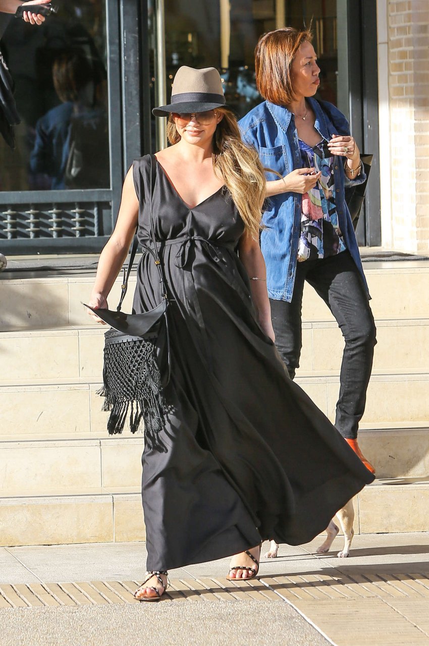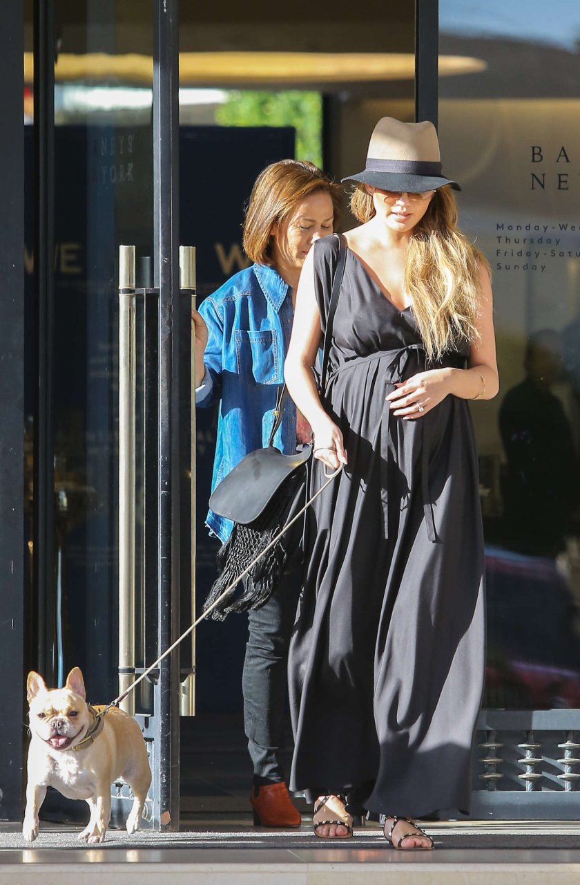 Chrissy Teigen en robe noire chez Barneys New York à Los Angeles, 14/03/2016. Poitrine super laiteuse ! Chrissy Teigen est un mannequin américain. Âge 30 ans (30 novembre 1985). Taille 174 cm.